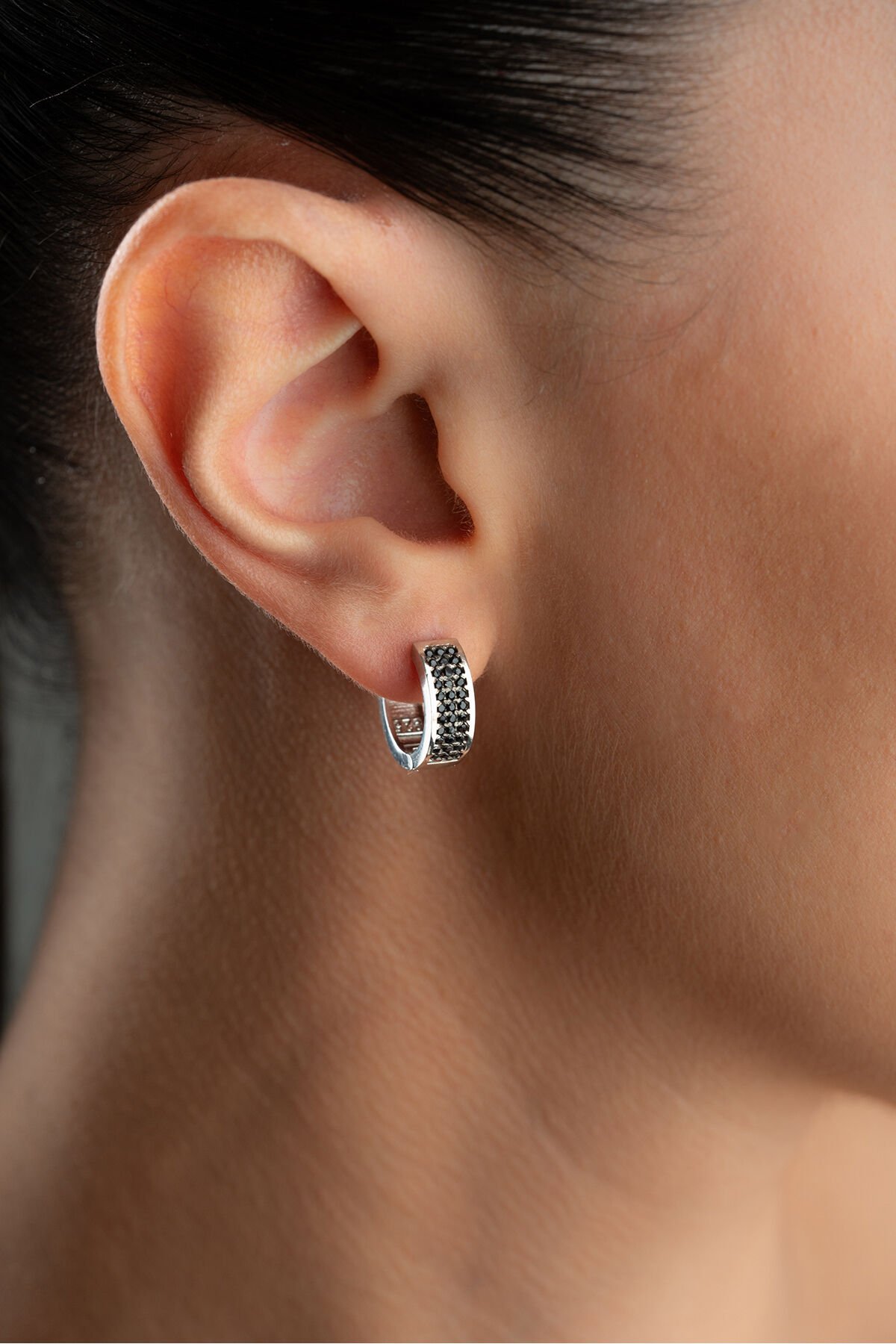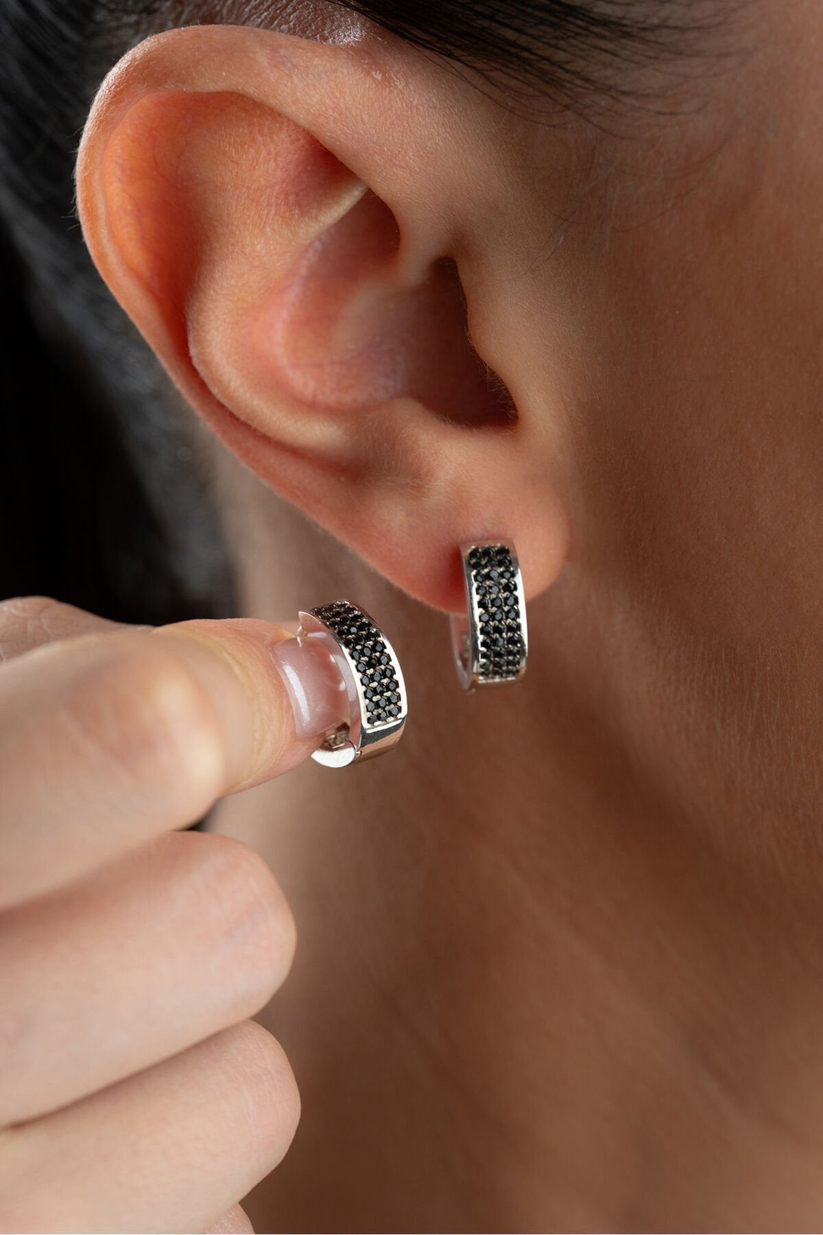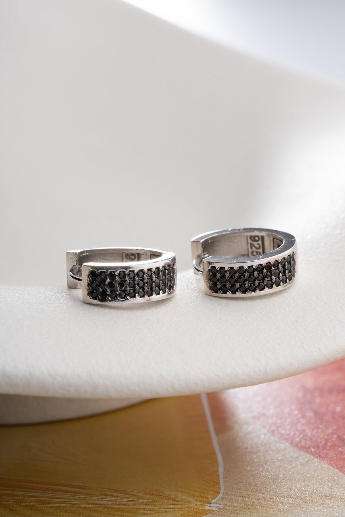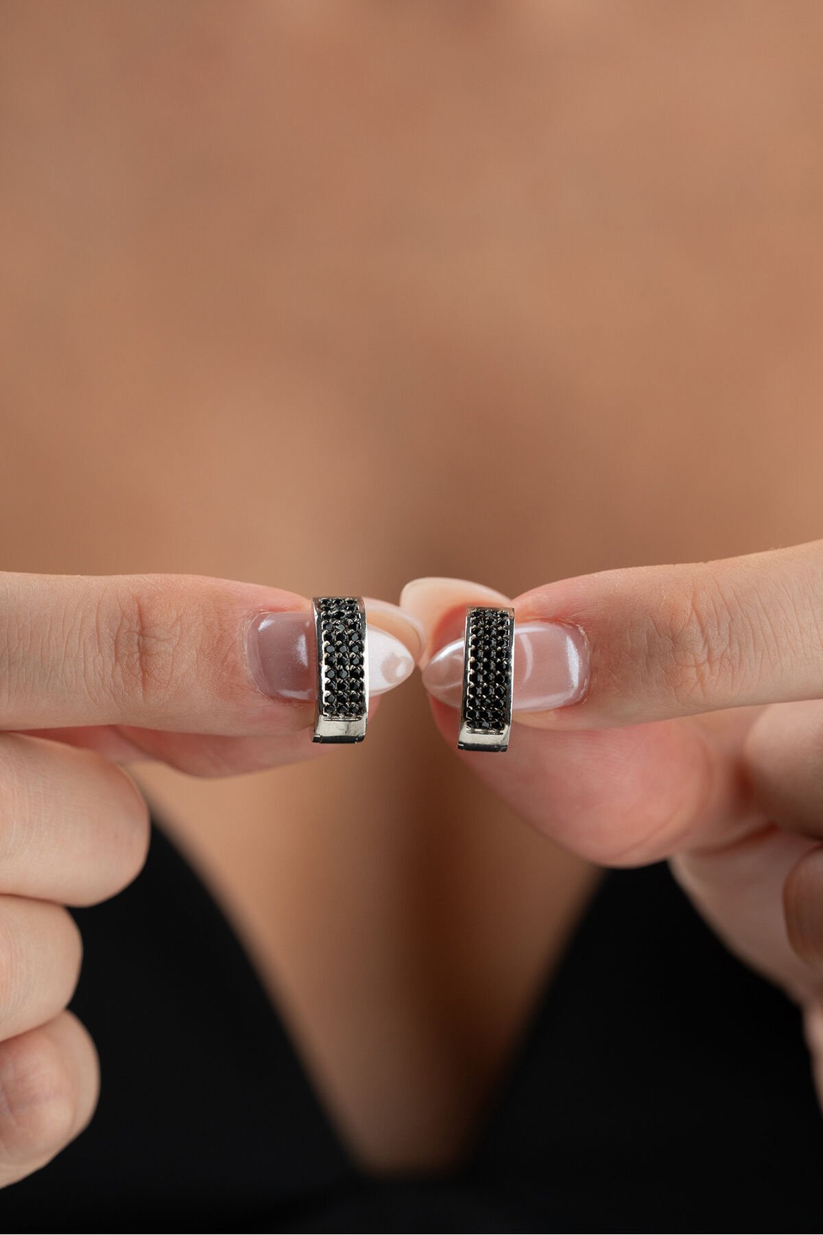 925 Ayar Gümüş Üç Sıra Siyah Taşlı Küpe