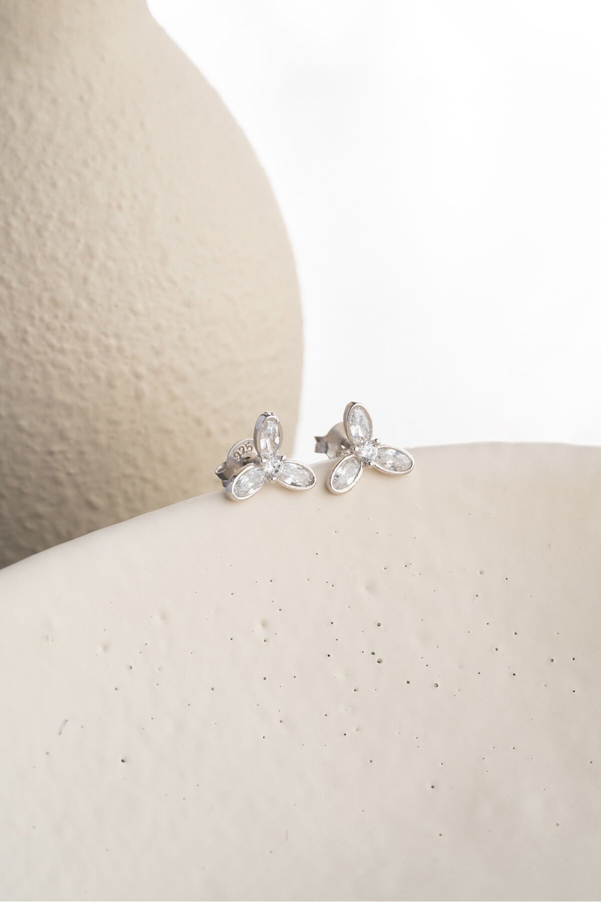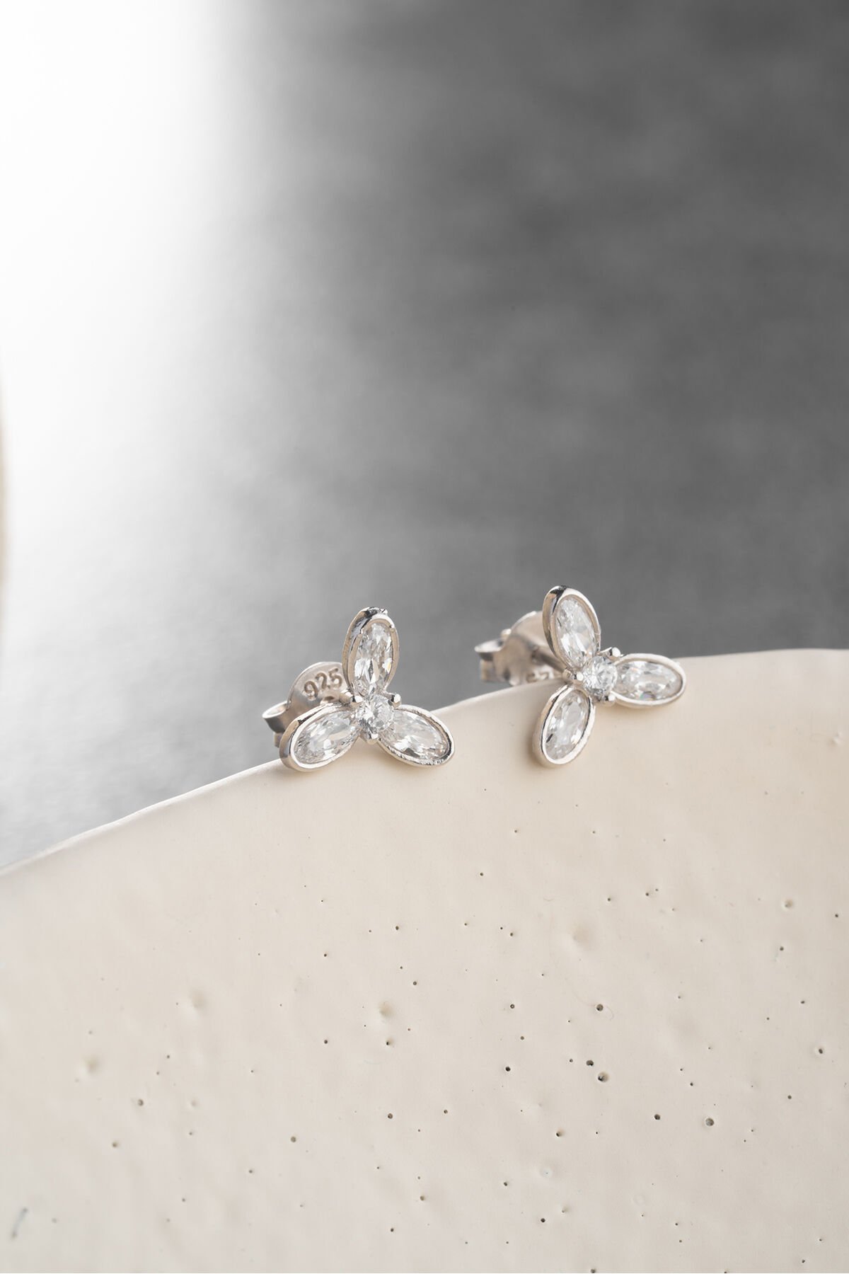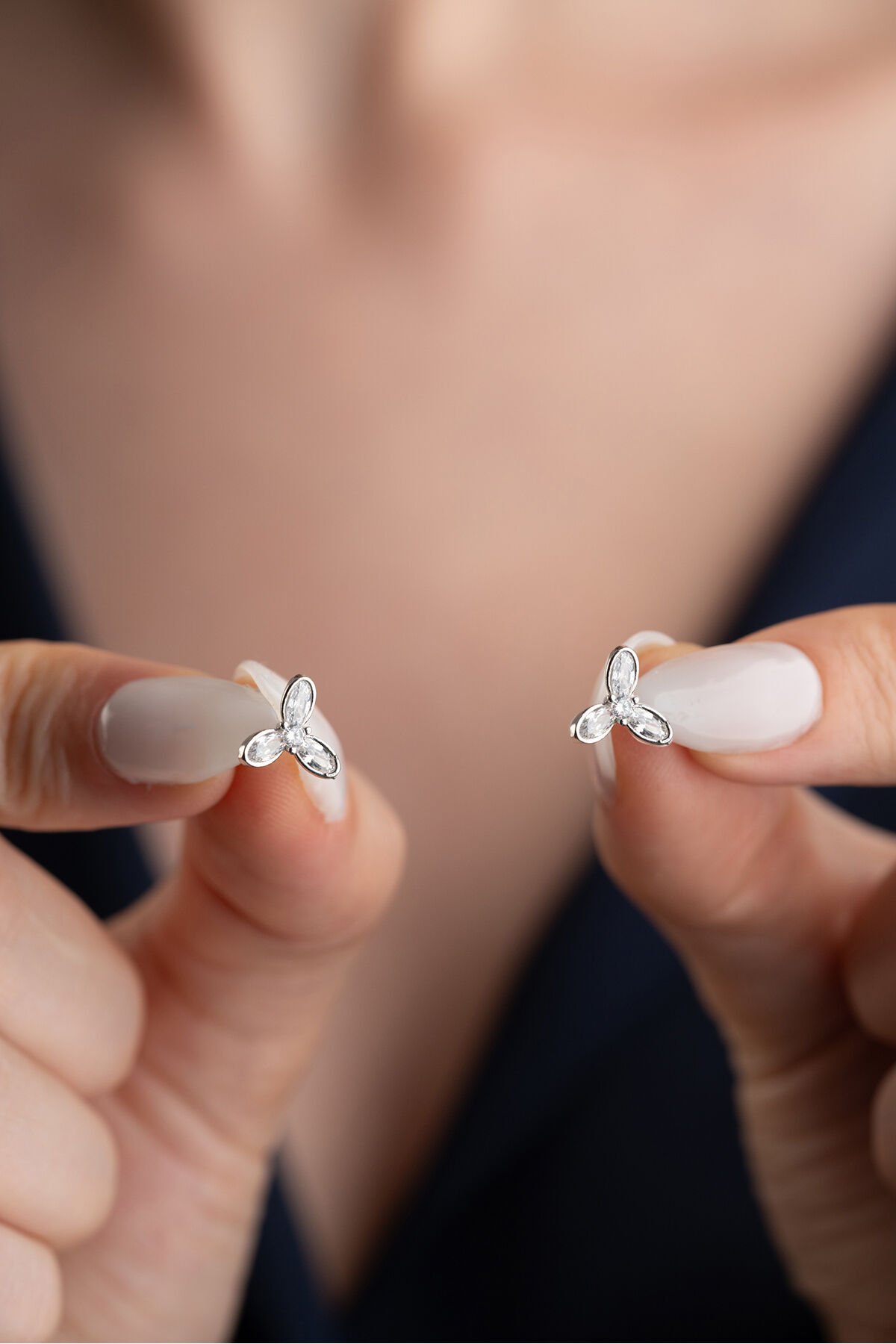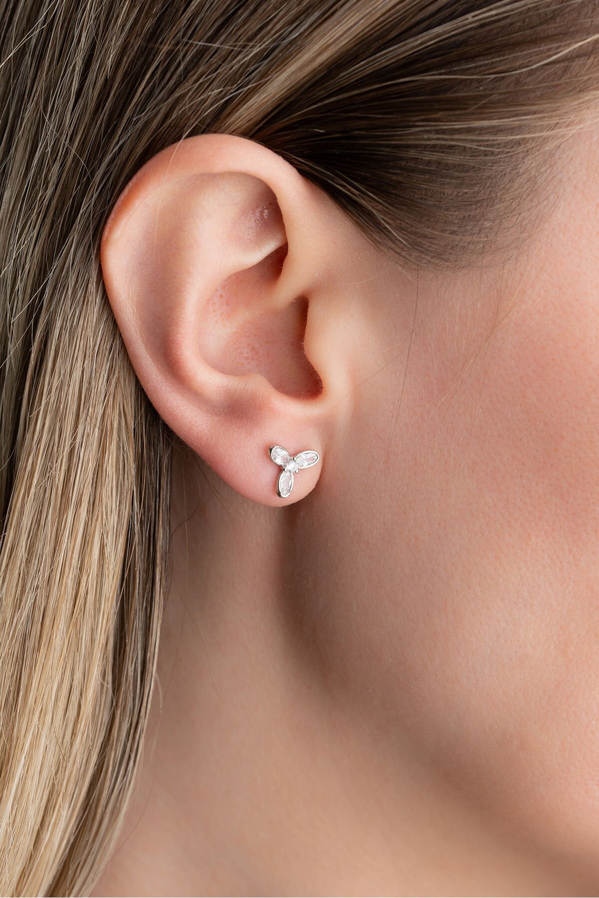 925 Ayar Gümüş Üç Taş Minimal Küpe