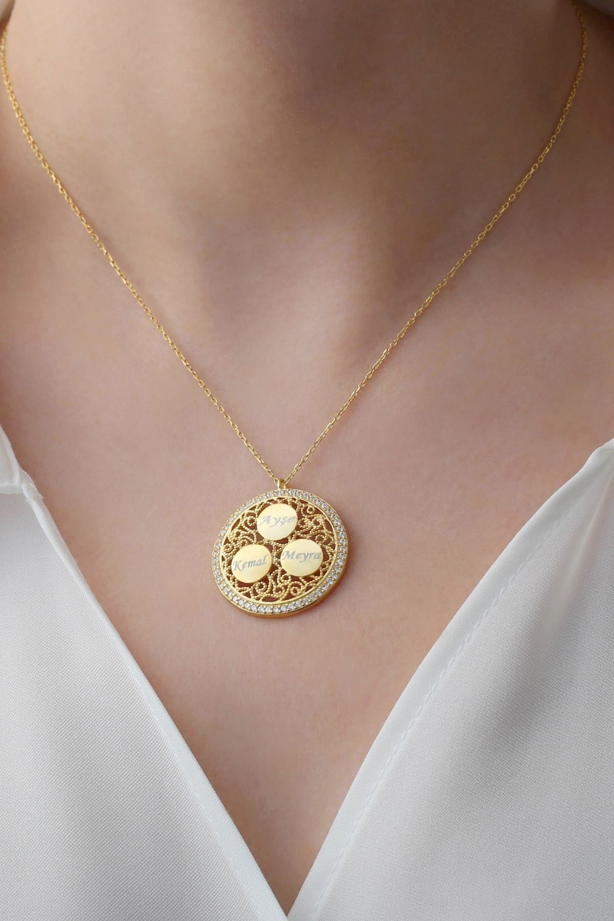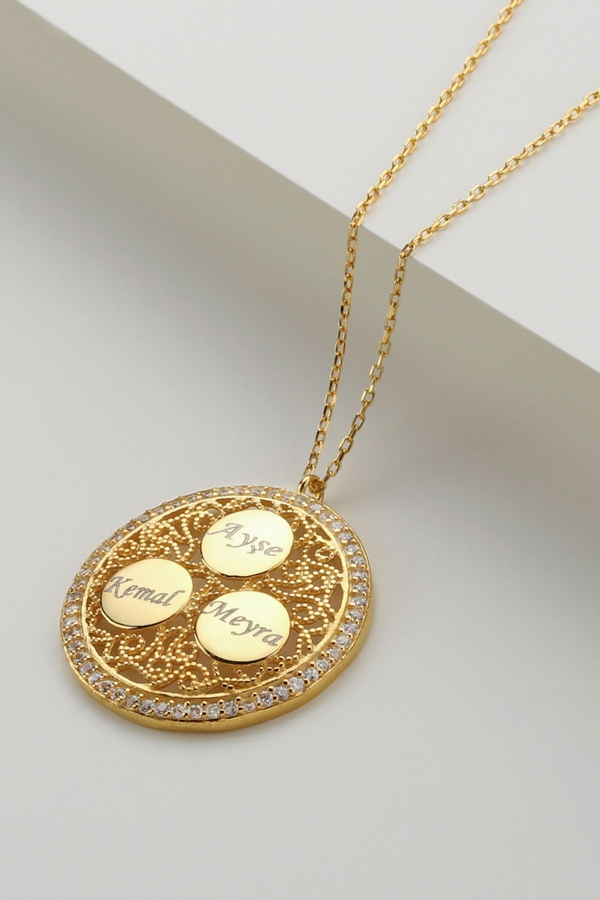 925 Ayar Gümüş Üçlü Isimli Taşlı Hakla Kolye