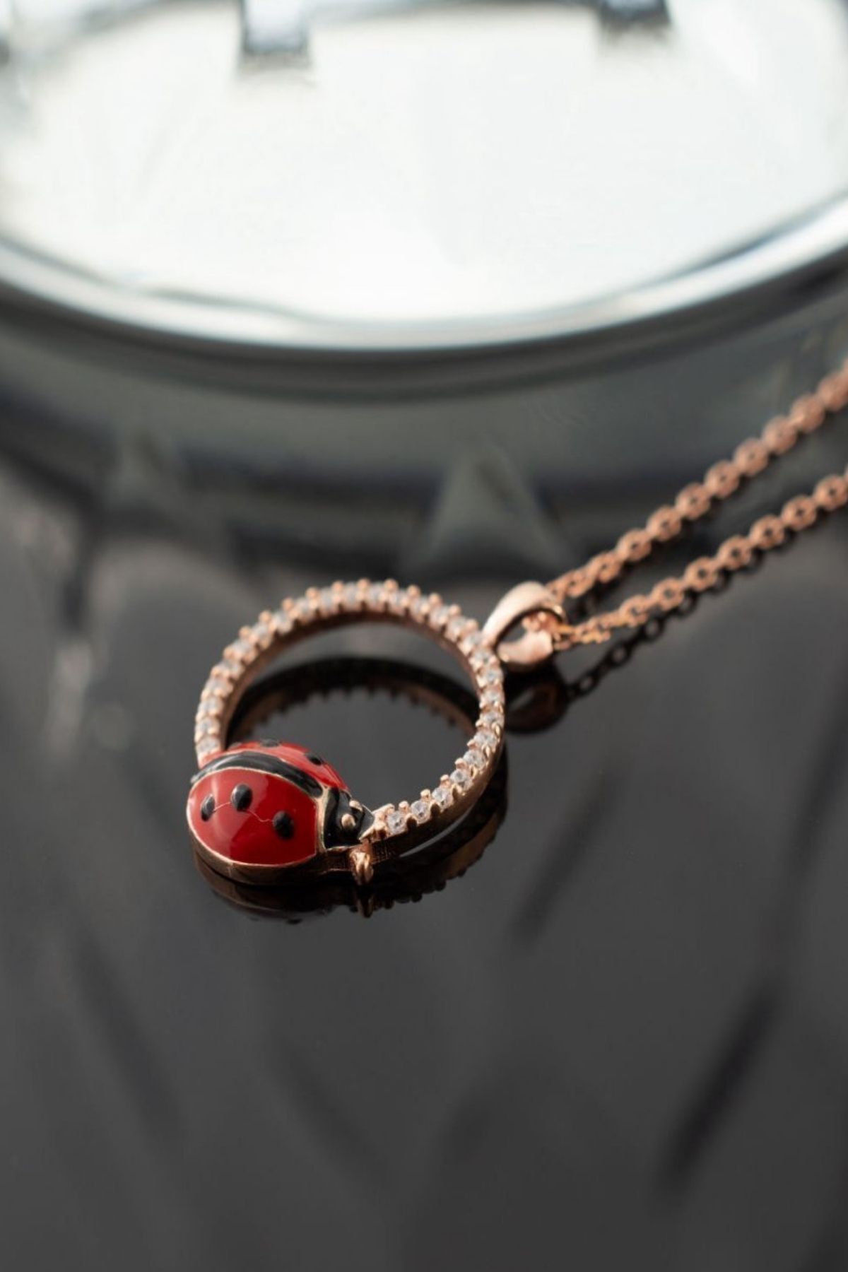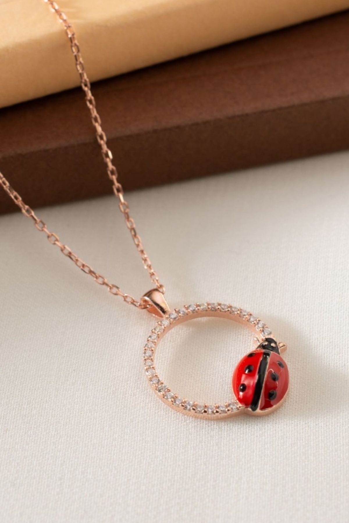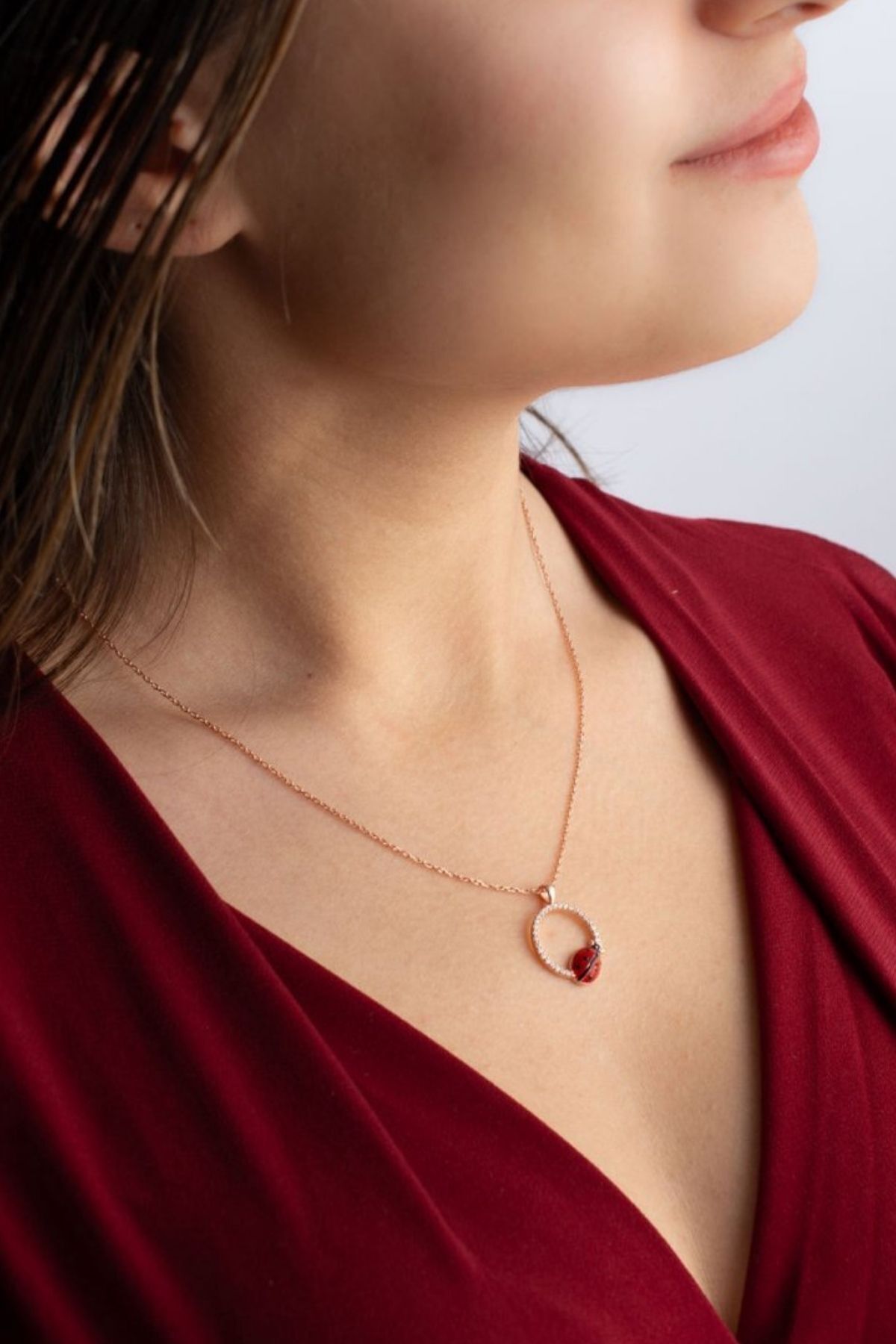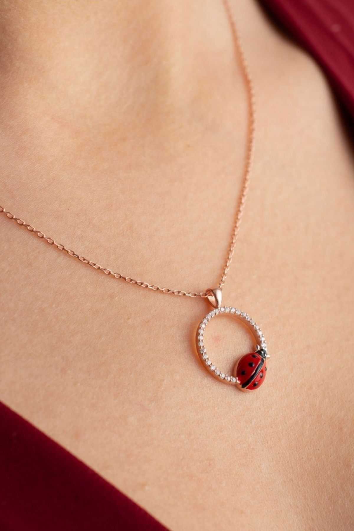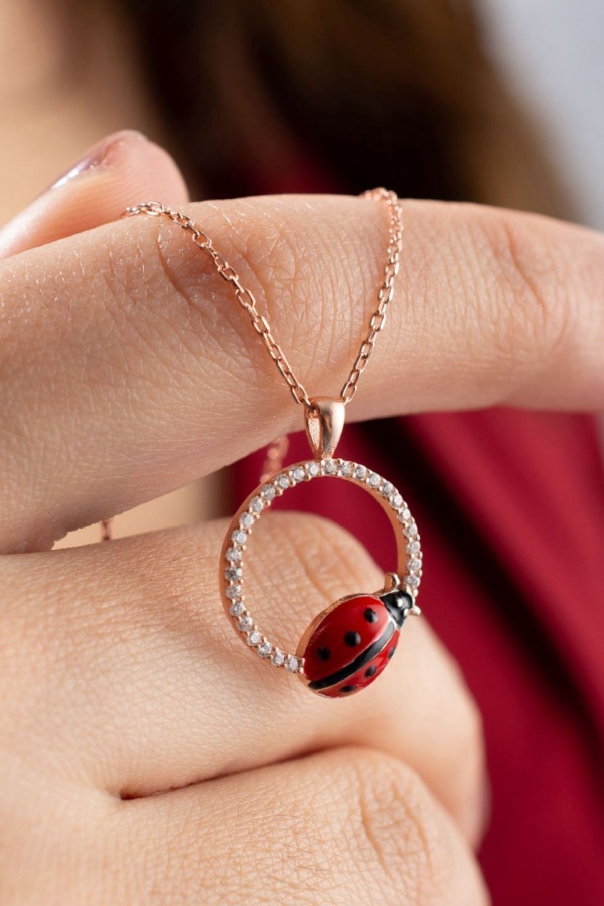 925 Ayar Gümüş Uğur Böcekli Halka Kolye