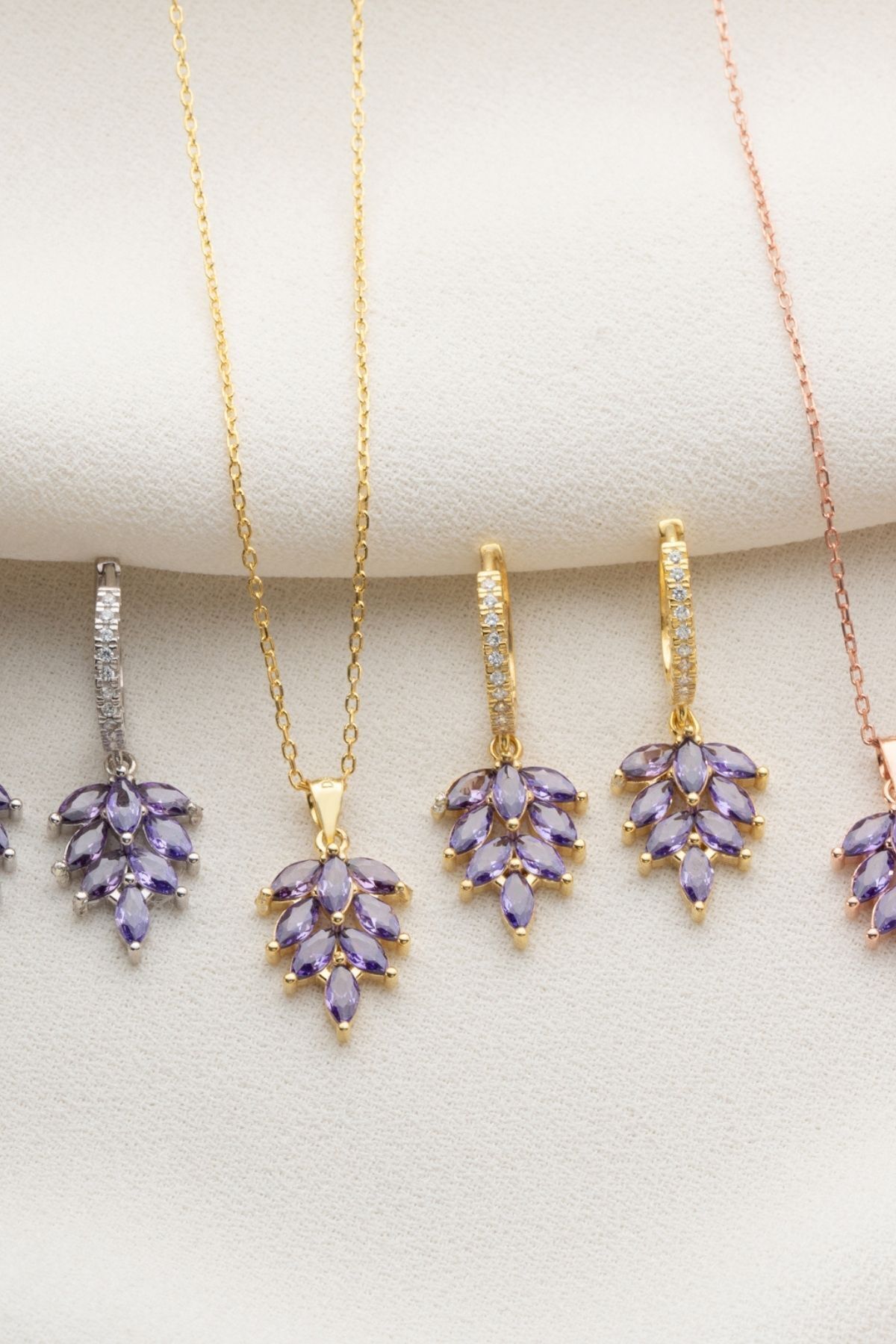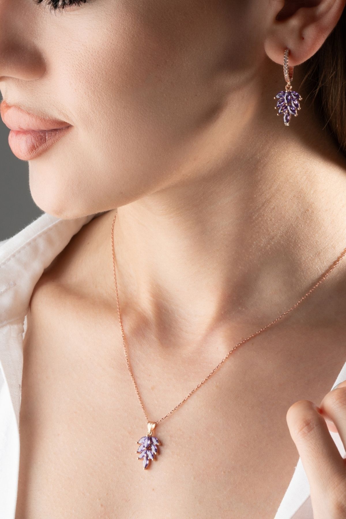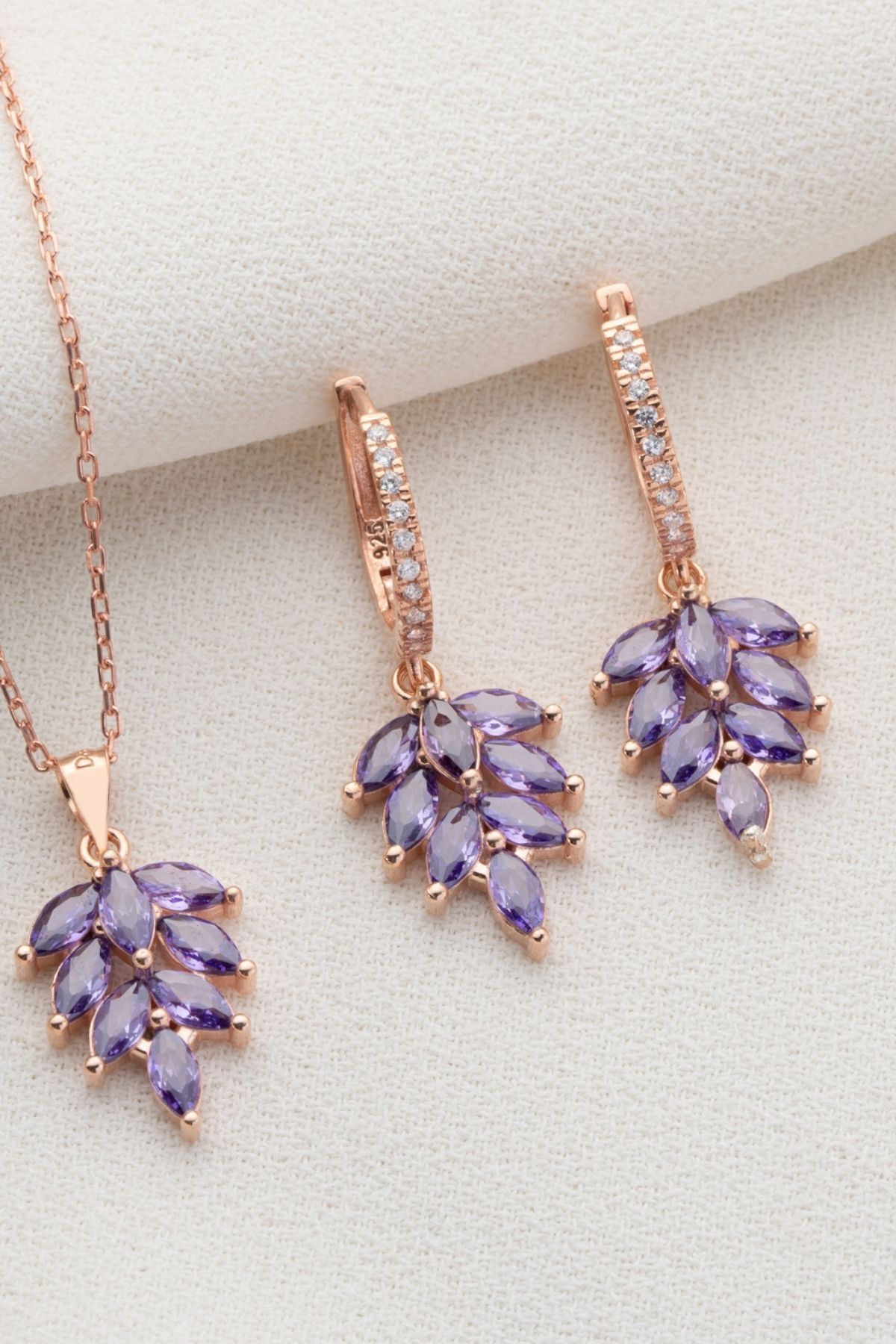 925 Ayar Gümüş Yaprak Model Küpe Kolye Takı Seti