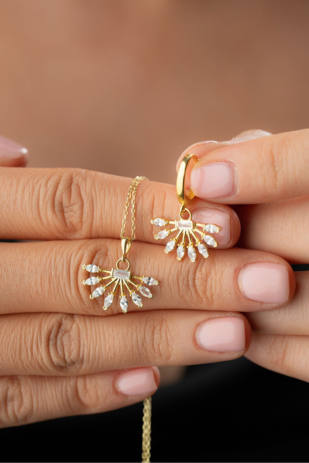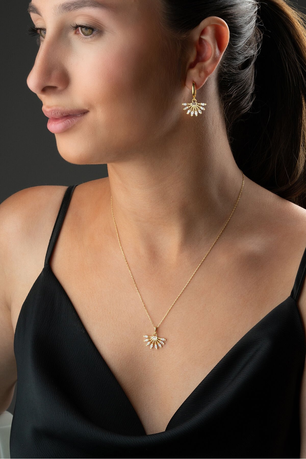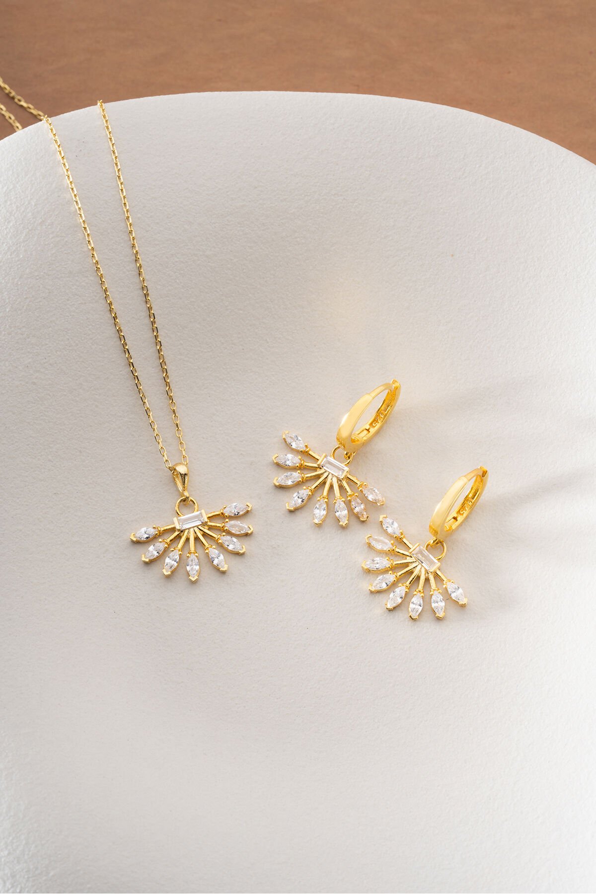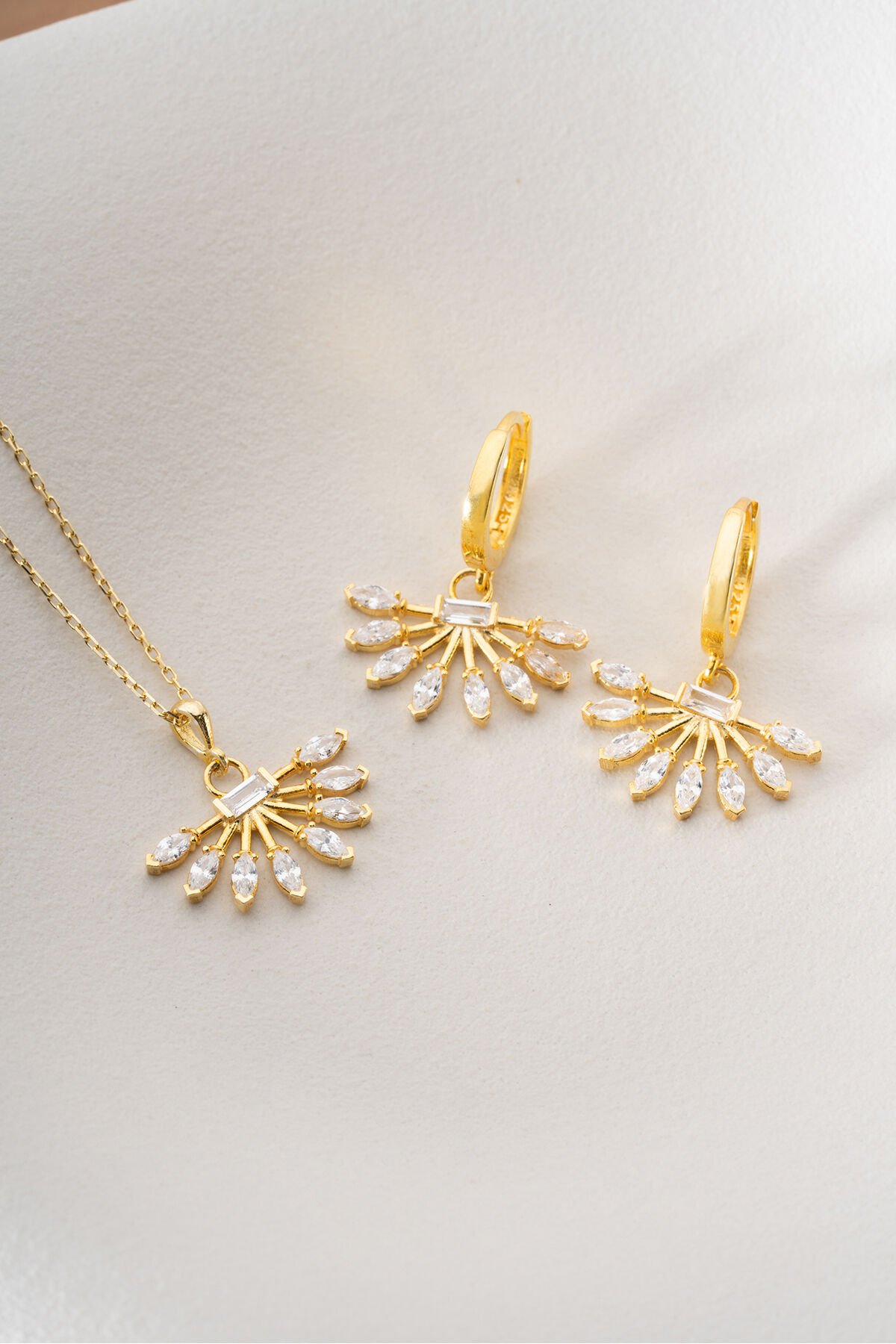 925 Ayar Gümüş Yelpaze Model Küpe Kolye Set