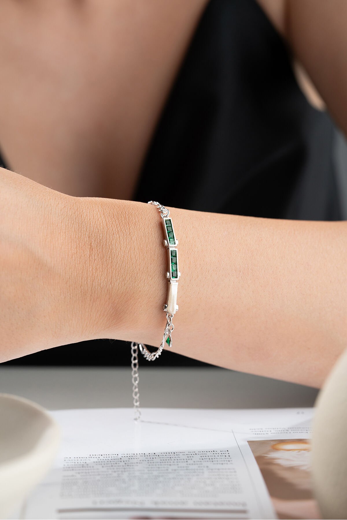 925 Ayar Gümüş Yeşil Baget Taşlı Bileklik
