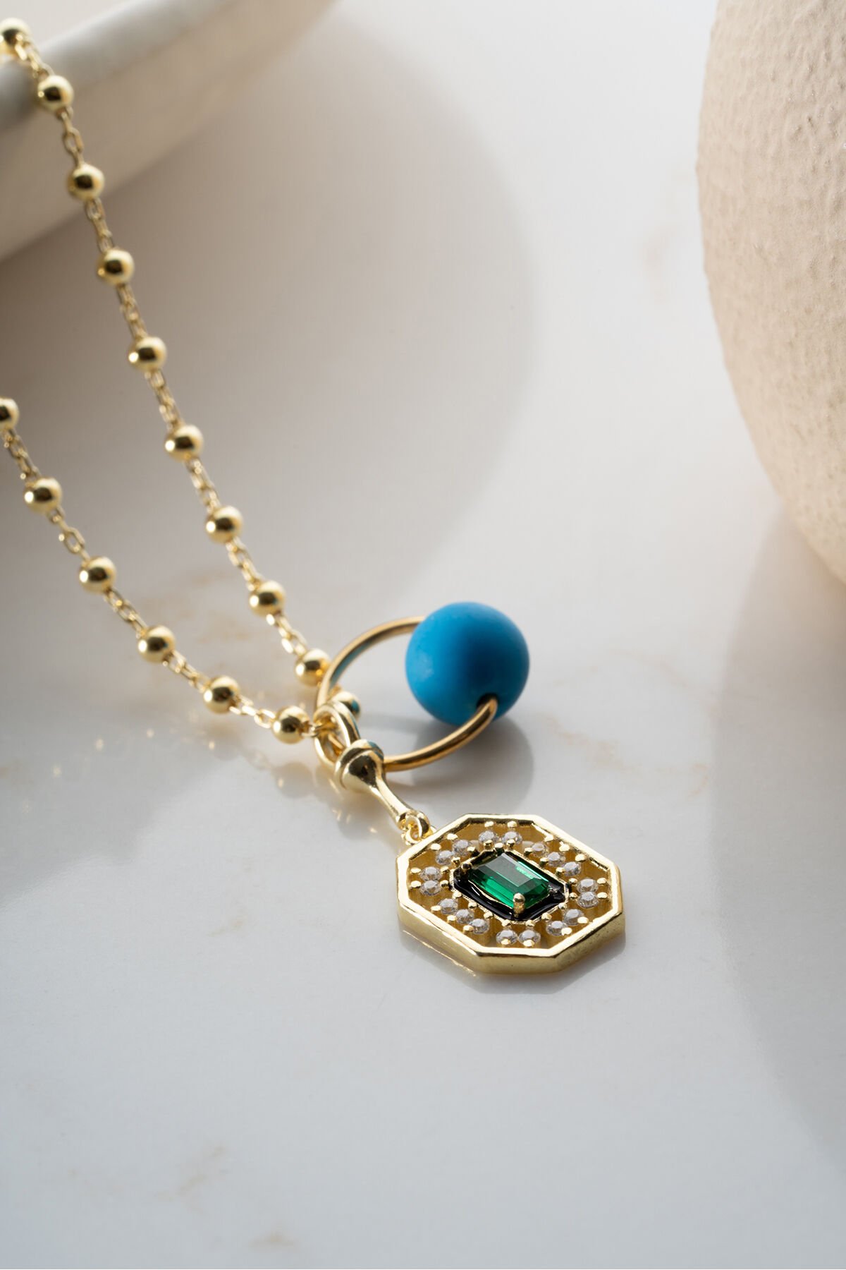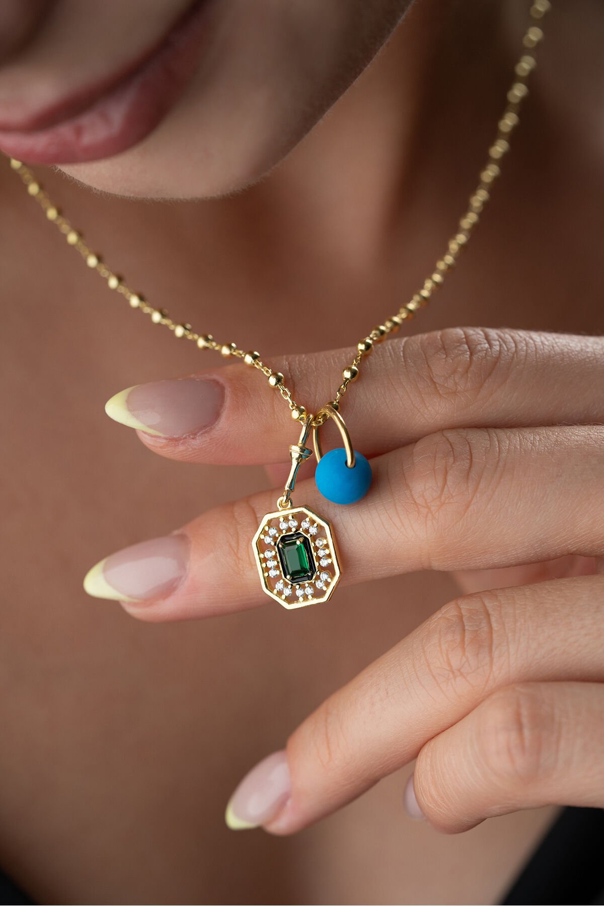 925 Ayar Gümüş Yeşil Baget Taşlı Şans Kolye