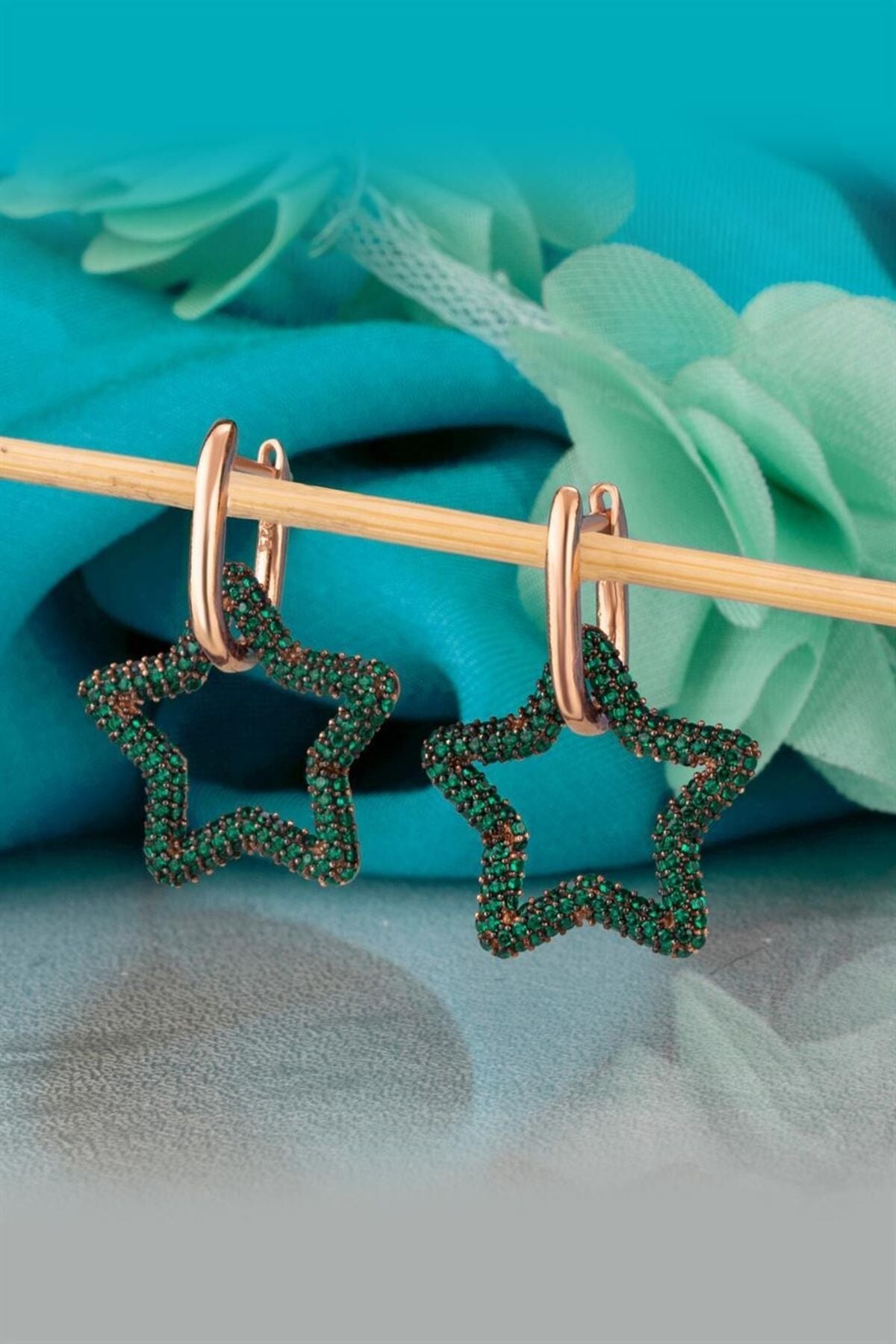 925 Ayar Gümüş Yeşil Taşlı Yıldız Küpe