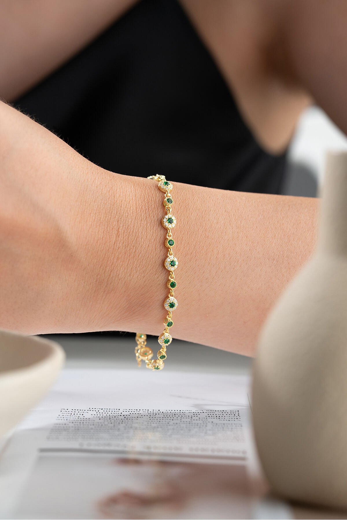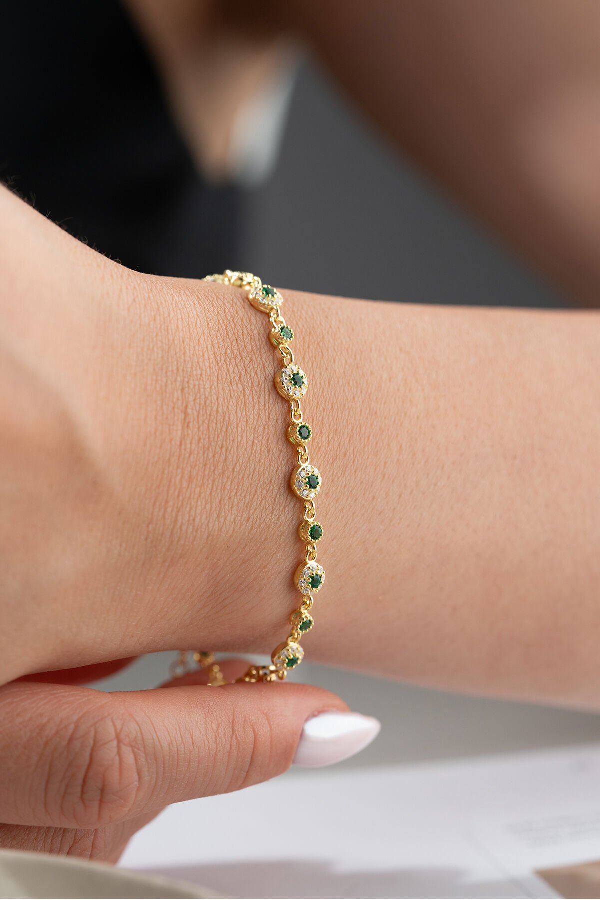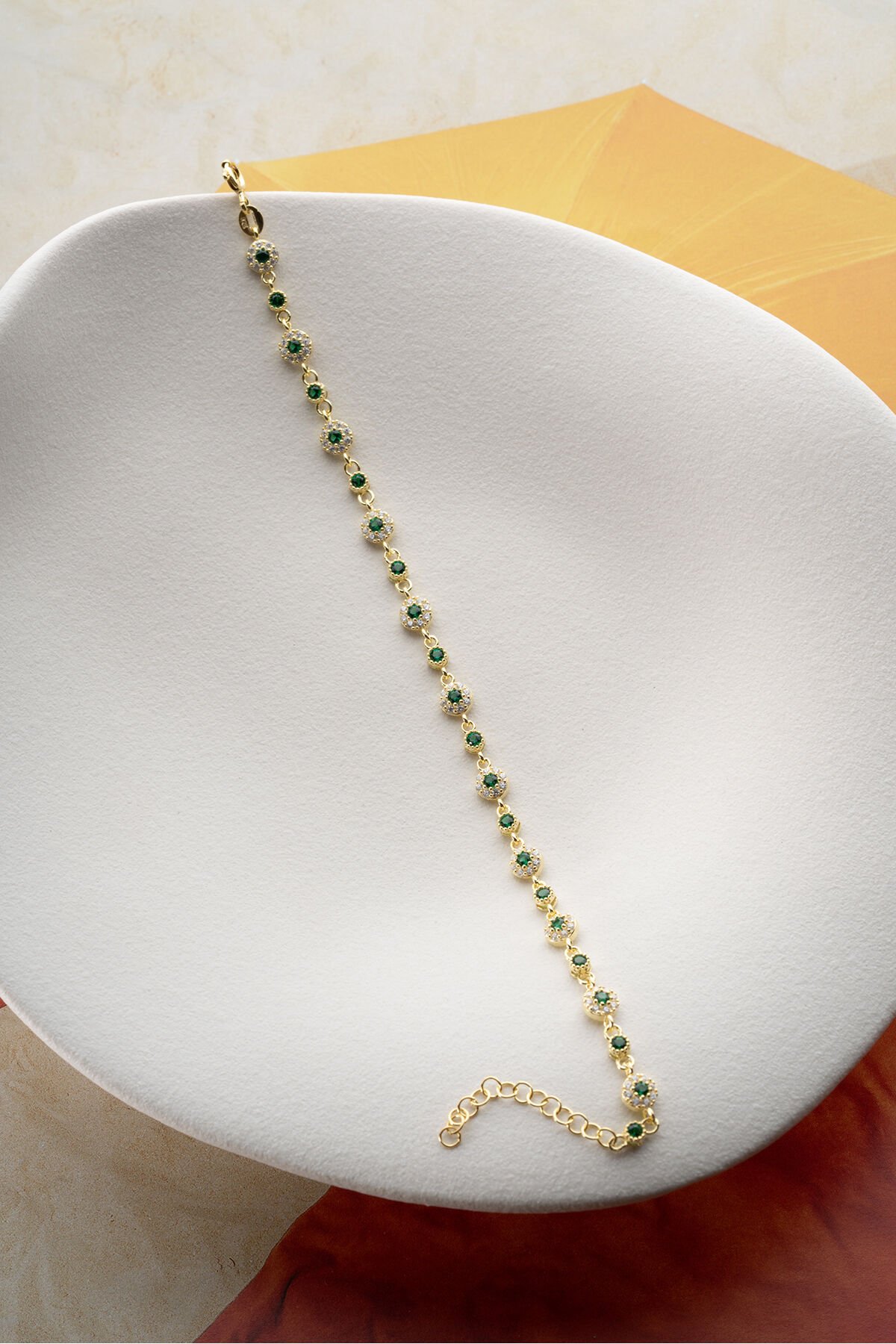 925 Ayar Gümüş Yeşil Zirkon Taşlı Su Yolu Bileklik