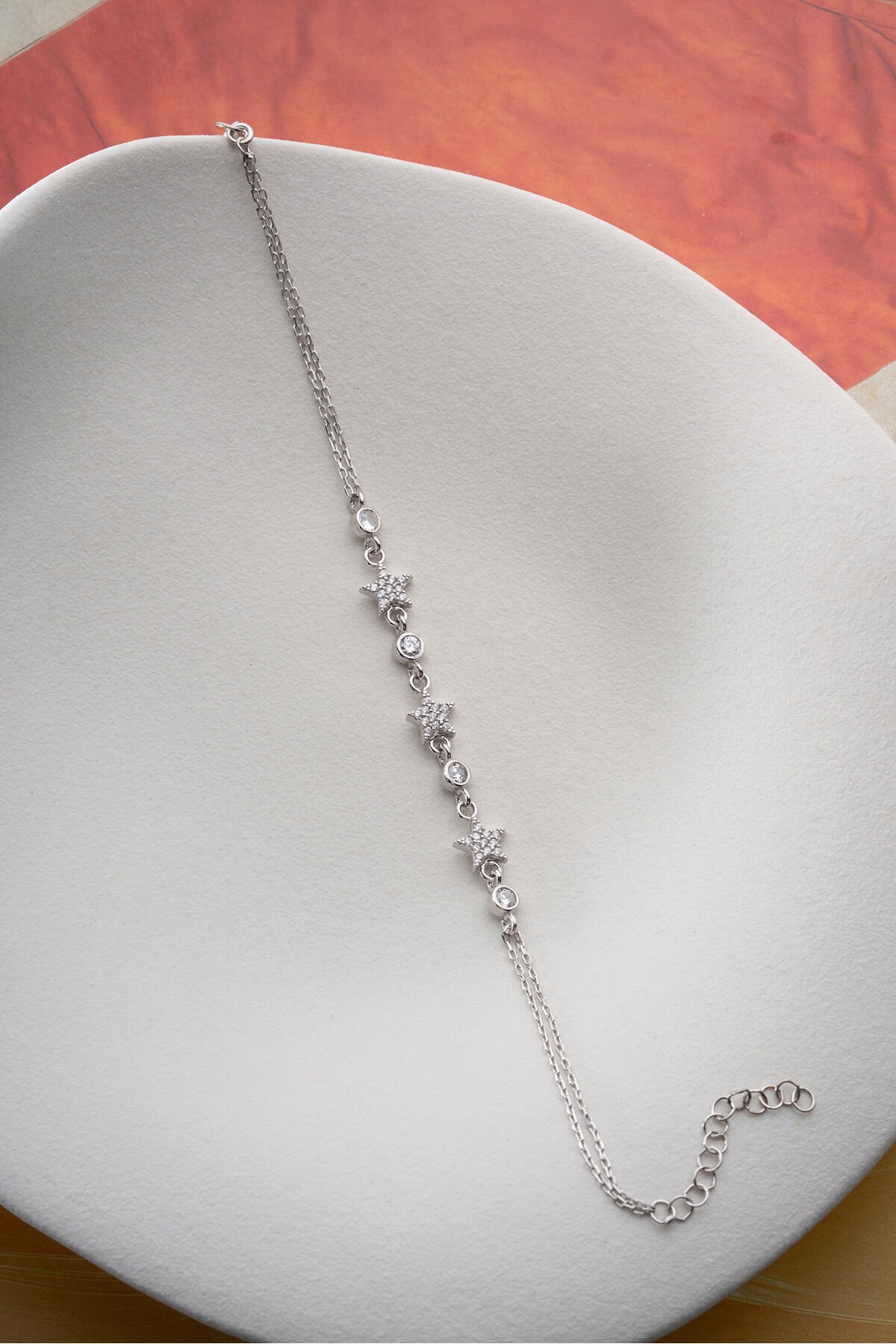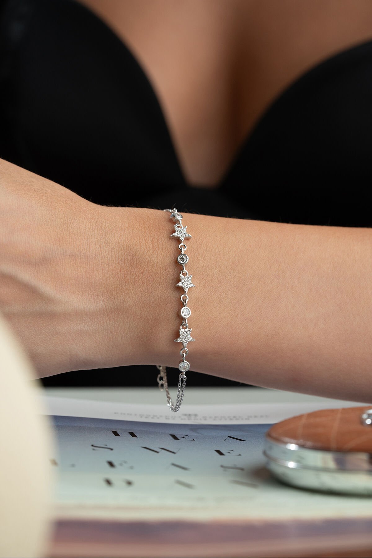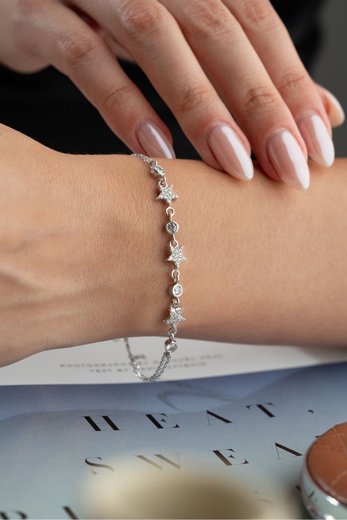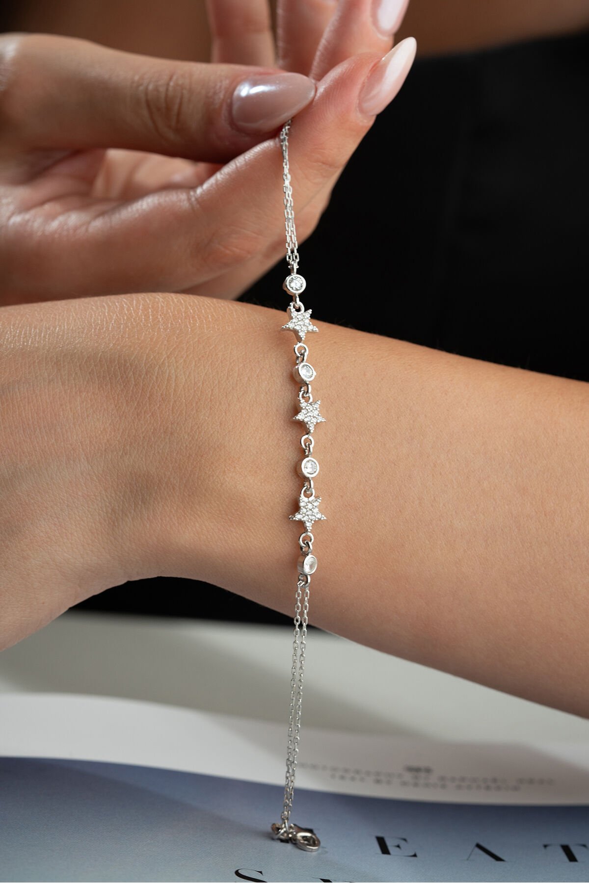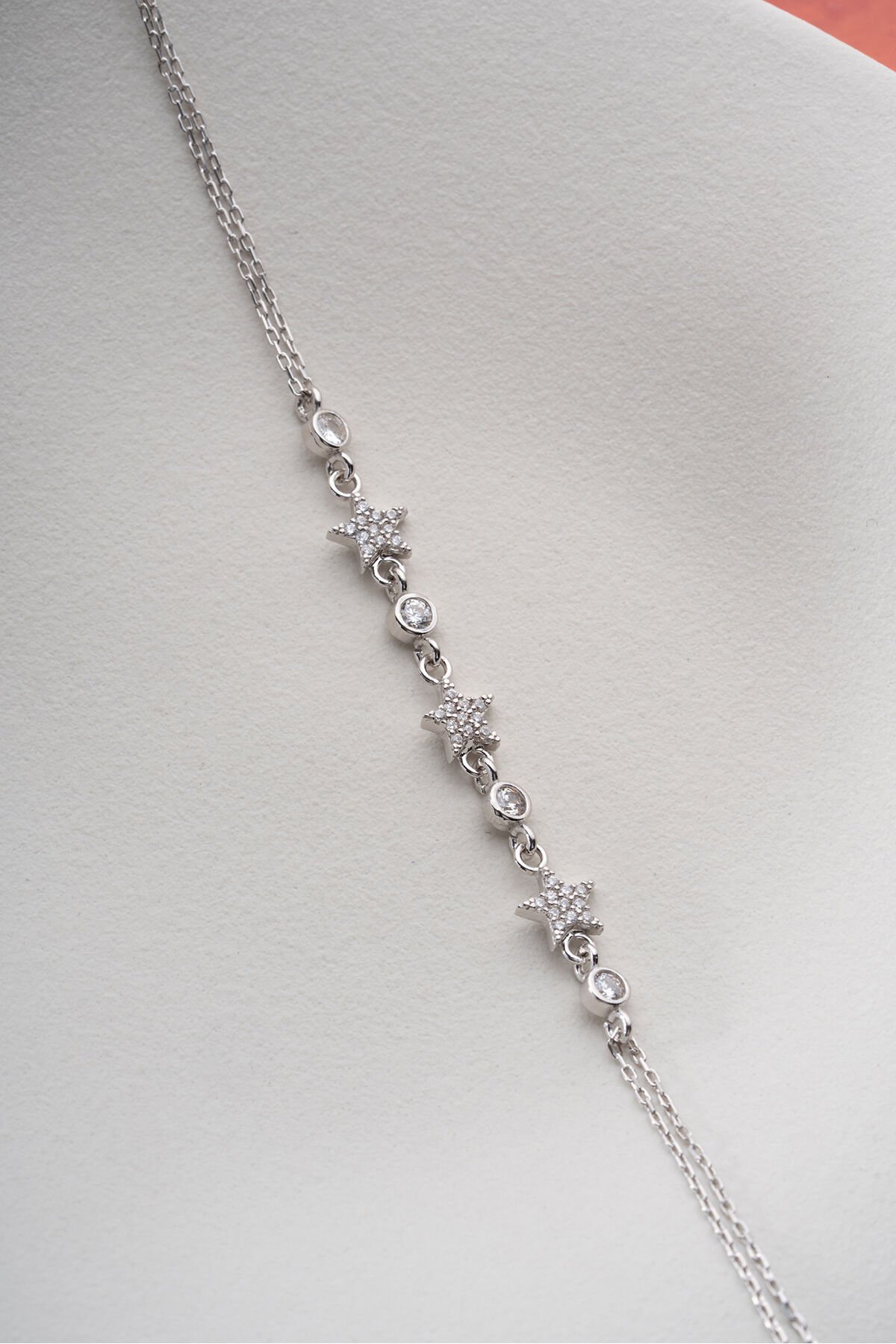 925 Ayar Gümüş bileklik ; Zarif ve ince tasarımı ile her kombine uyum sağlayan bu kolye, günlük kullanım için idealdir.; - Malzeme: 925 ayar gümüş - Boy: 42 cm (idealdir ve rahat bir kullanım sunar) - Özellikler: Hafif ve zarif yapısı ile boynunuza doğal bir ışıltı katar.; 925 Ayar Gümüş Bilekliğimiz Sade ama şık tasarımı ile bileğinize ince bir dokunuş katın.; Günlük ve özel günlerde rahatça kullanabilirsiniz.; - Malzeme: 925 ayar gümüş - Boy: Ayarlanabilir (17 cm - 20 cm arası) - Özellikler: Dayanıklı yapısı ile uzun ömürlü kullanım sağlar, hafif ve rahattır.; Tabii, işte kısa ve anlaşılır bir şekilde 925 ayar gümüş takıların saklama ve kullanma koşulları: 925 Ayar Gümüş Takıların Saklama Koşulları: - Kuru ve serin yerde saklayın: Gümüş takılar nemden uzak tutulmalıdır.; Nem, gümüşün kararmasına neden olabilir.; - Kapalı kutuda muhafaza edin: Takılarınızı hava almayan mücevher kutusunda veya kumaş keselerde saklayarak oksitlenmeyi önleyebilirsiniz.; - Diğer takılarla temas ettirmeyin: Çizilmeleri önlemek için gümüş takılarınızı diğer takılardan ayrı tutun.; 925 Ayar Gümüş Takıların Kullanma Koşulları: - Su ve kimyasallardan uzak tutun: Gümüş takılarınızı parfüm, krem, saç spreyi gibi kimyasallarla temas ettirmeyin ve suya maruz bırakmayın.; - Düzenli temizleyin: Yumuşak bir bezle düzenli olarak temizleyerek parlaklığını koruyun.; - Uyurken ve spor yaparken çıkartın: Takılarınızı zarar görmemesi için uyurken, spor yaparken veya yoğun fiziksel aktivitelerde çıkarın.; Bu basit kurallar, gümüş takılarınızın uzun ömürlü ve parlak kalmasını sağlayacaktır.;