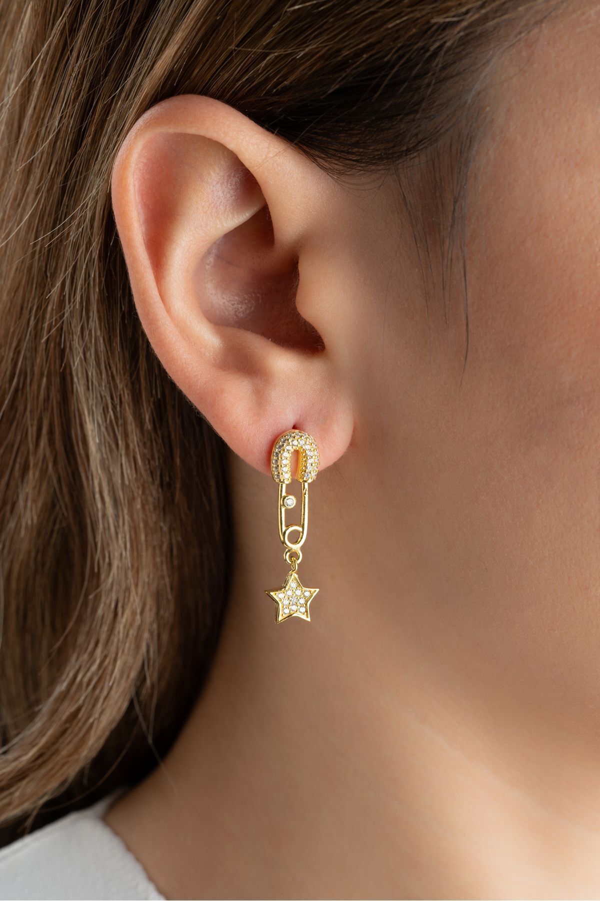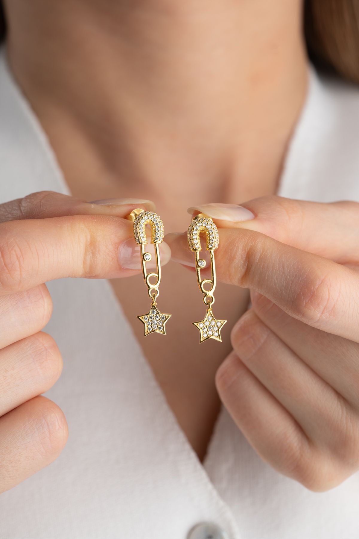 925 Ayar Gümüş Yıldızlı Çengelli Iğne Küpe