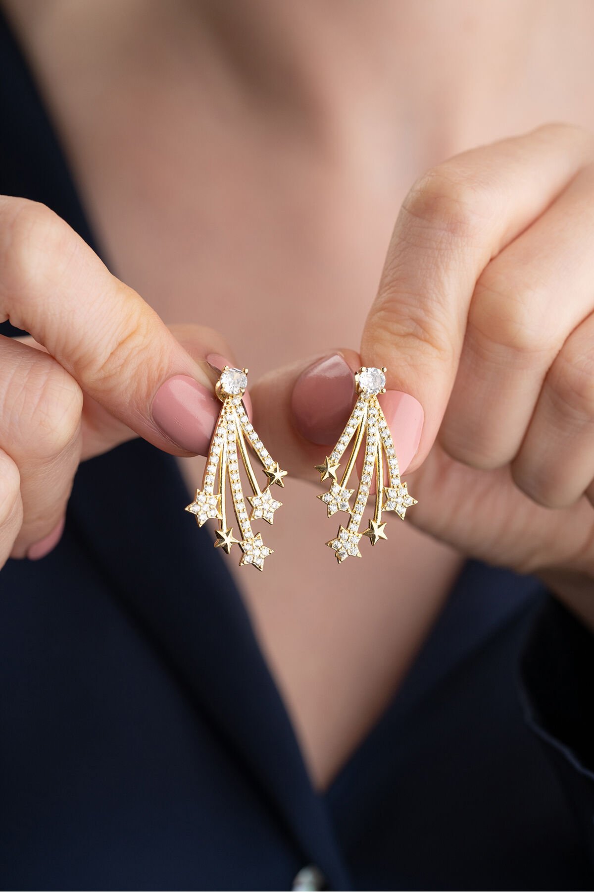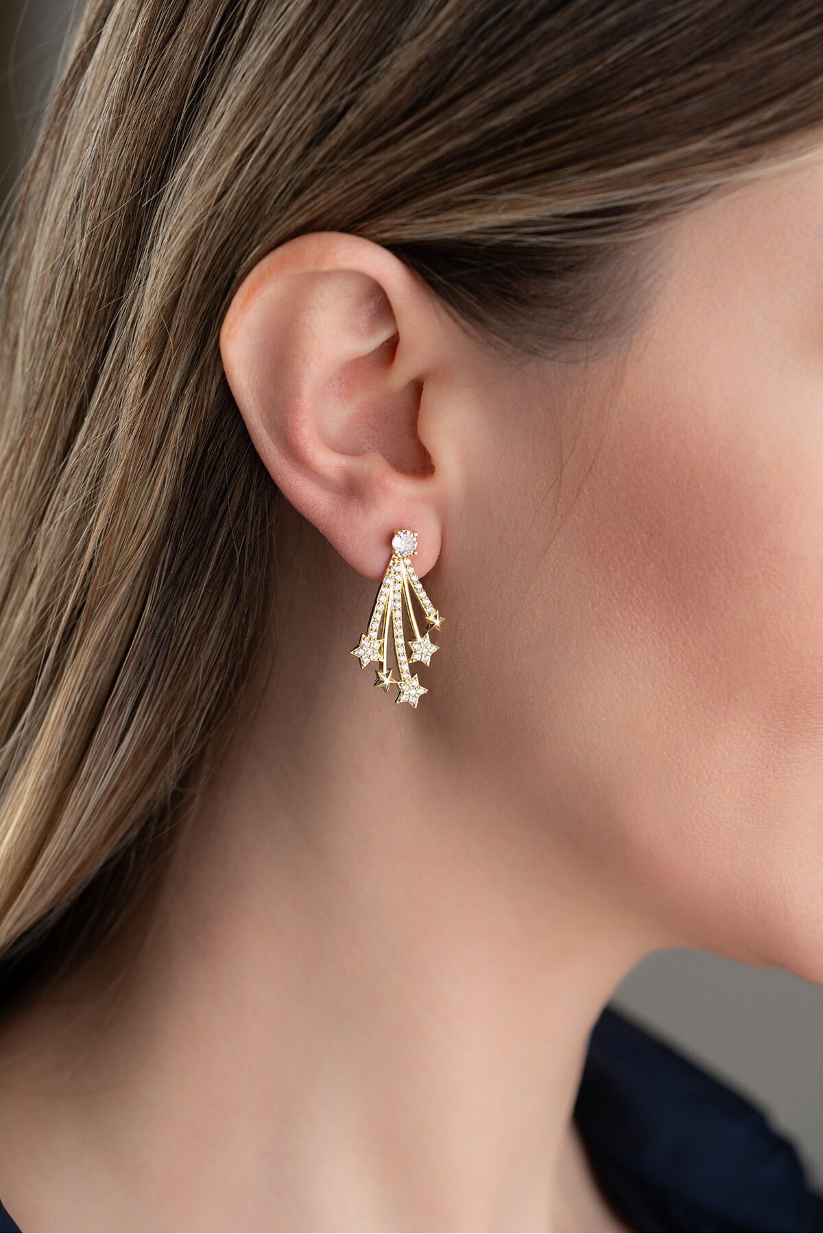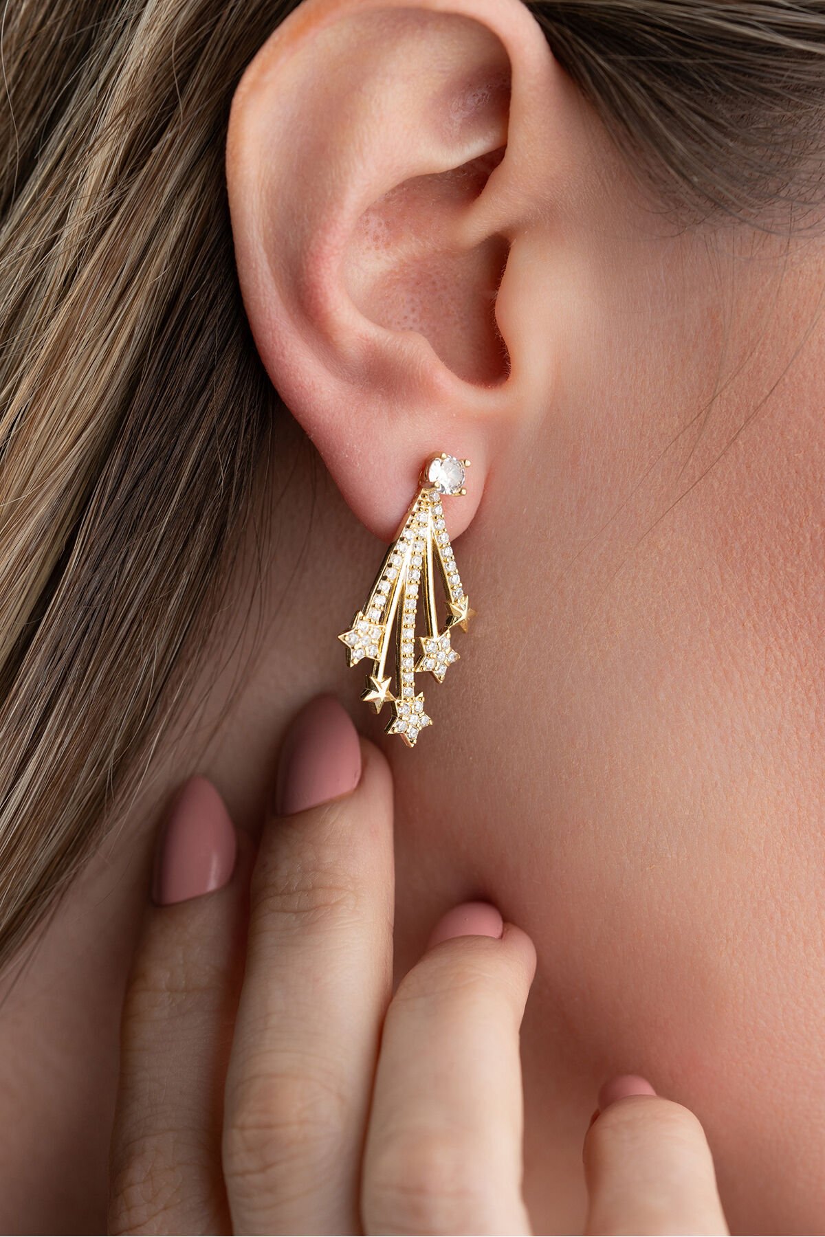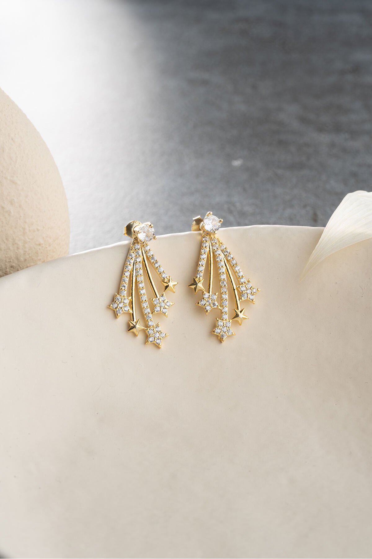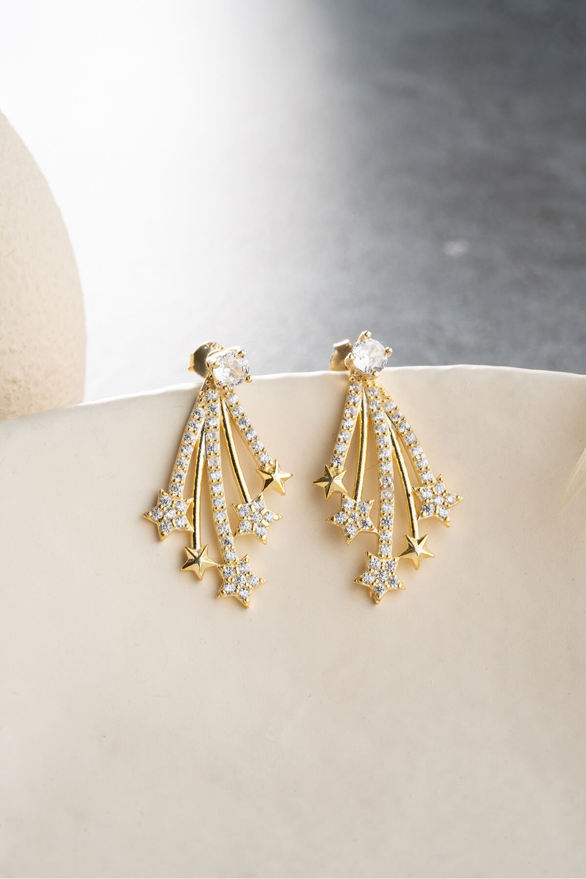 925 Ayar Gümüş Yıldızlı Gold Küpe