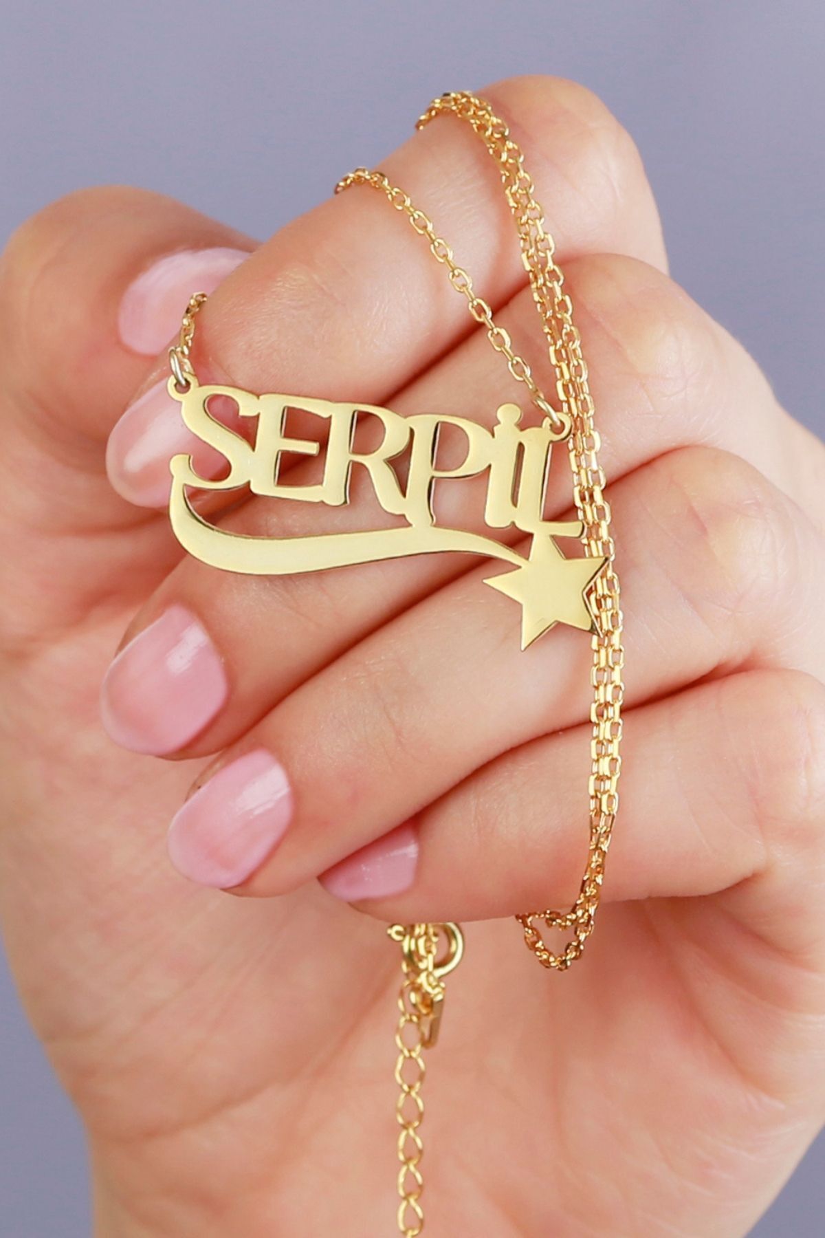 925 Ayar Gümüş Yıldızlı Isimli Kolye