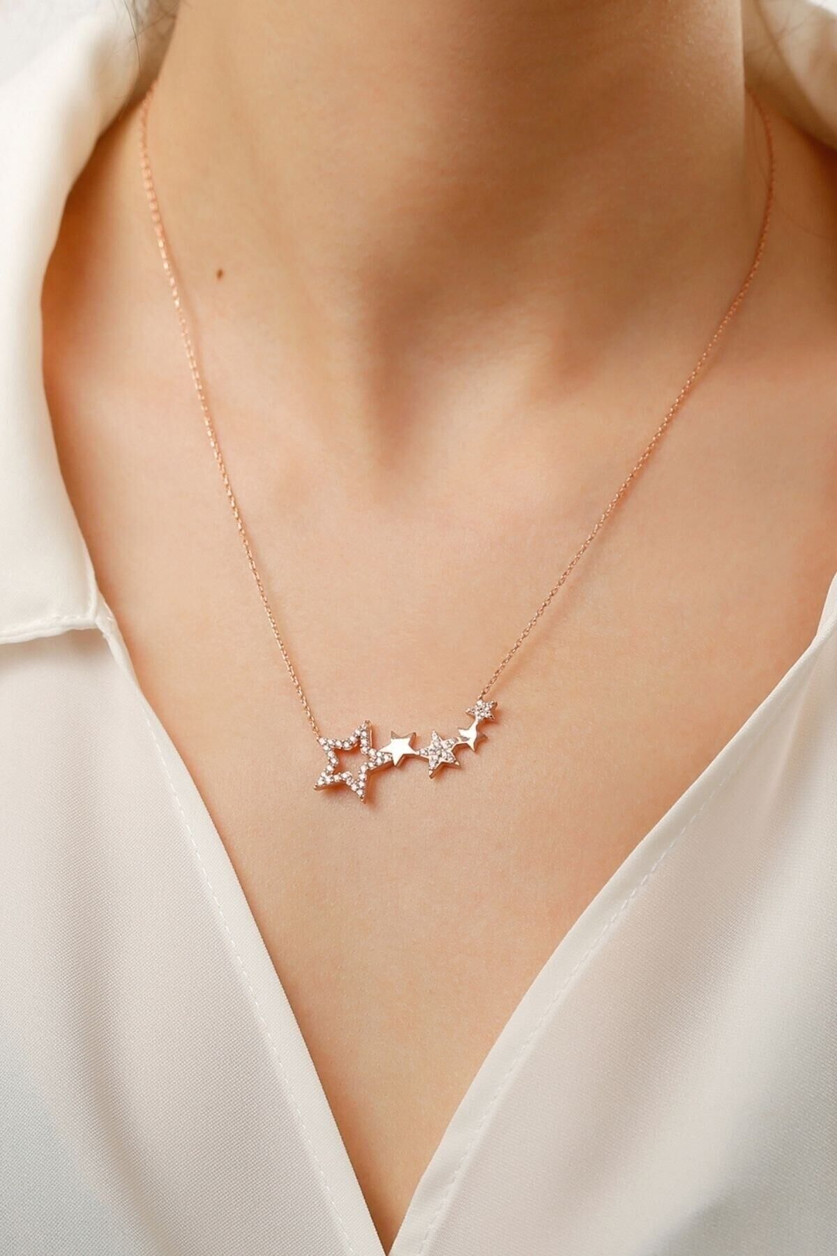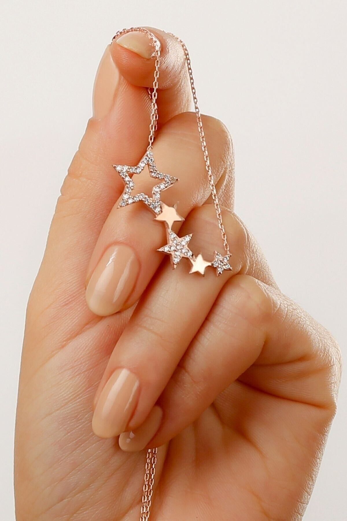 925 Ayar Gümüş Yıldızlı Kolye ( Rose Gold )