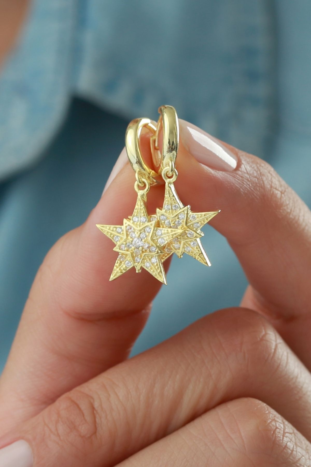 925 Ayar Gümüş Yıldızlı Küpe
