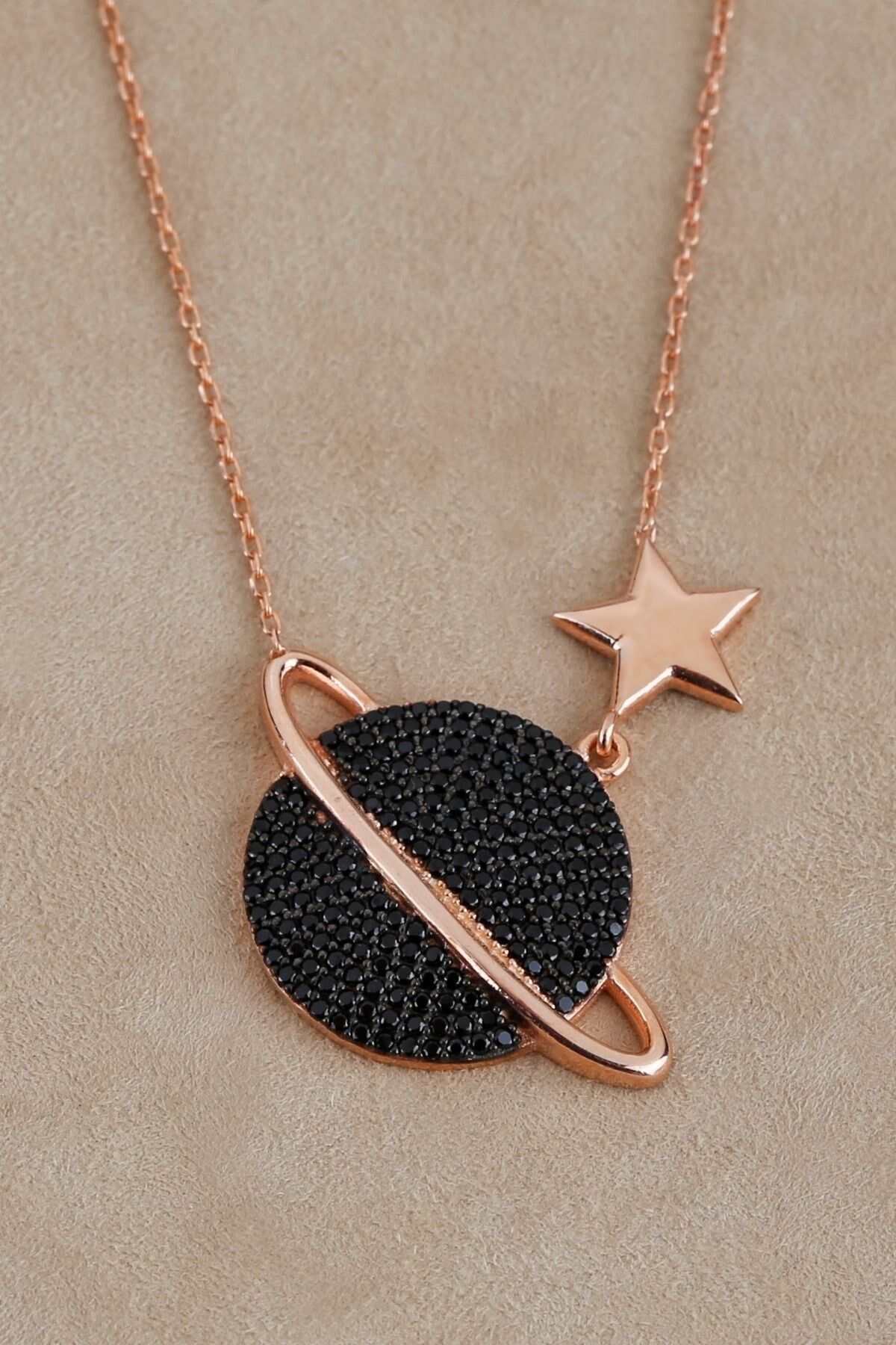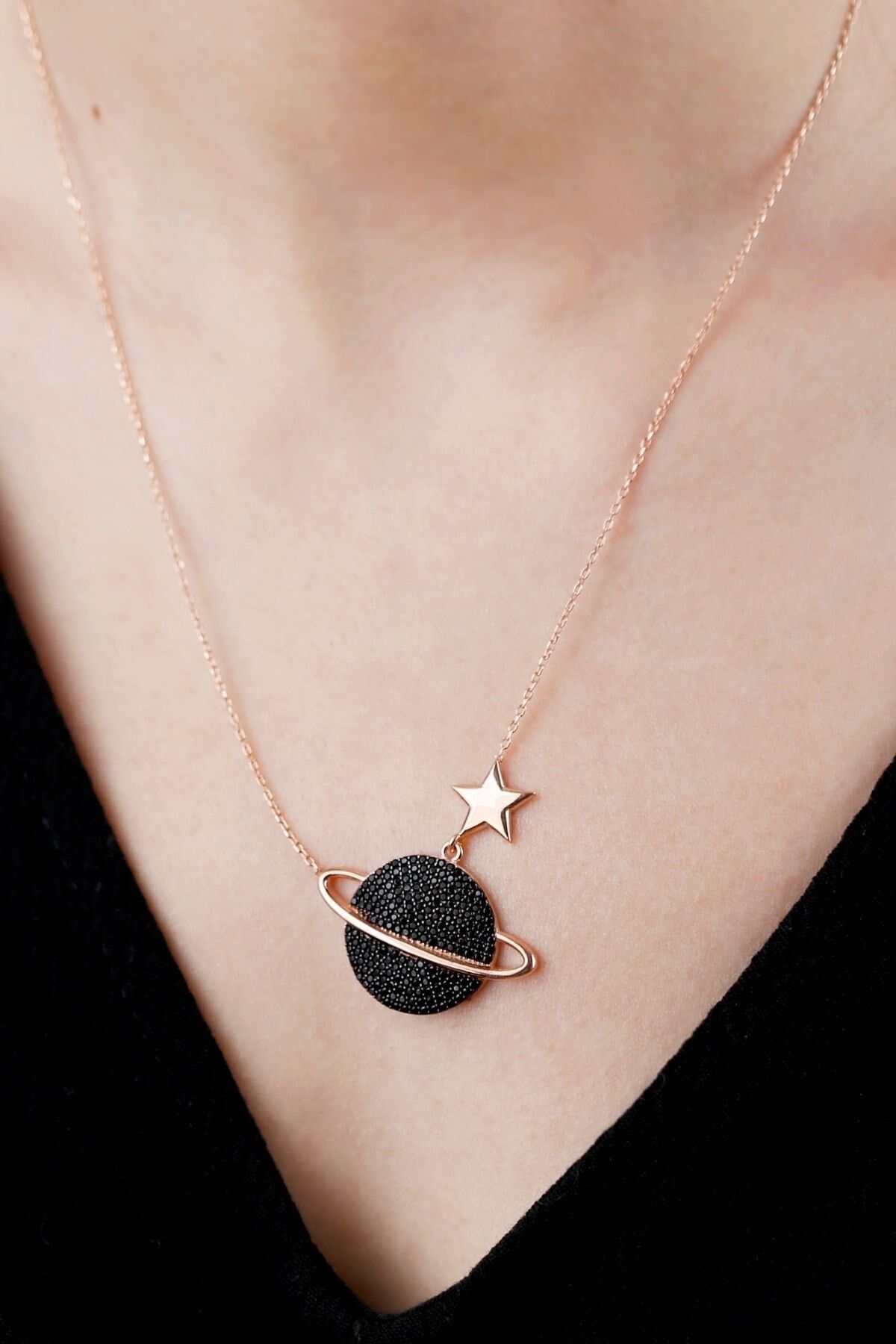 925 Ayar Gümüş Yıldızlı Siyah Gezegen Kolye