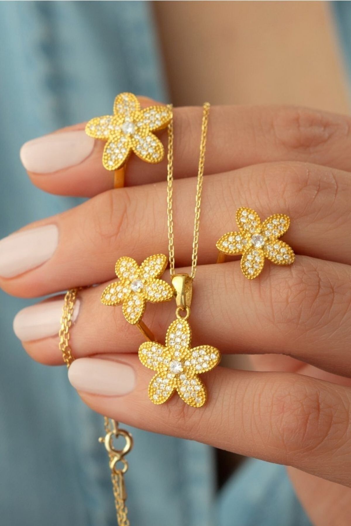 ** 925 Ayar Gümüş ** Gümüş Üstüne 14 Ayar Altın Kaplama **Ürünlerimiz 925 Ayar Gümüştür **Kaliteli Zirkon Taşlı **Hediye Kutusunda Teslimat **Gümüş ya da altın takınızı uzun süre sağlıklı kullanmak için dezenfektan, ıslak mendil ve deodorant gibi kimyasal ürünlerden koruyunuz. ; **Takınızı kullanmadığınız süre içinde, rutubetsiz ve hava almayan bir kutuda muhafaza ediniz. ; **Lütfen diş macunu, kül vb. ; gibi kulaktan dolma yanlış bilgiler ile temizleyerek takınızı bozmayınız. ; Firmamız tarafından 925 Ayar gümüşten tamamen el işçiliği ile özenle hazırlanmıştır. ; Yılların verdiği tecrübe ürün ve hizmet kalitemizi sizlere sunuyoruz. ; Sevdiklerinize ya da kendinize sunabileceğiniz şık ürünlerimiz aynı şıklıkta hediye kutusu ve özel çantası ile paketlenmektedir. ; İstediğiniz notları paketlere ekleyebilirsiniz. ; Ürünlerimizi mutlu günlerde kullanmanızı dileriz………;