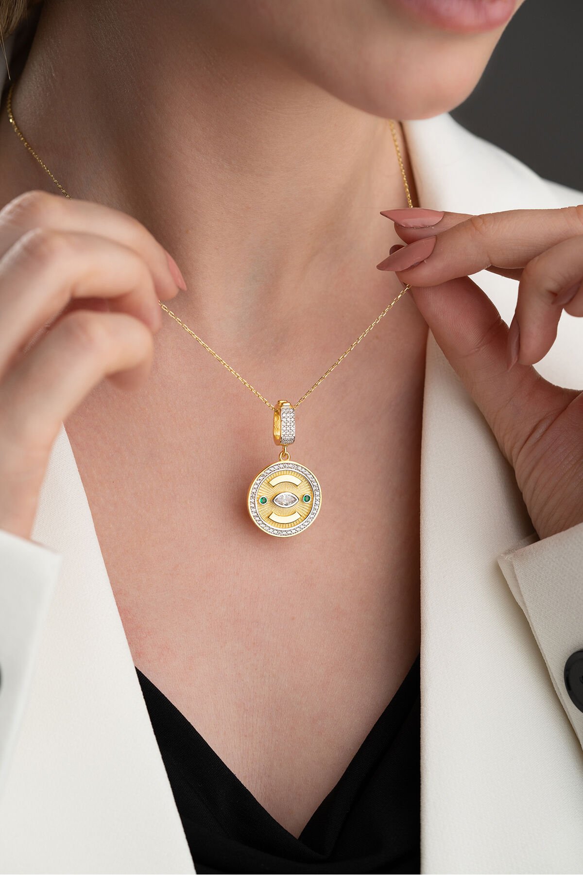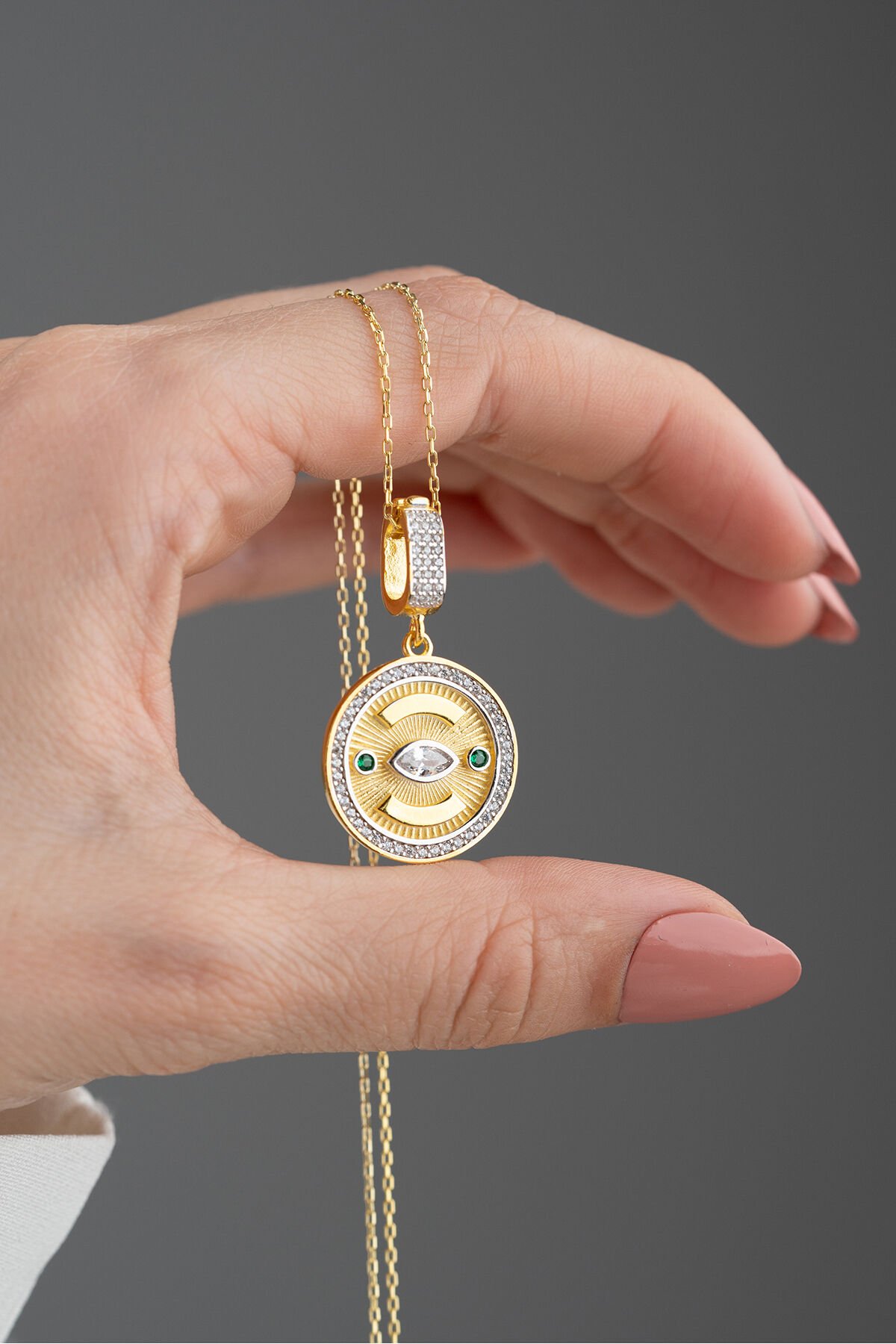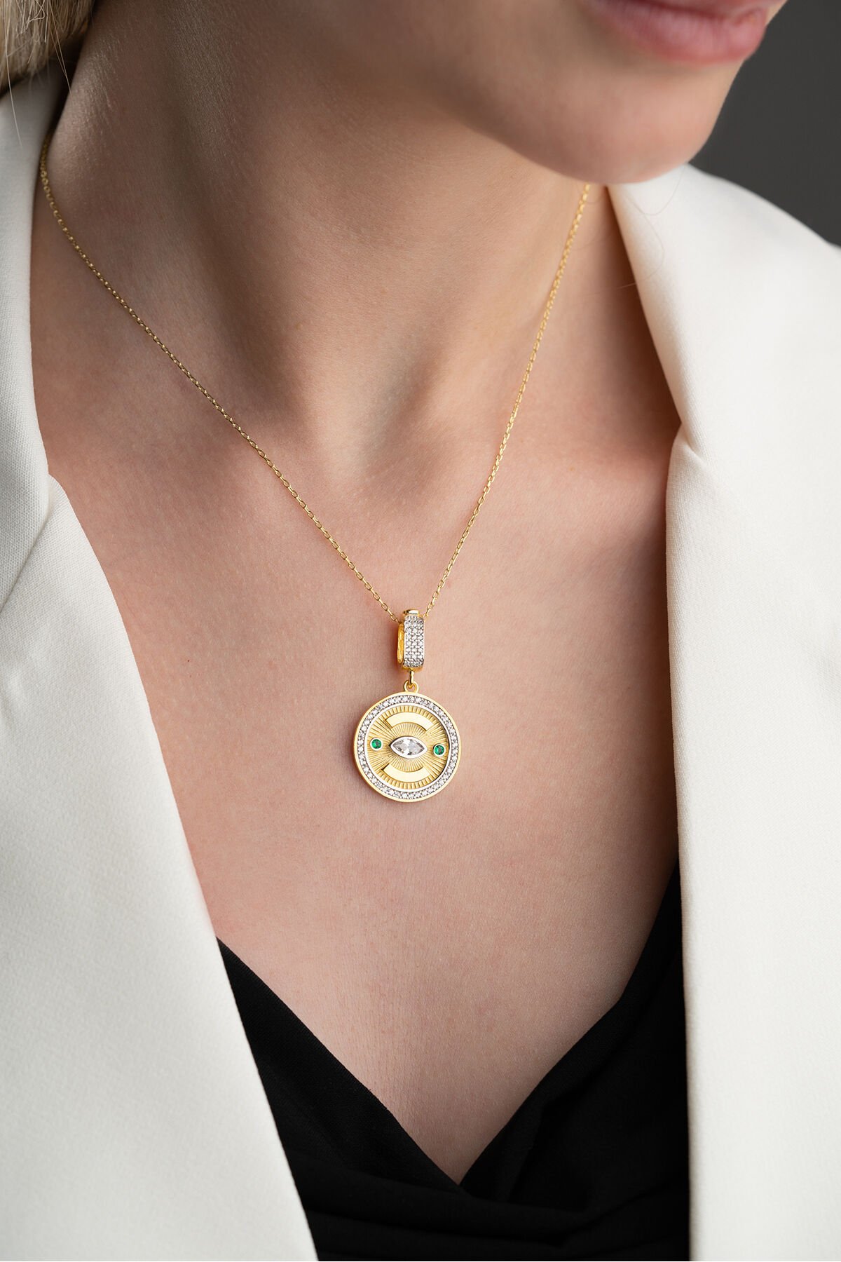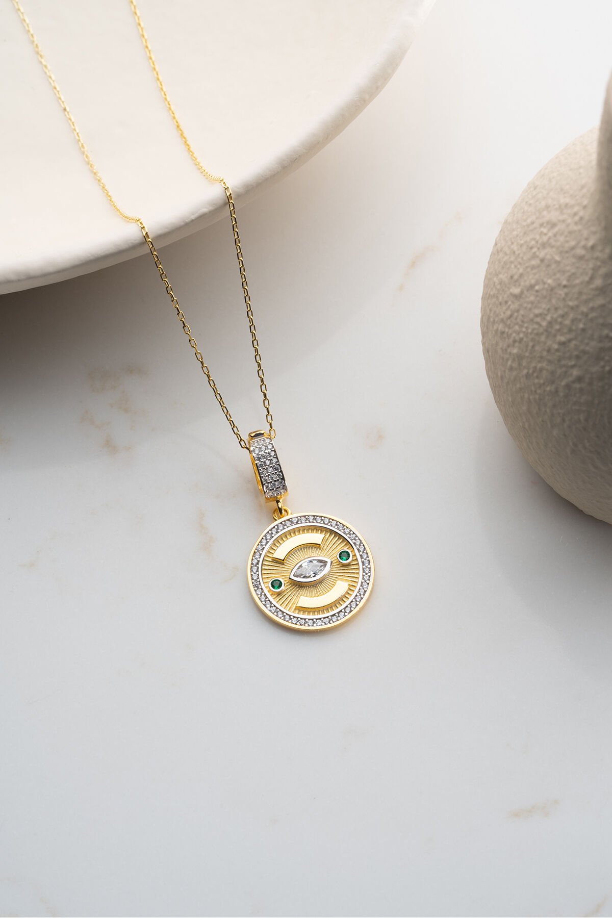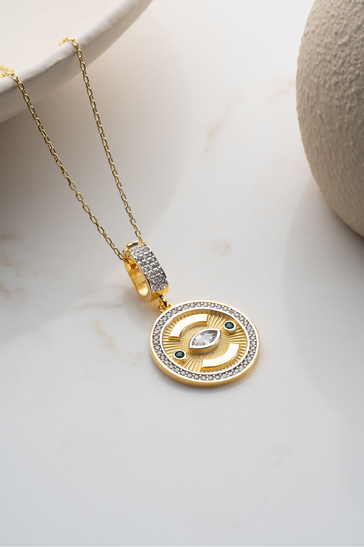 925 Ayar Gümüş Yuvarlak Göz Kolye