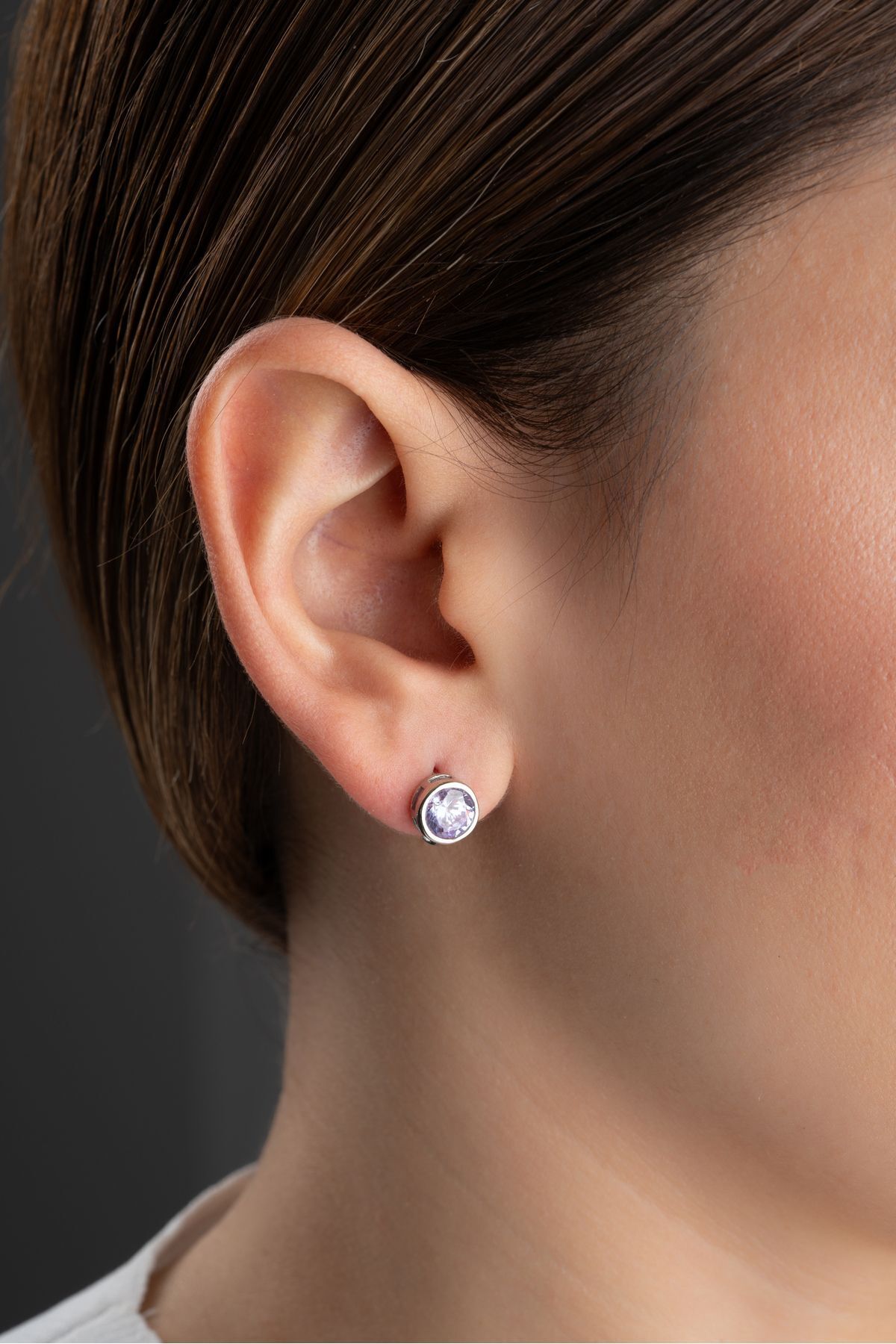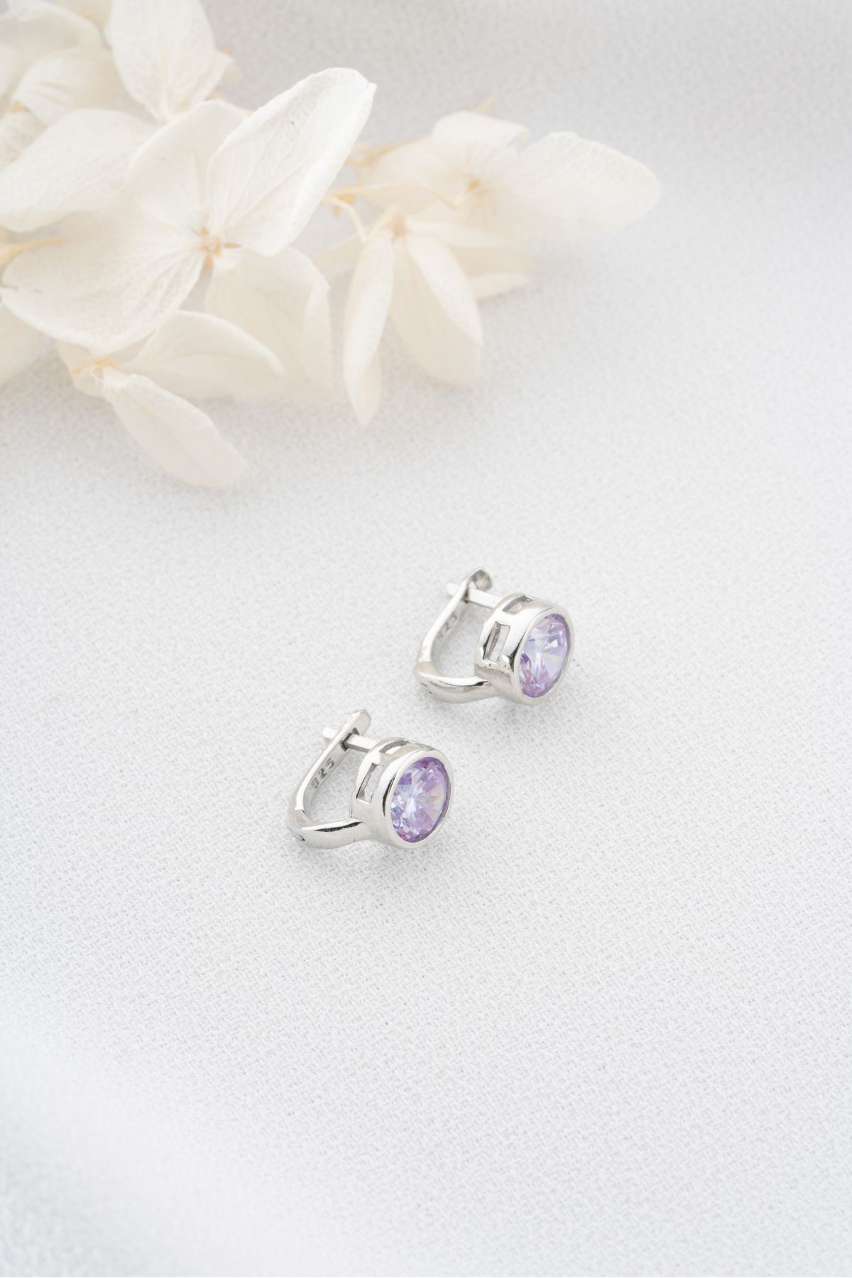 925 Ayar Gümüş Yuvarlak Lila Minik Küpe