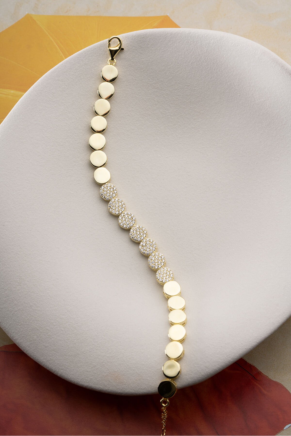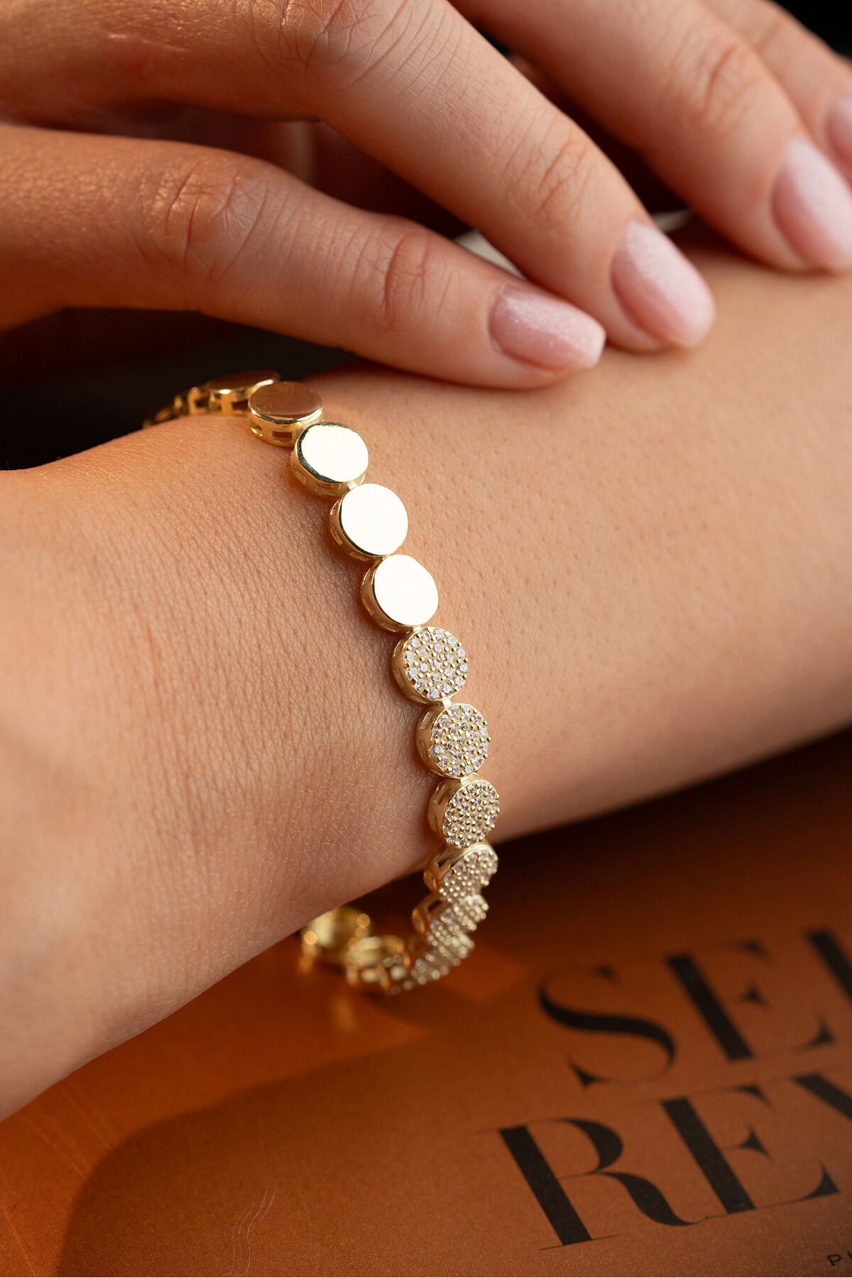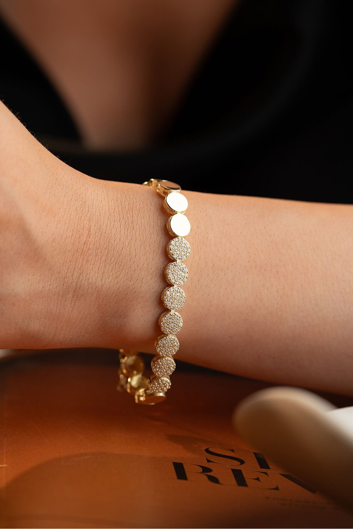 925 Ayar Gümüş Yuvarlak Taşlı Model Bileklik