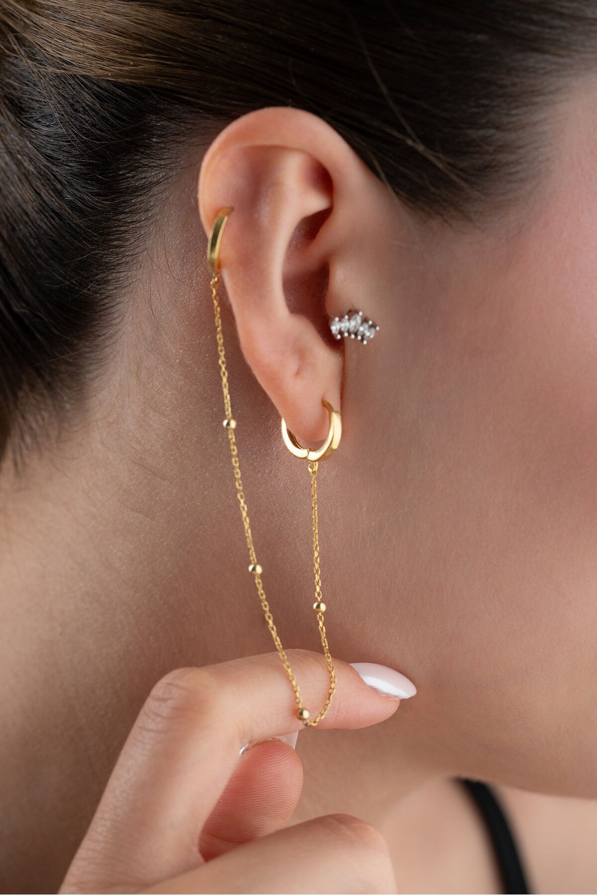 925 Ayar Gümüş Zincirli Halka Küpe
