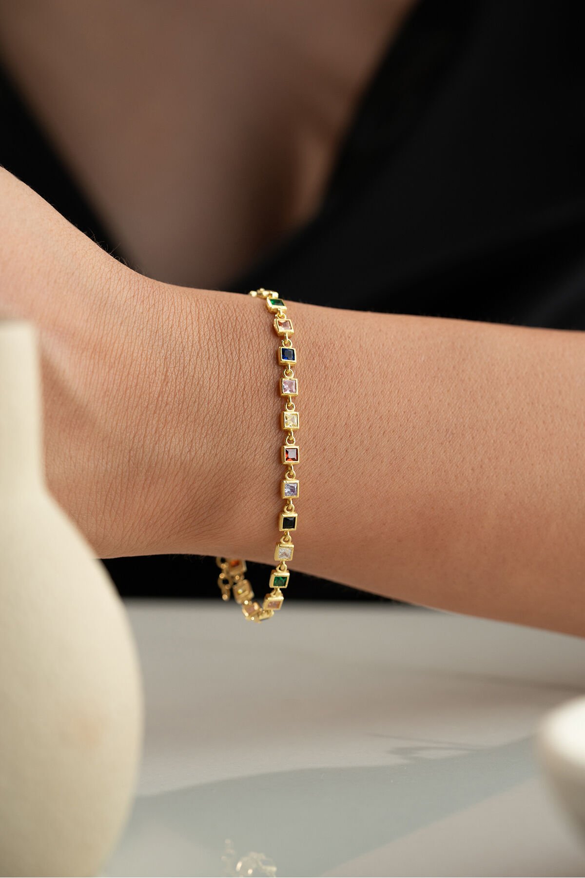925 Ayar Gümüş Zirkon Kare Taşlı Bileklik