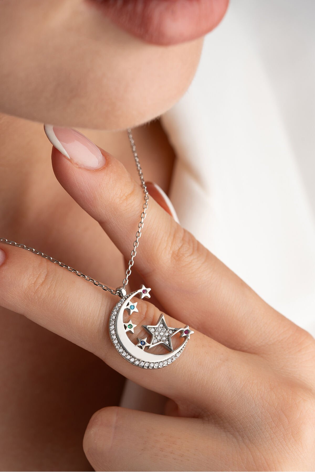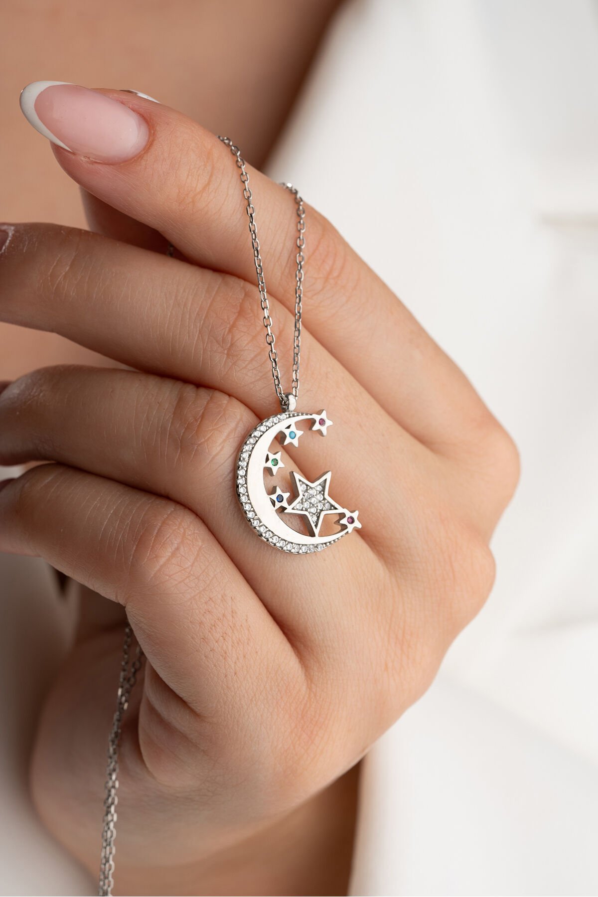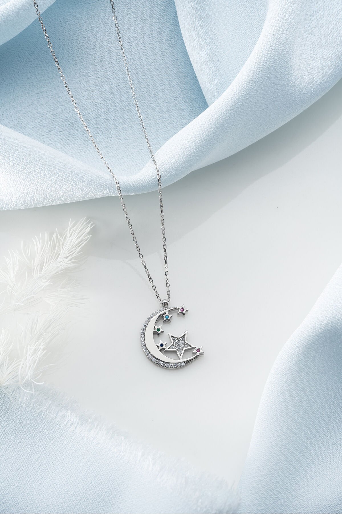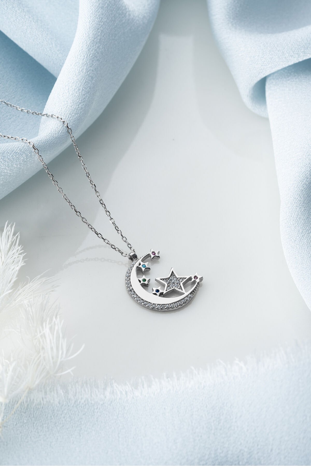 925 Ayar Gümüş Zirkon Taşlı Ayyıldız Kolye