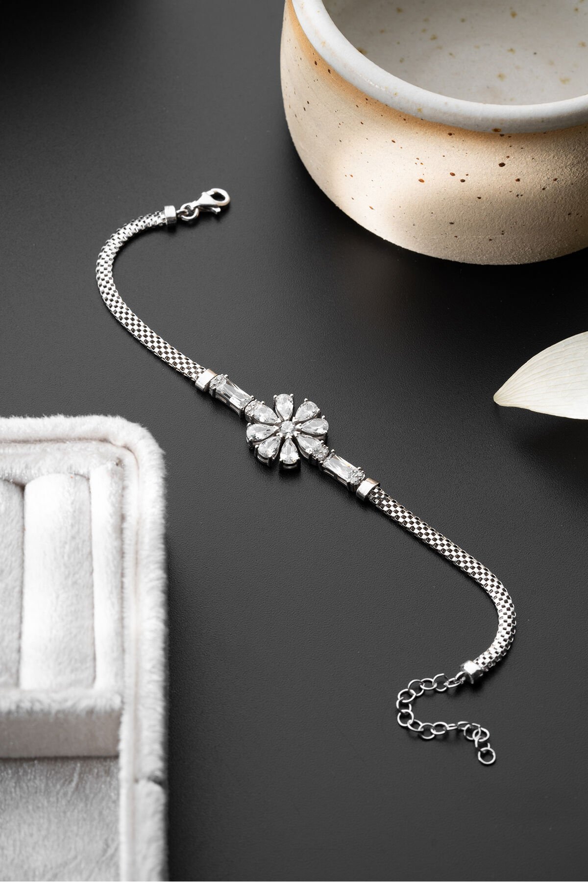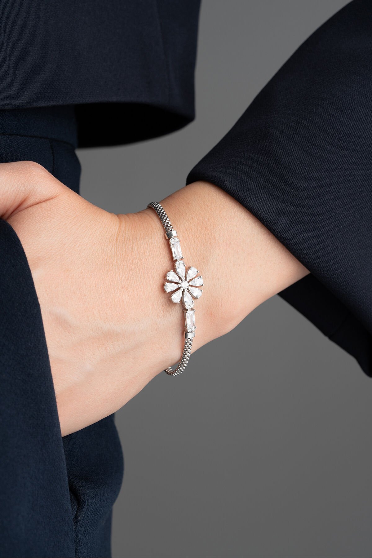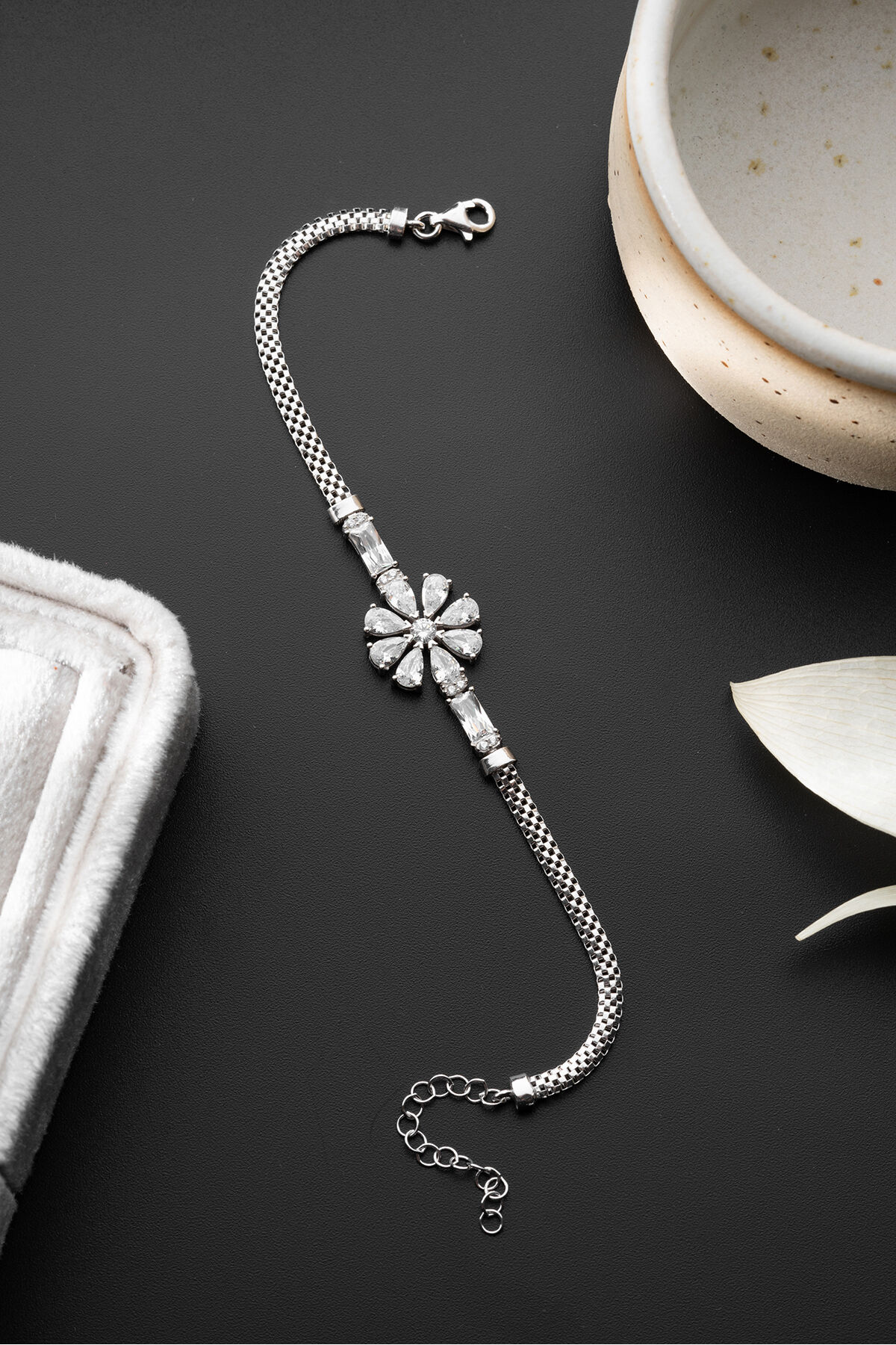 925 Ayar Gümüş Zirkon Taşlı Çiçek Bileklik