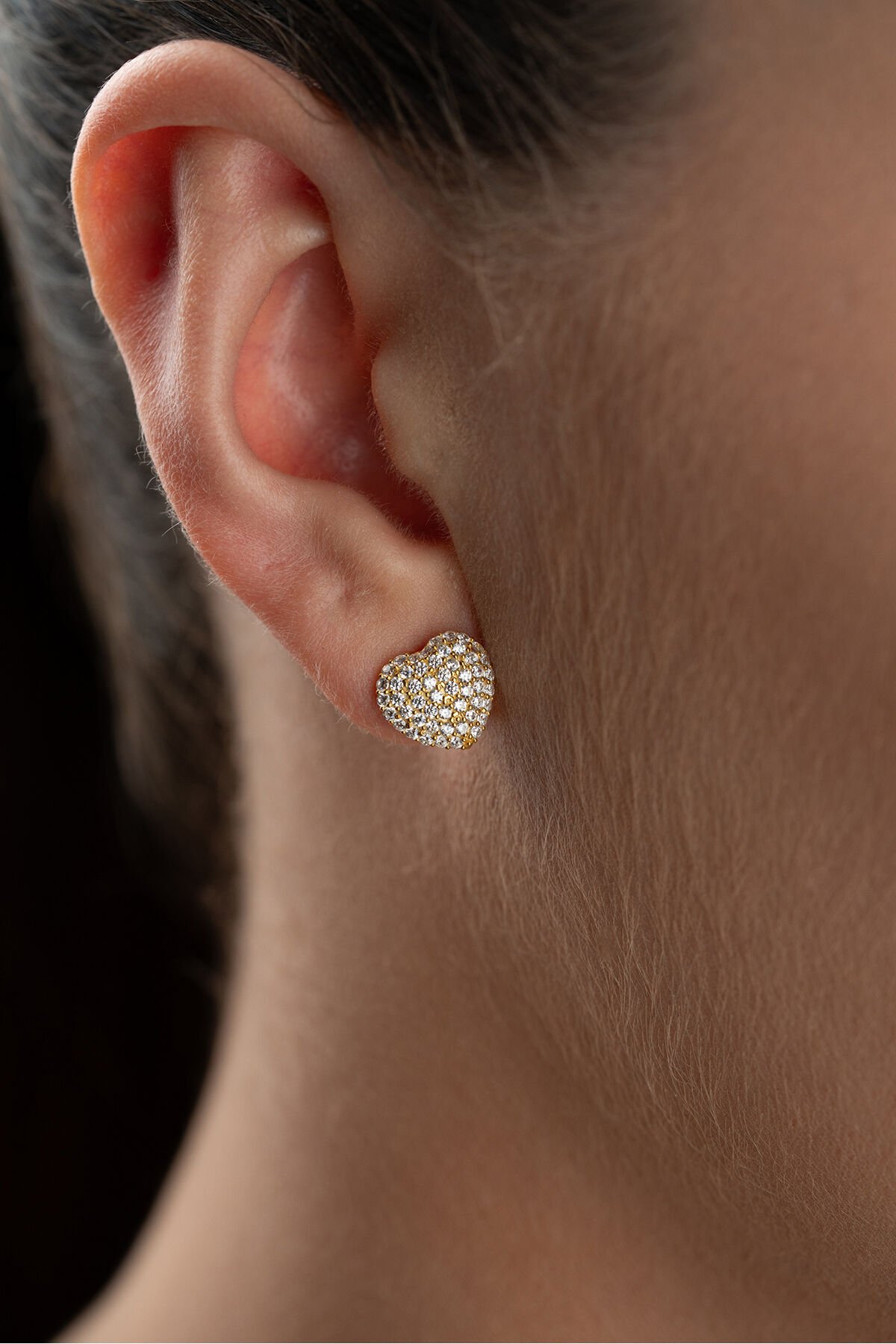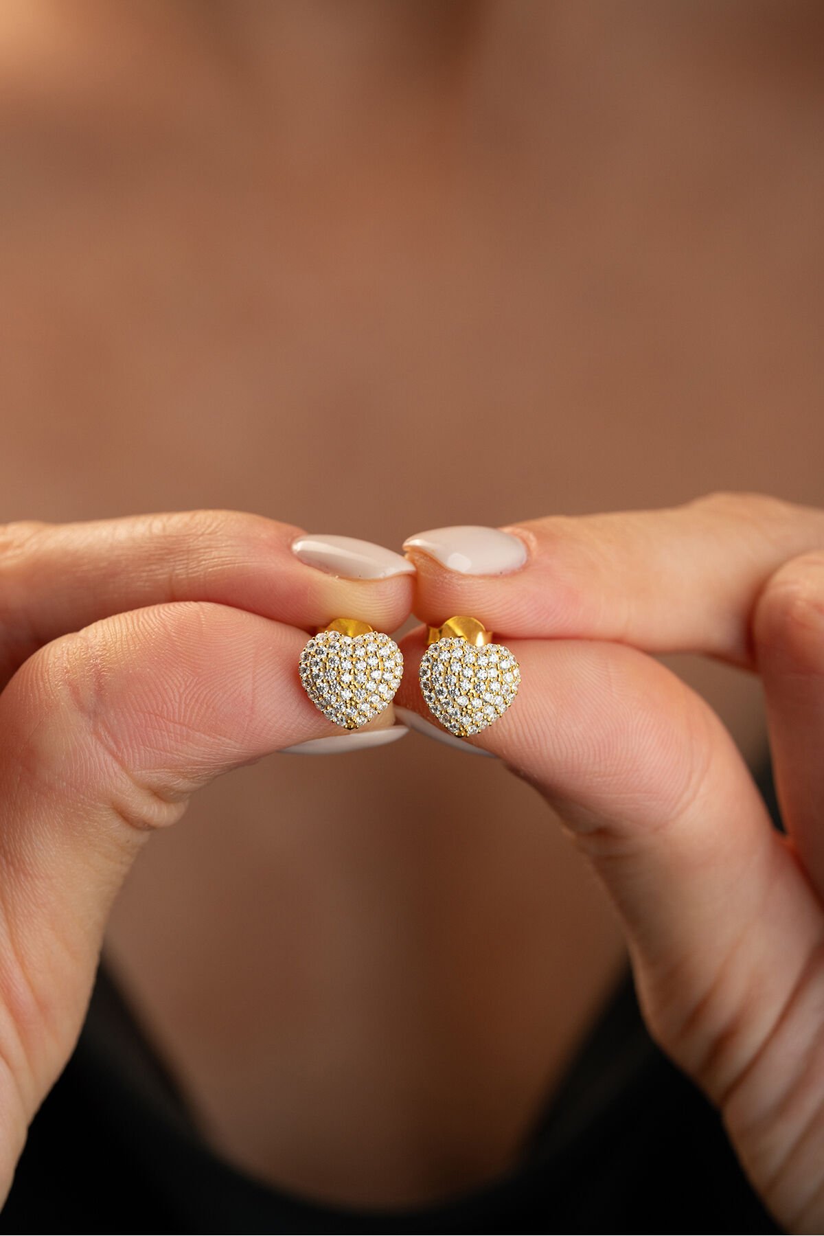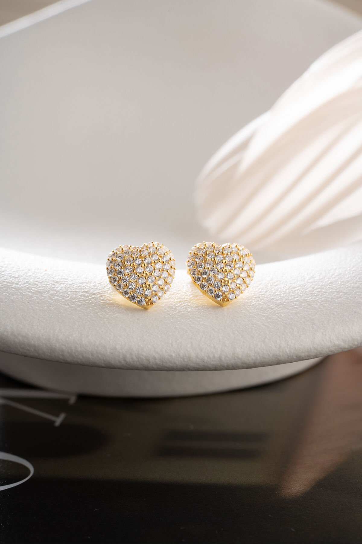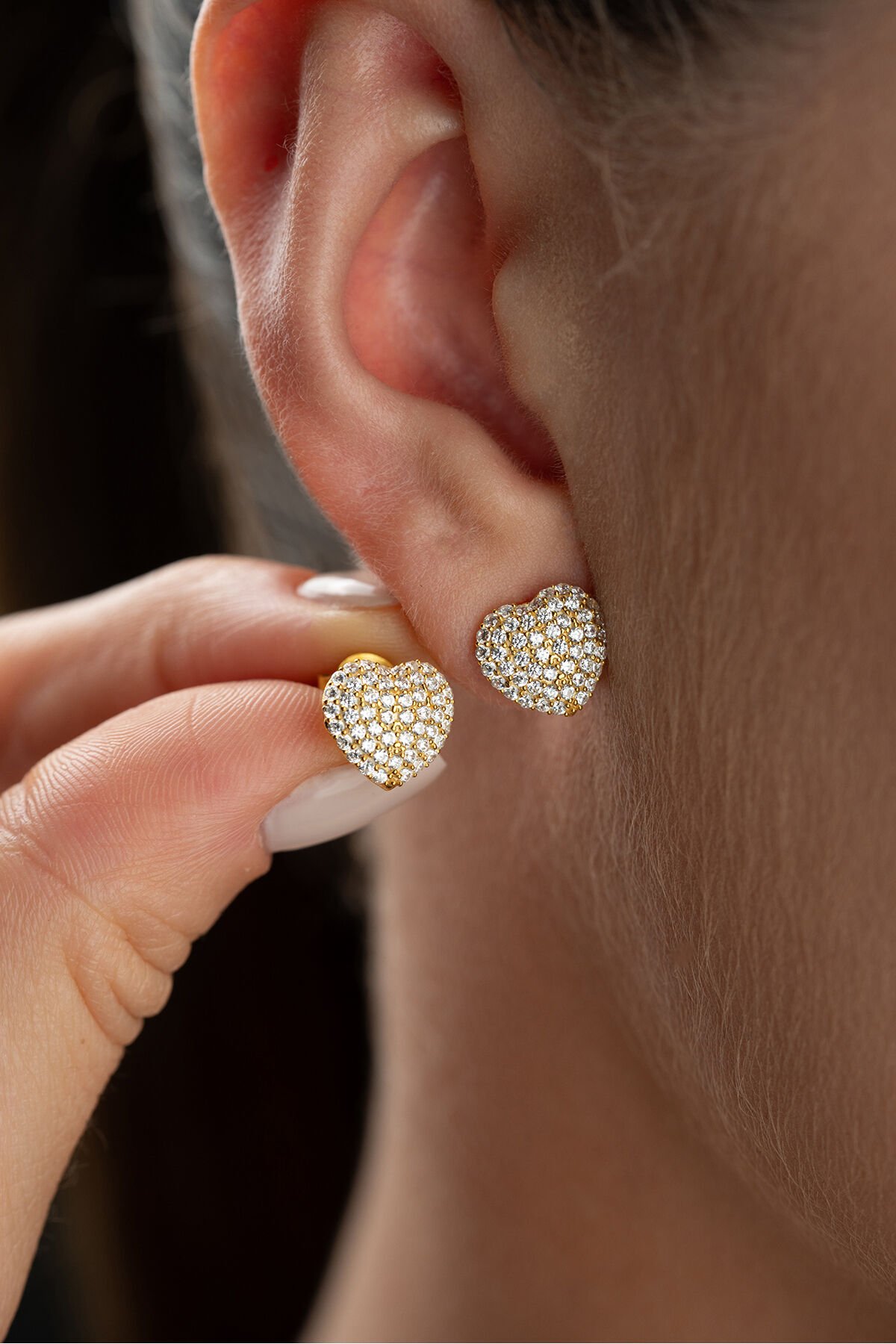925 Ayar Gümüş Zirkon Taşlı Çivili Kalp Küpe