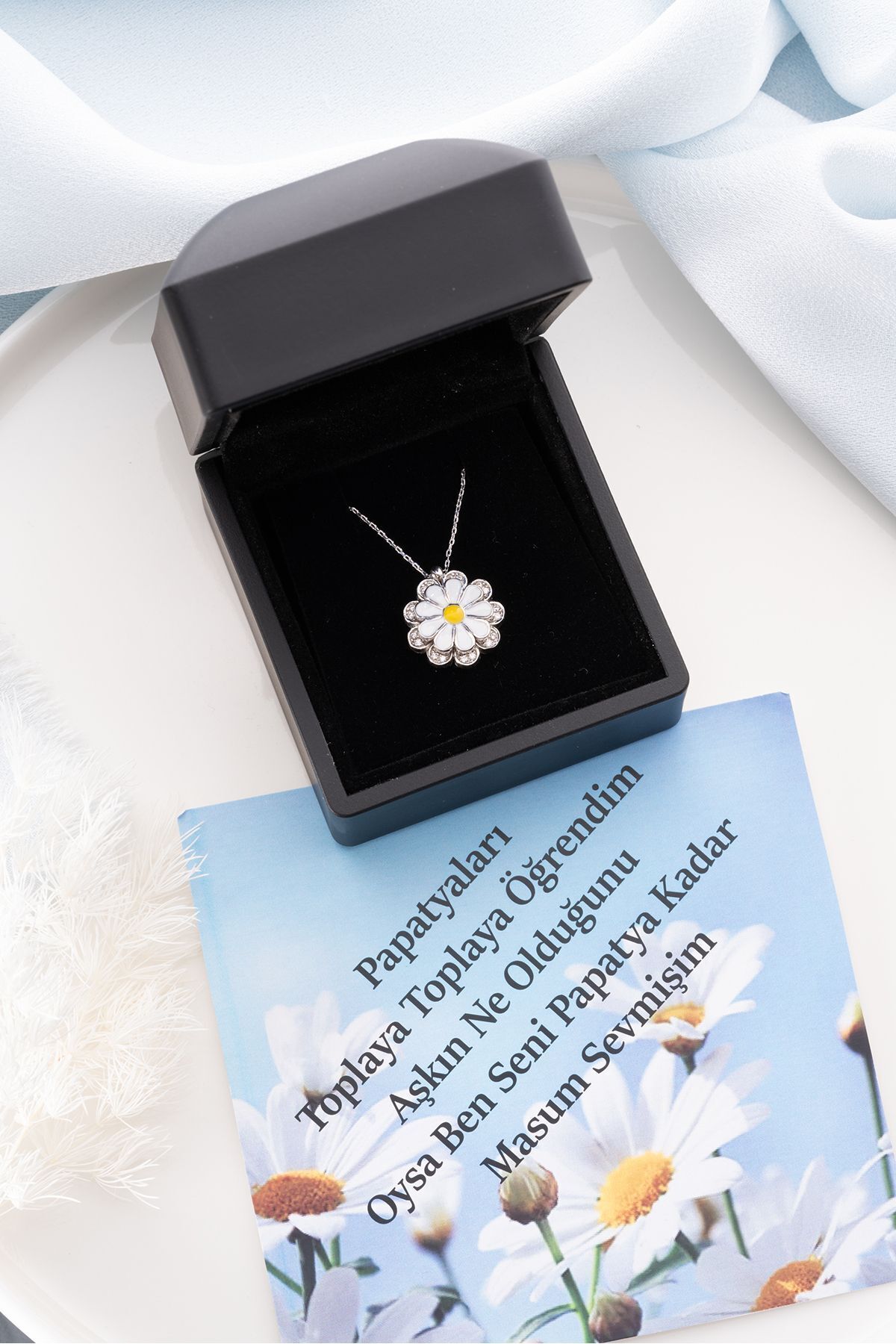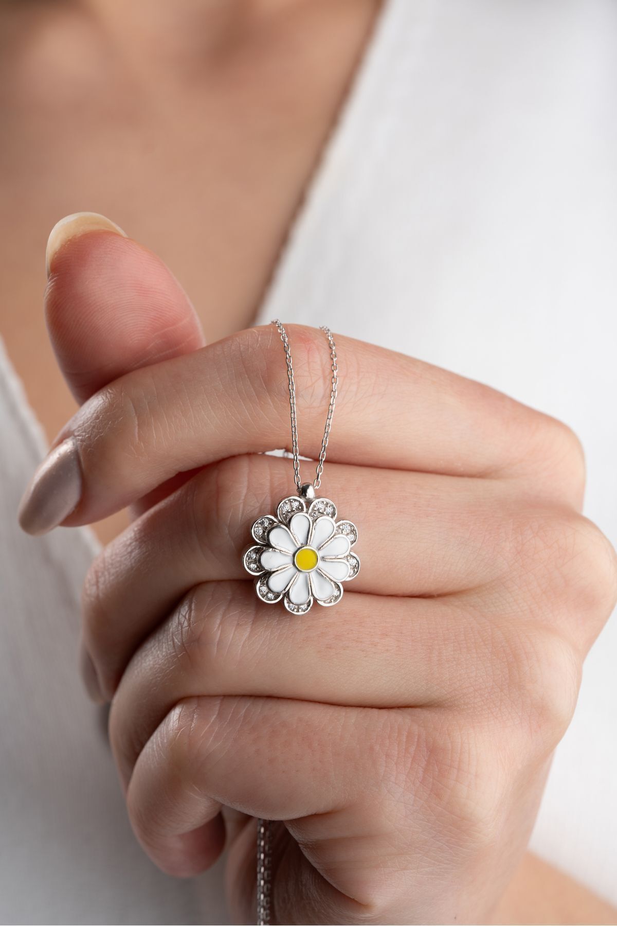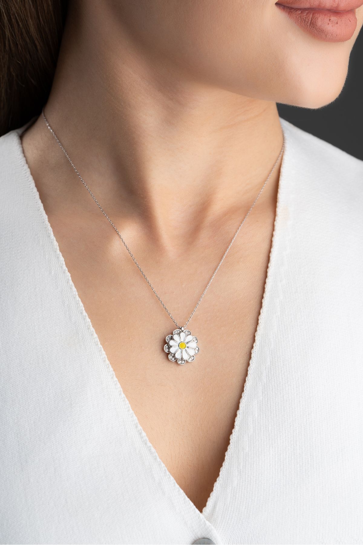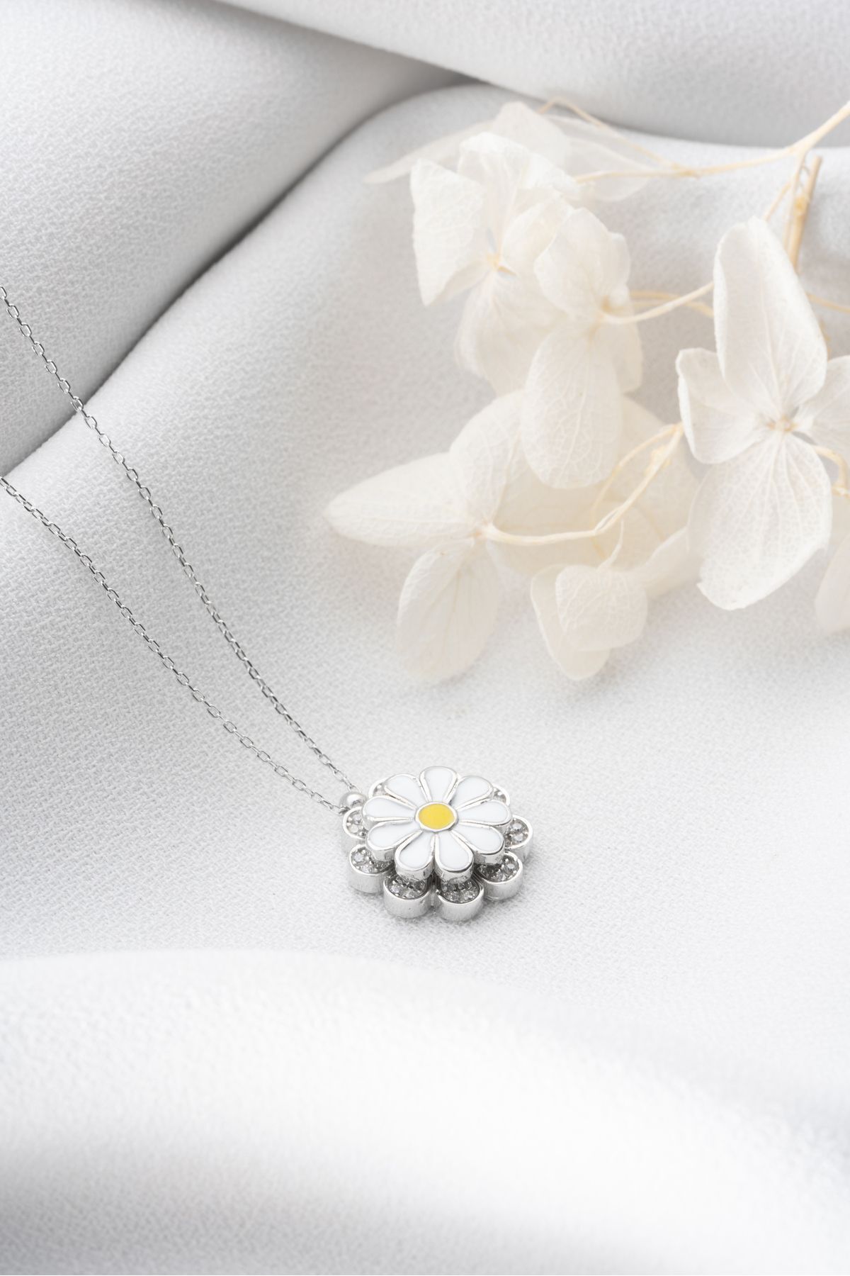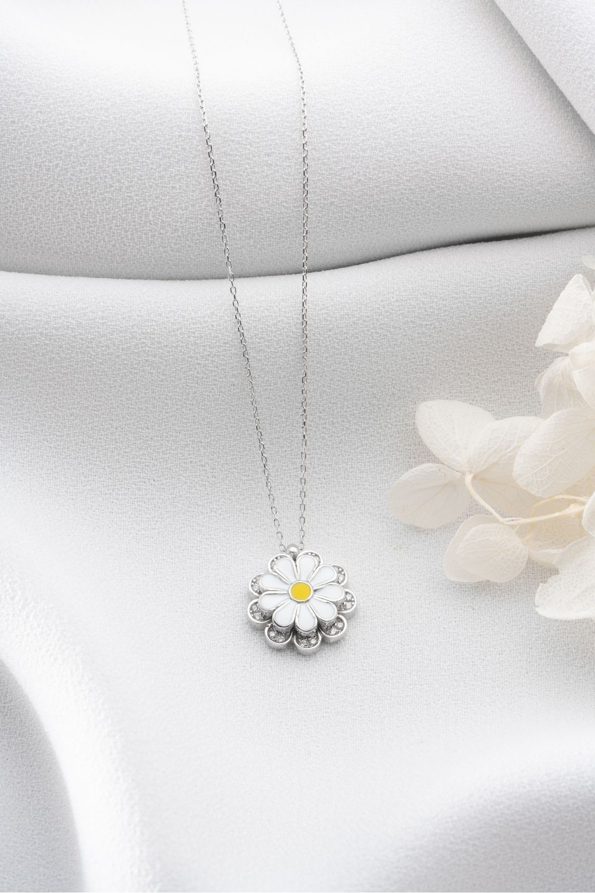 925 Ayar Gümüş Zirkon Taşlı Dönebilen Papatya Kolye