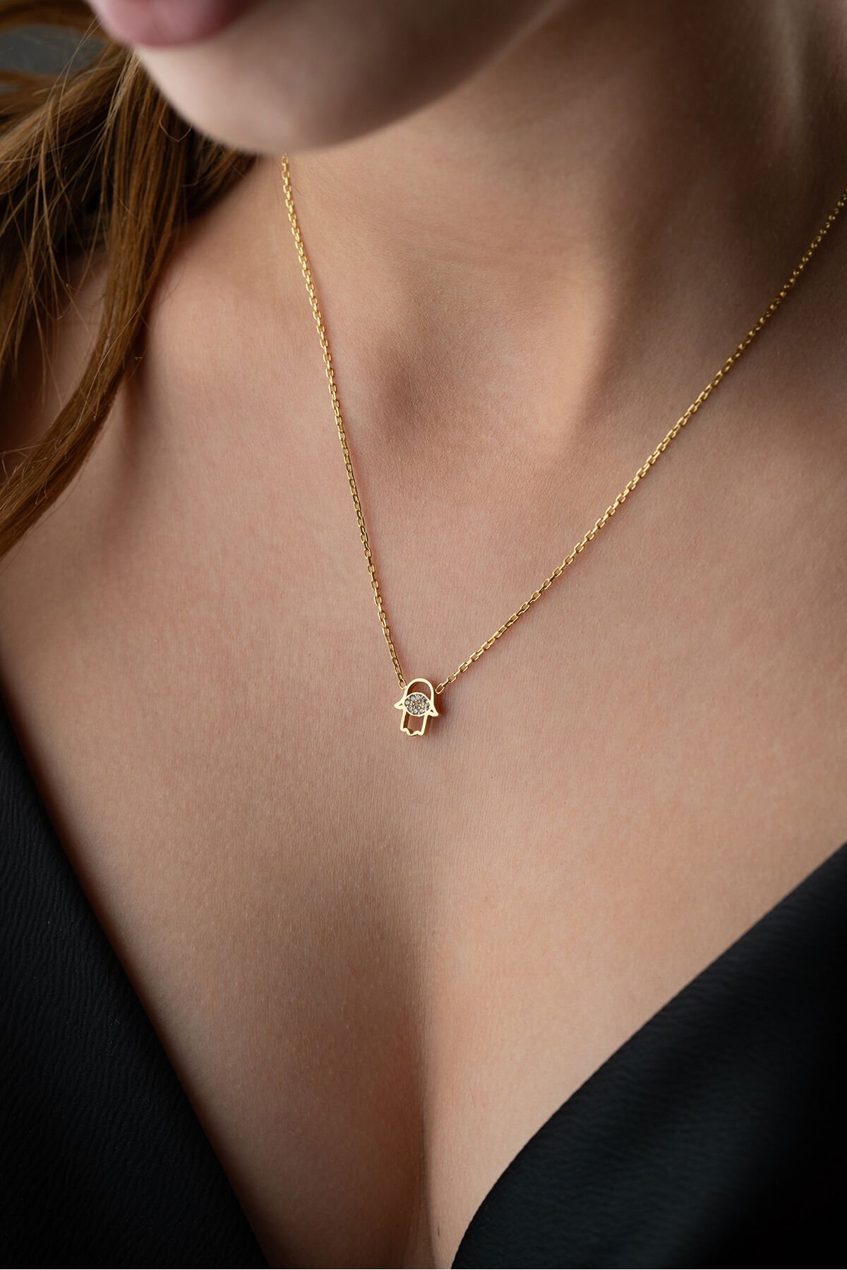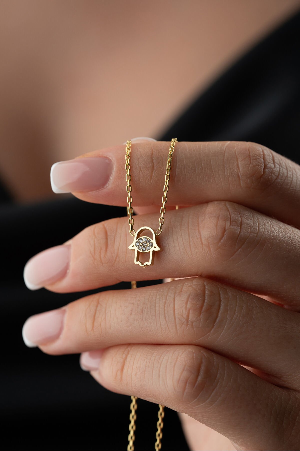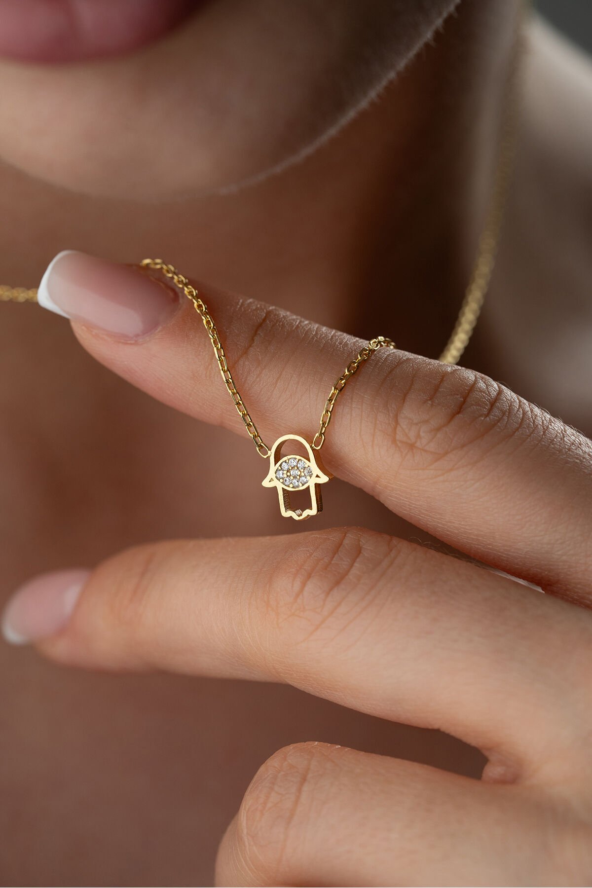925 Ayar Gümüş Zirkon Taşlı Fatma Eli Kolye