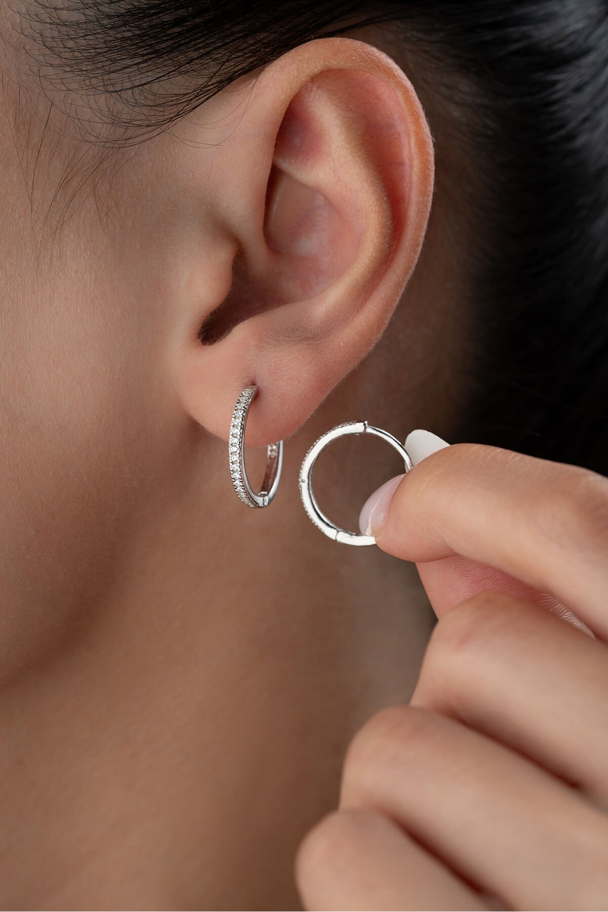 925 Ayar Gümüş Zirkon Taşlı Halka Küpe