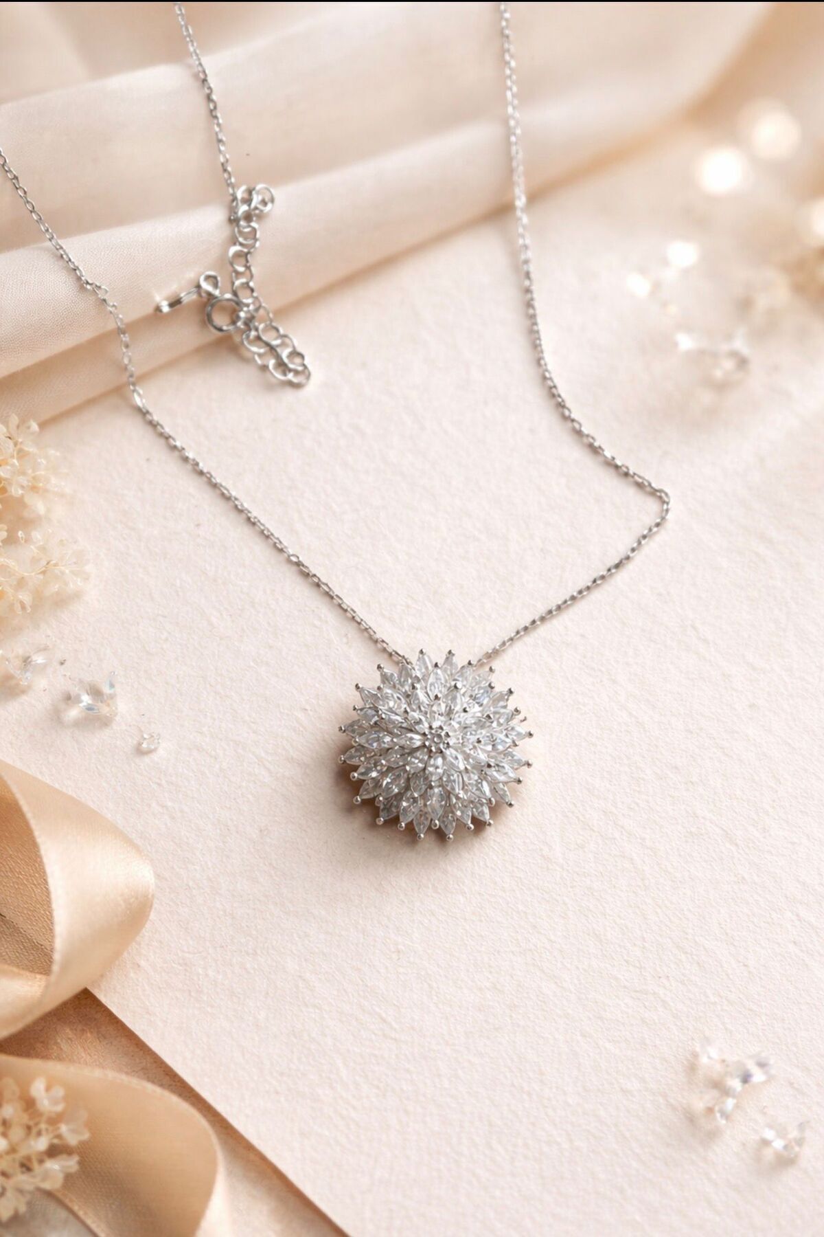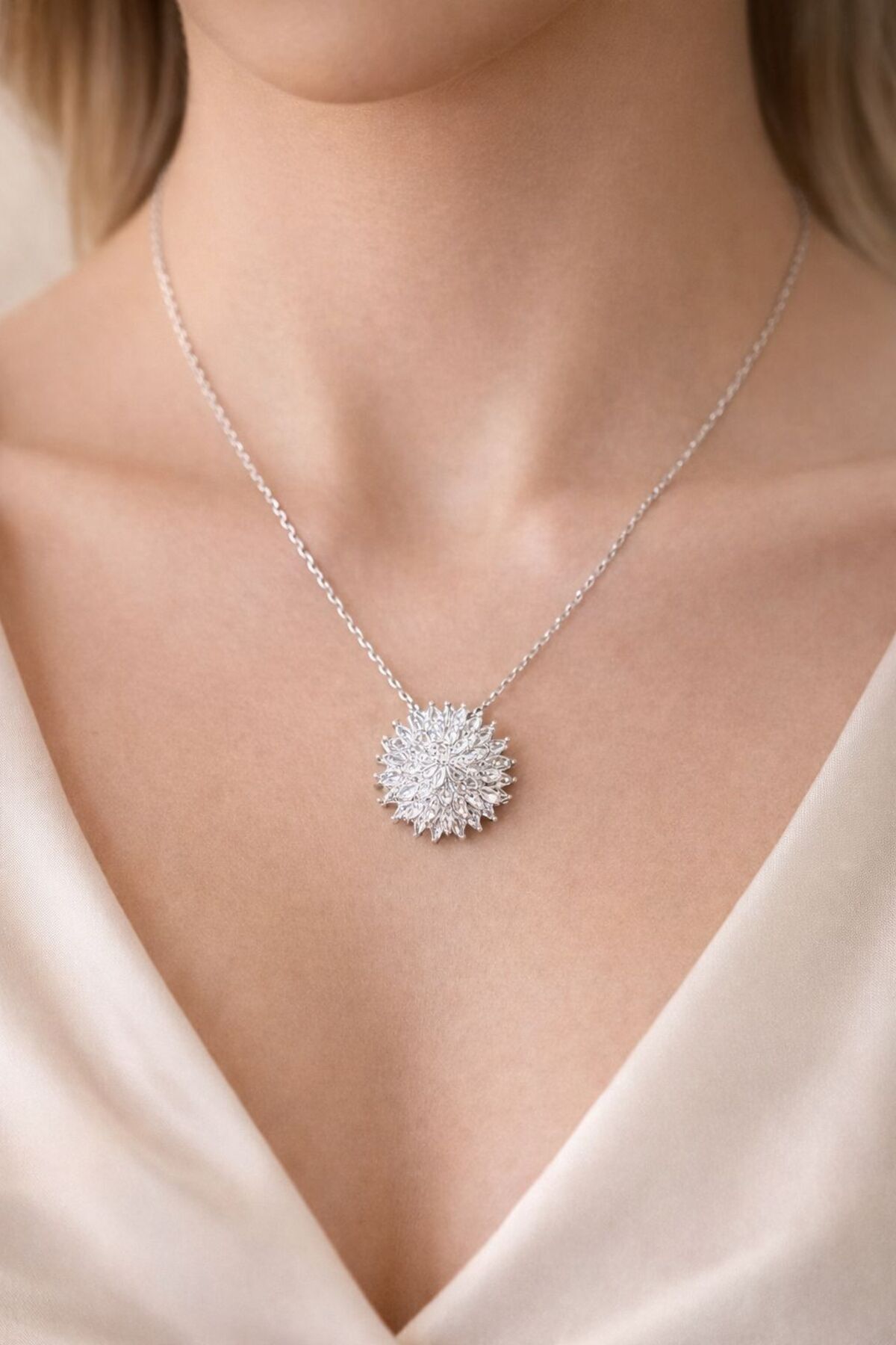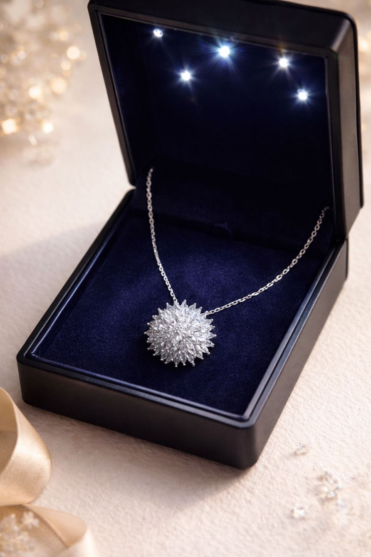 925 Ayar Gümüş Zirkon Taşlı Işıklı Kutu Lotus Kolye