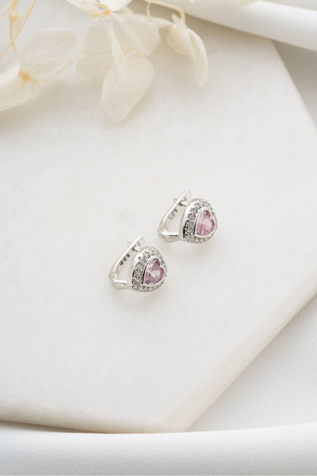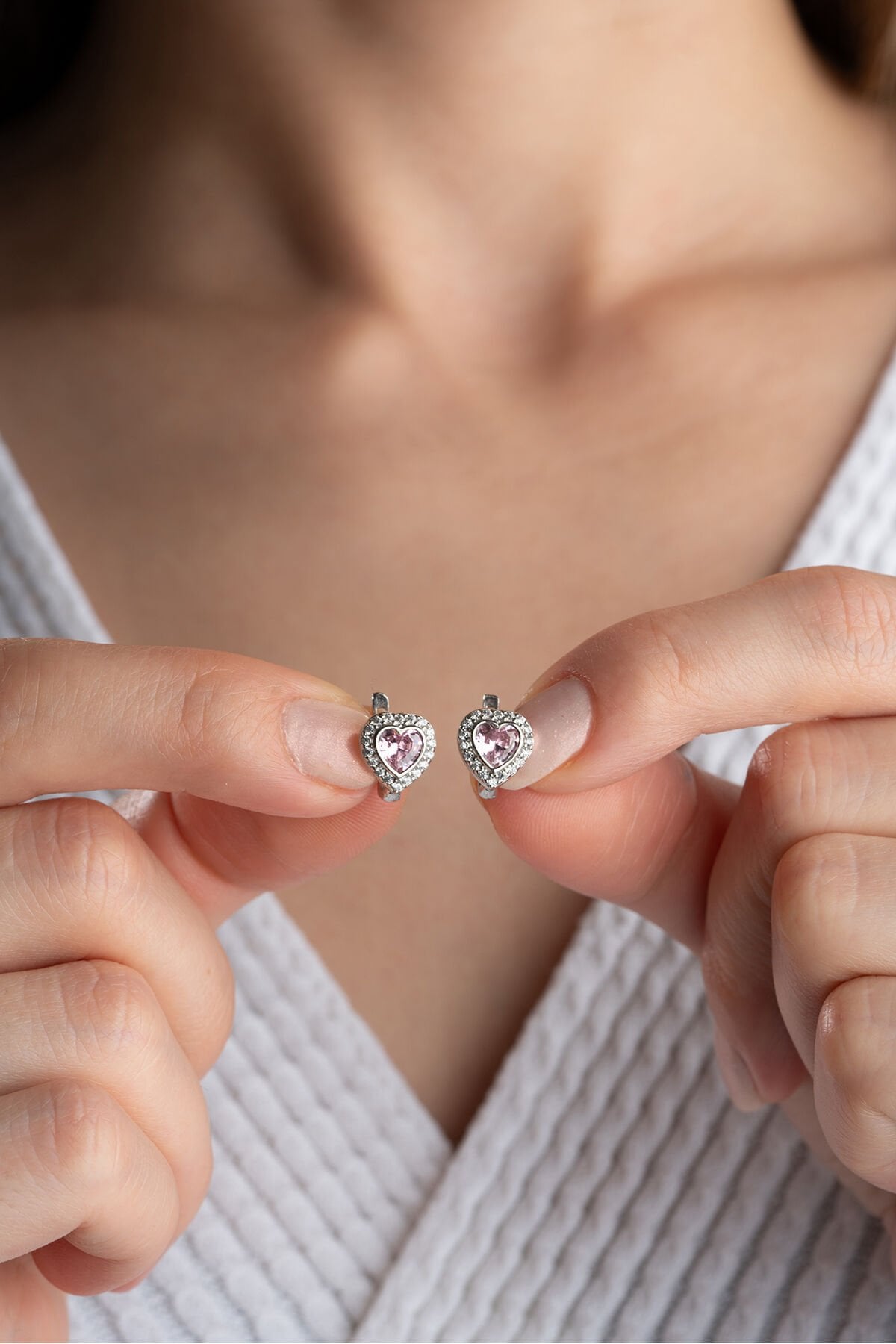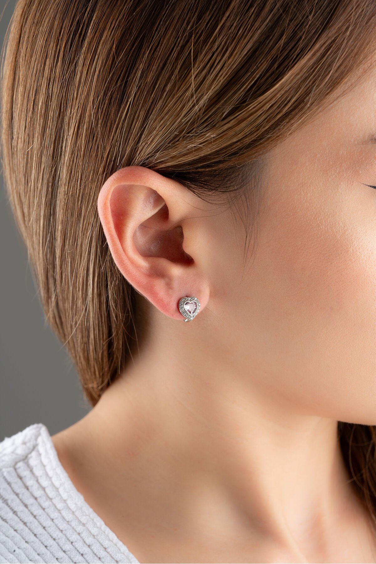 925 Ayar Gümüş Zirkon Taşlı Kalp Küpe