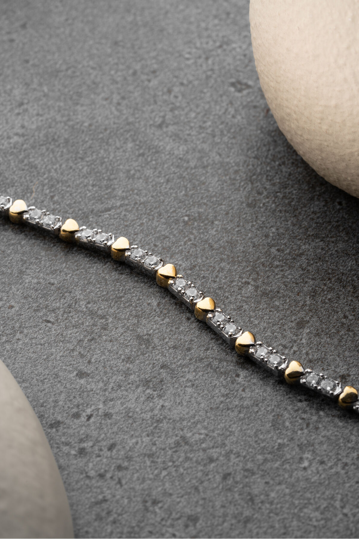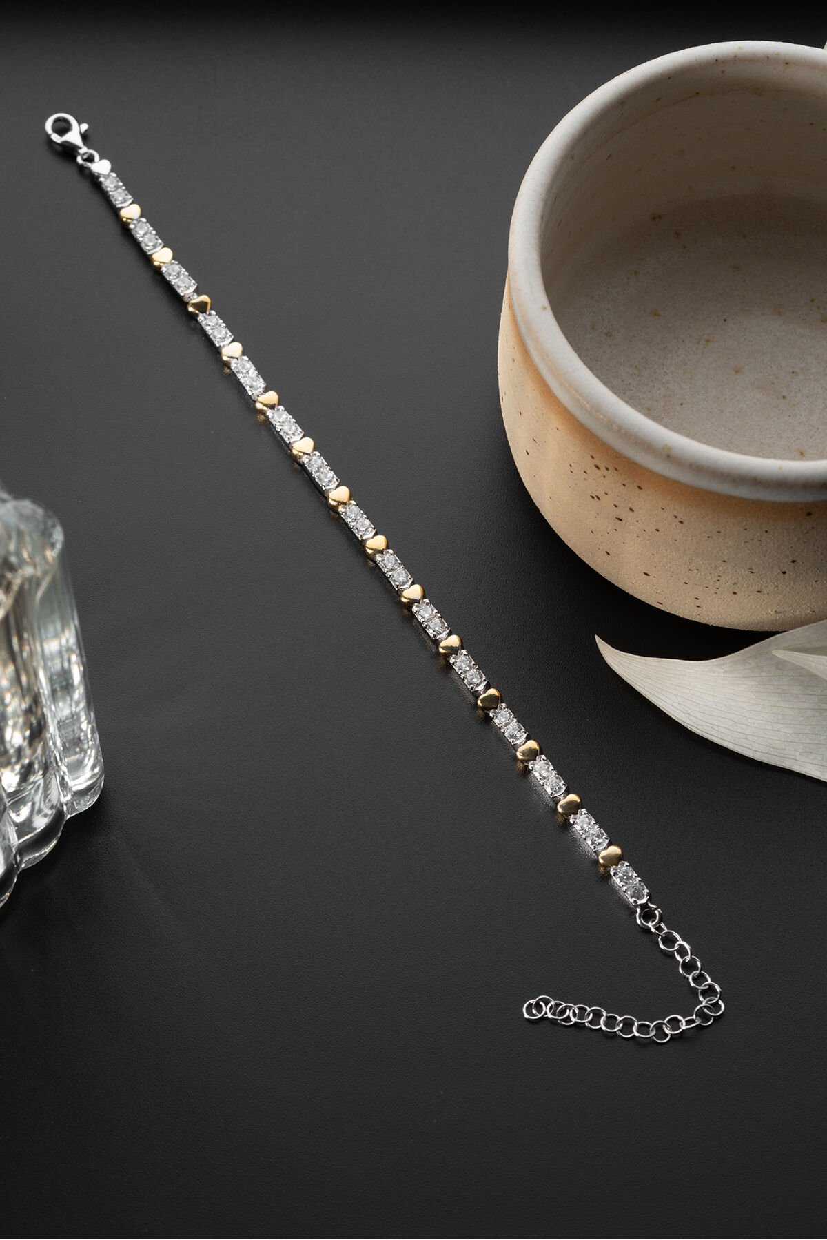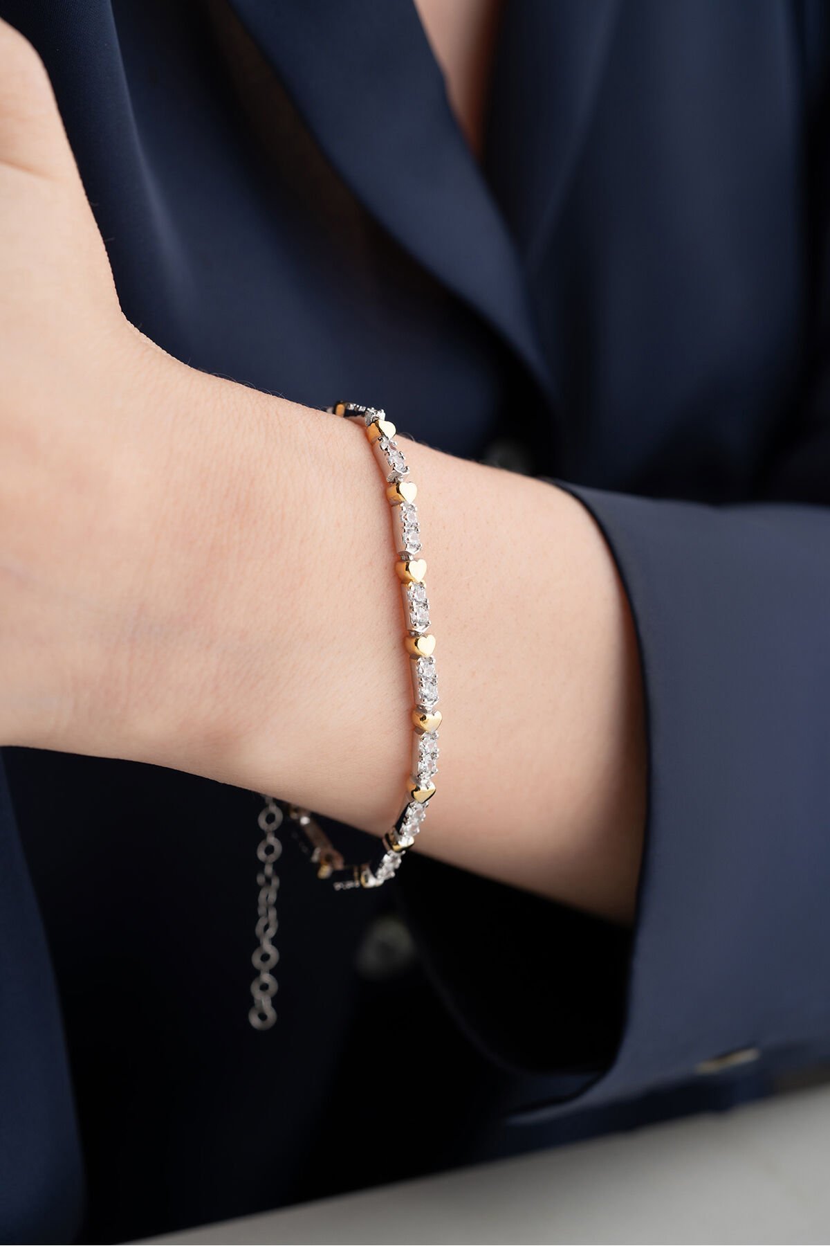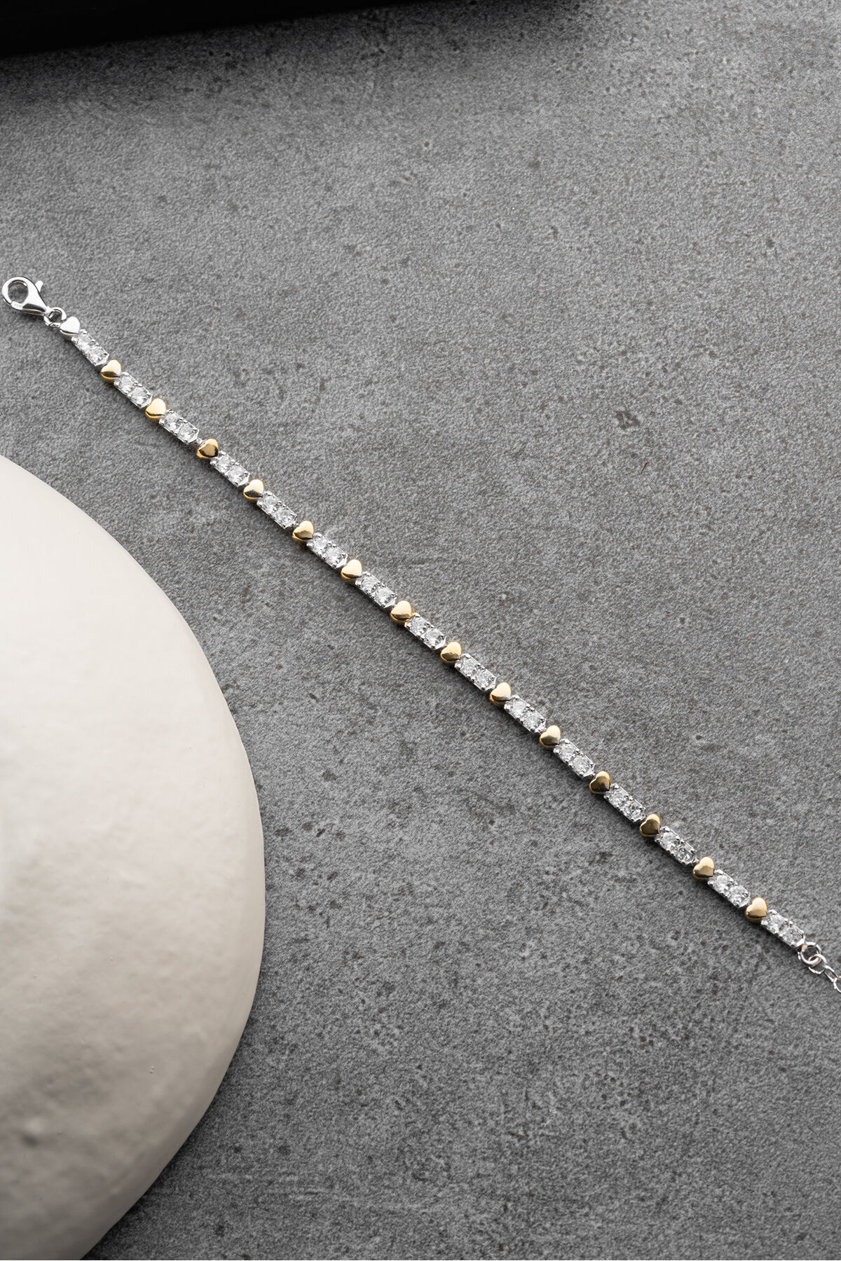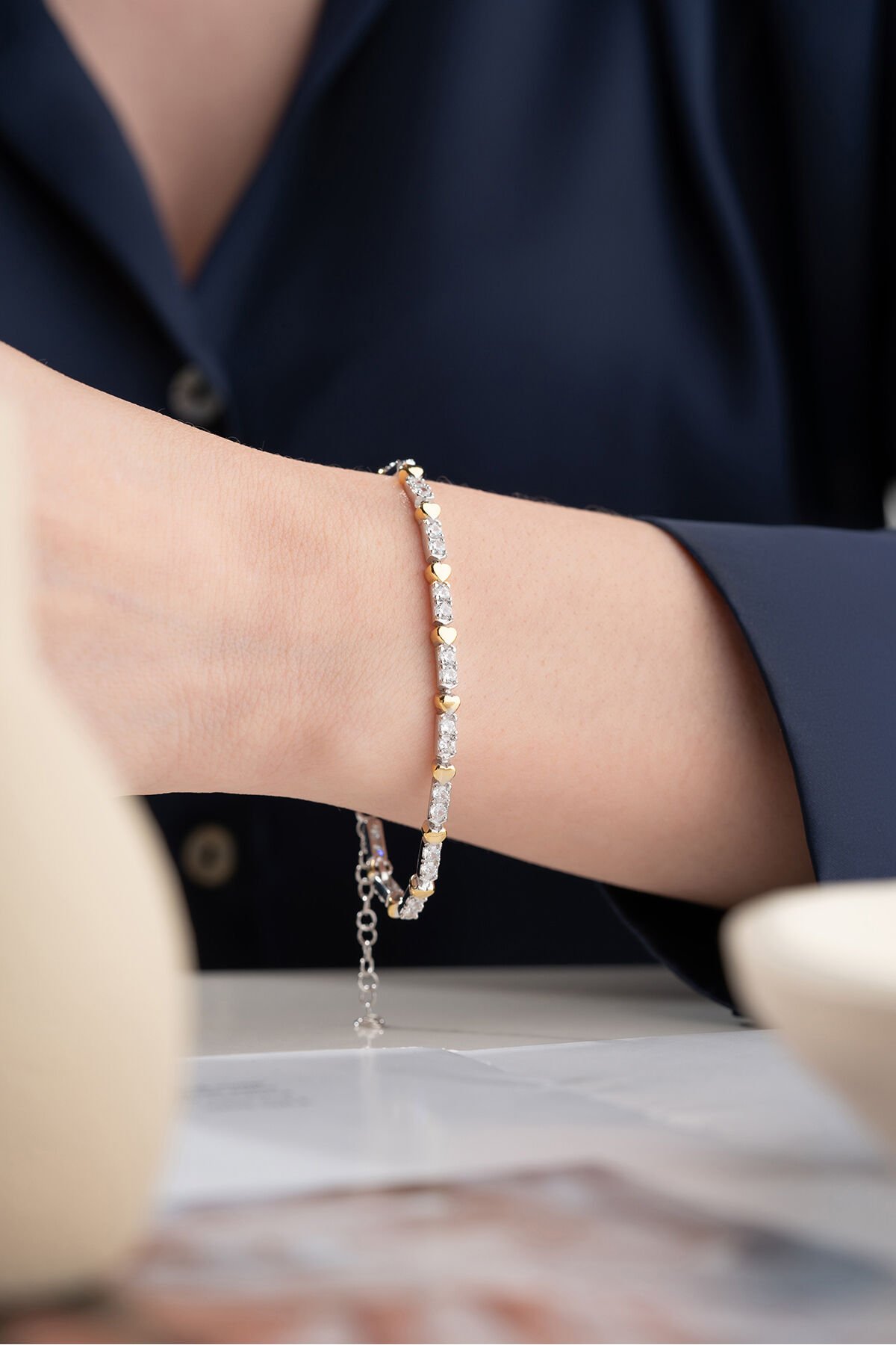 925 Ayar Gümüş Zirkon Taşlı Kalpli Trend Bileklik