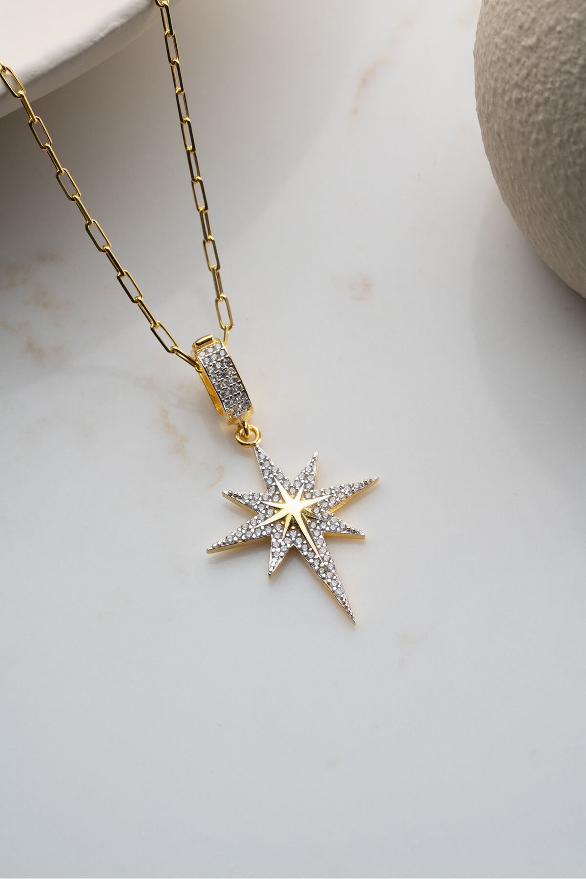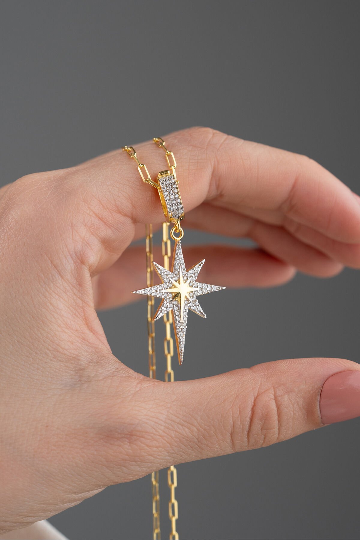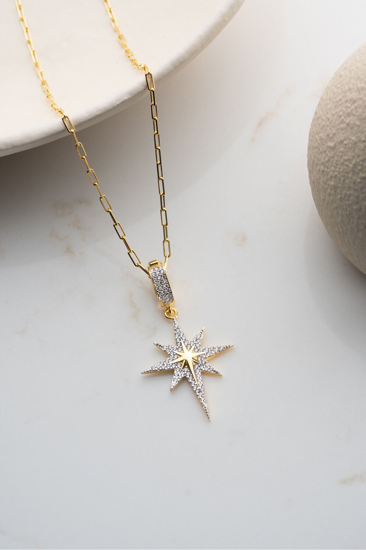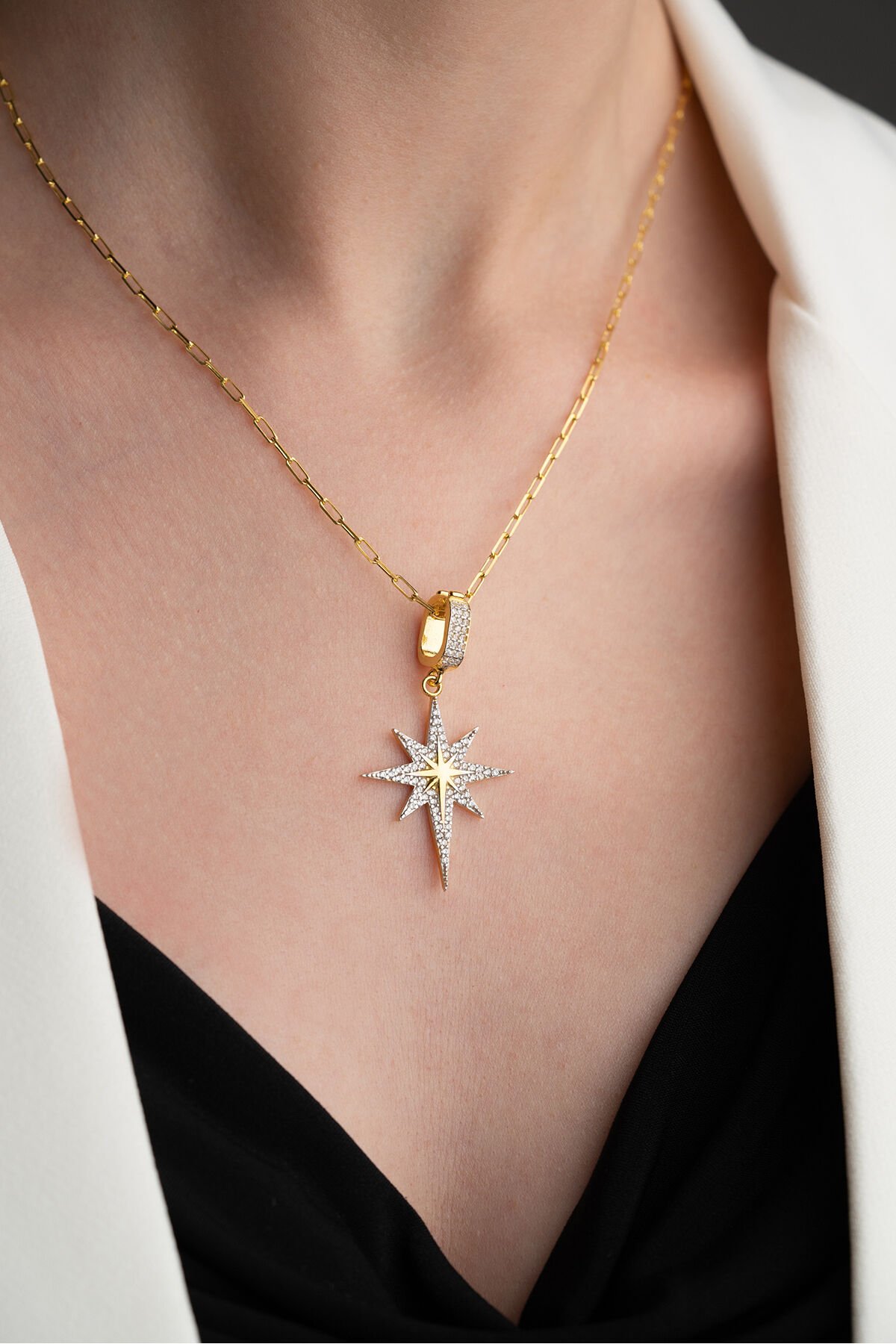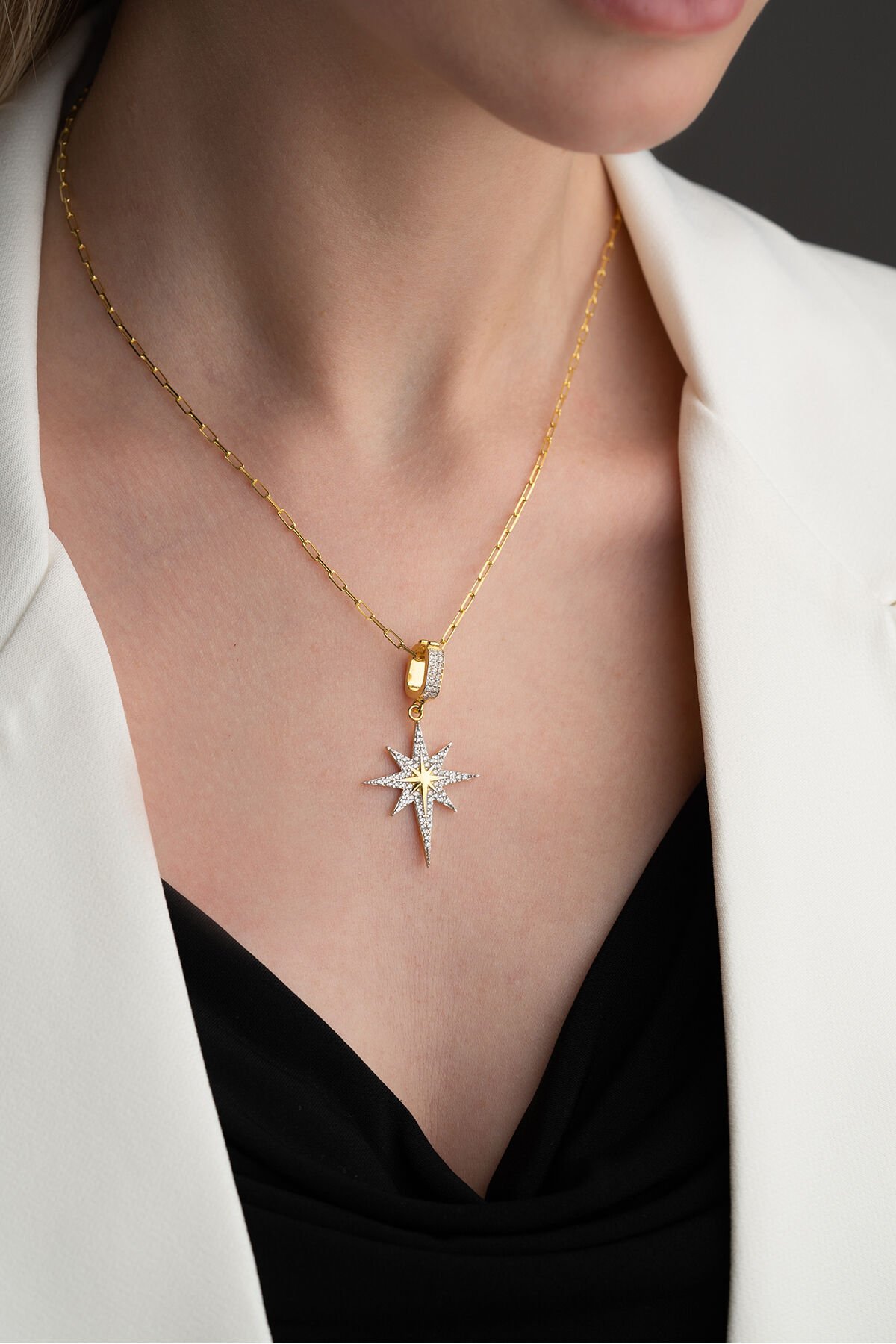 925 Ayar Gümüş Zirkon Taşlı Kutup Yıldızı Kolye