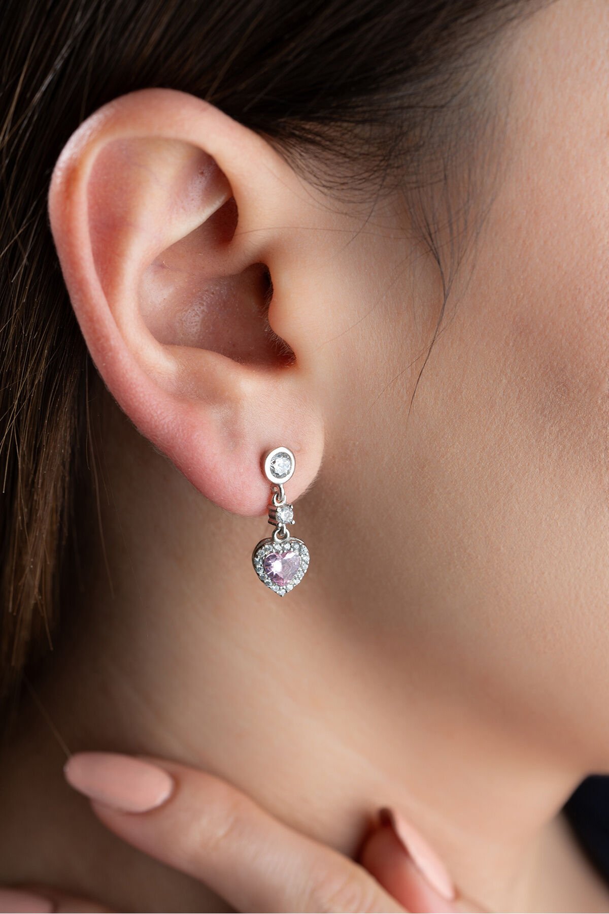 925 ayar gümüş malzeme ile üretilmiş, uzun ömürlü ve kaliteli bir aksesuar deneyimi sunar; Göz alıcı zirkon taşlarla süslenmiş, her türlü kıyafetle uyum sağlayacak zarif bir tasarıma sahiptir; Pembe kalp şeklindeki tasarımıyla romantik ve feminen bir görünüm kazandırır;