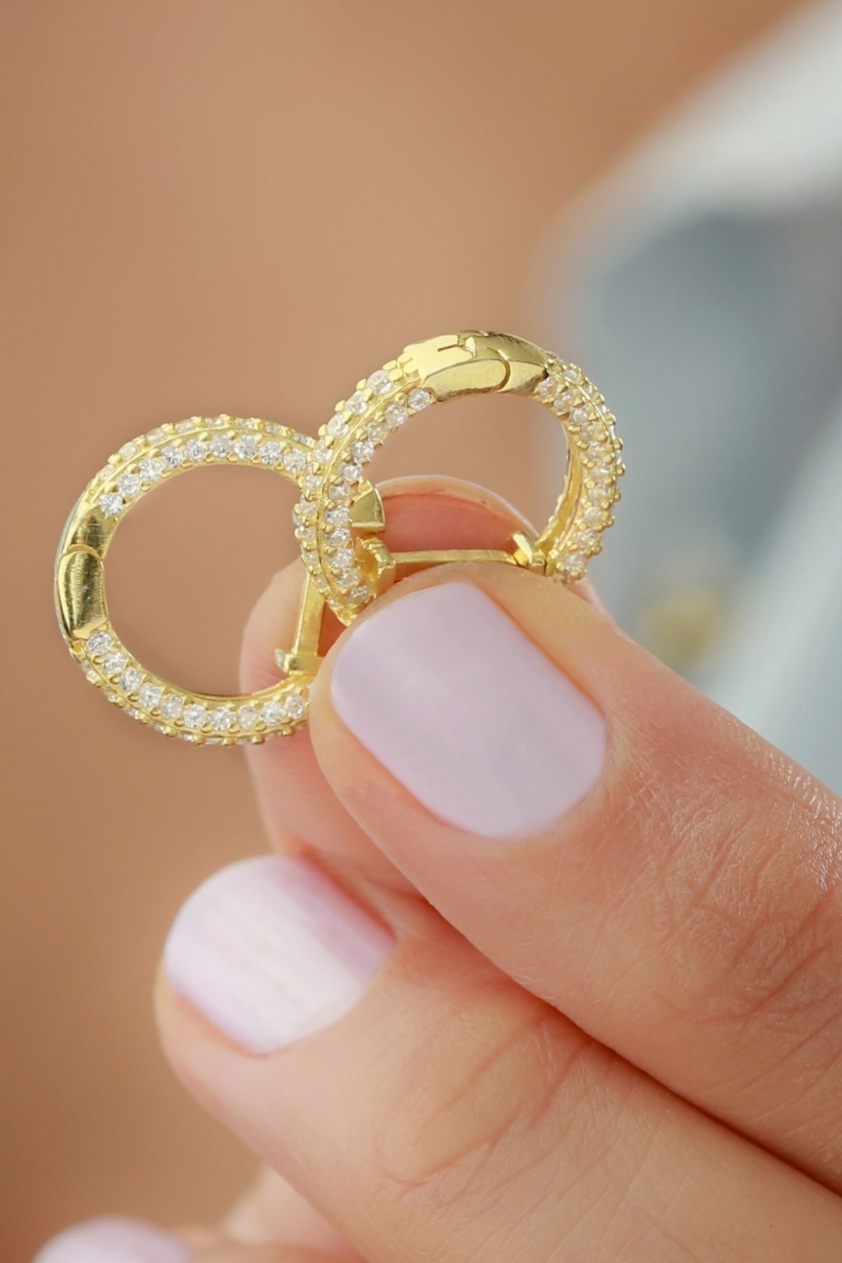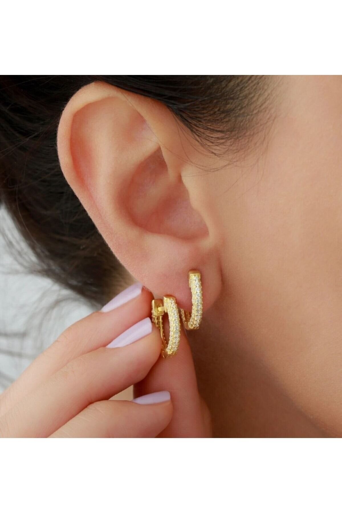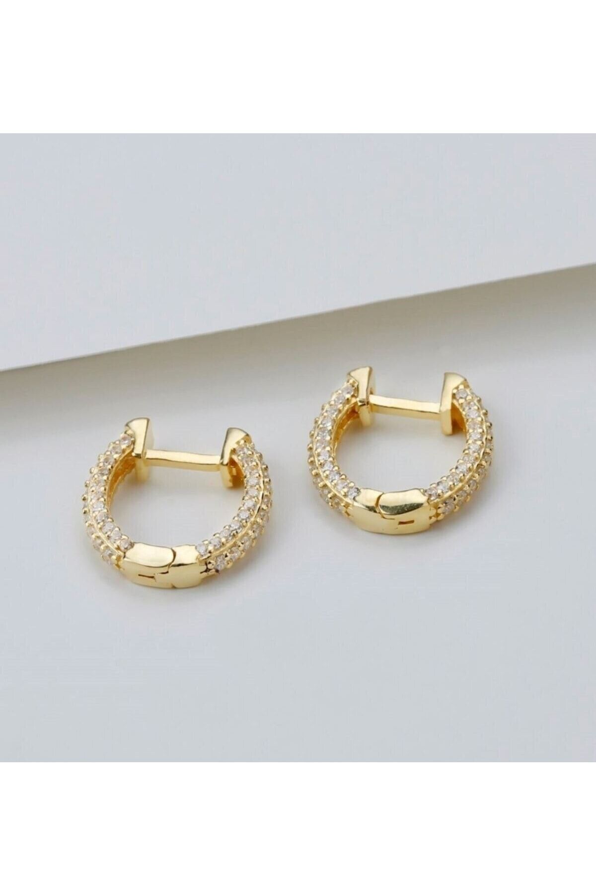 925 Ayar Gümüş Zirkon Taşlı Tamtur Gold Küpe