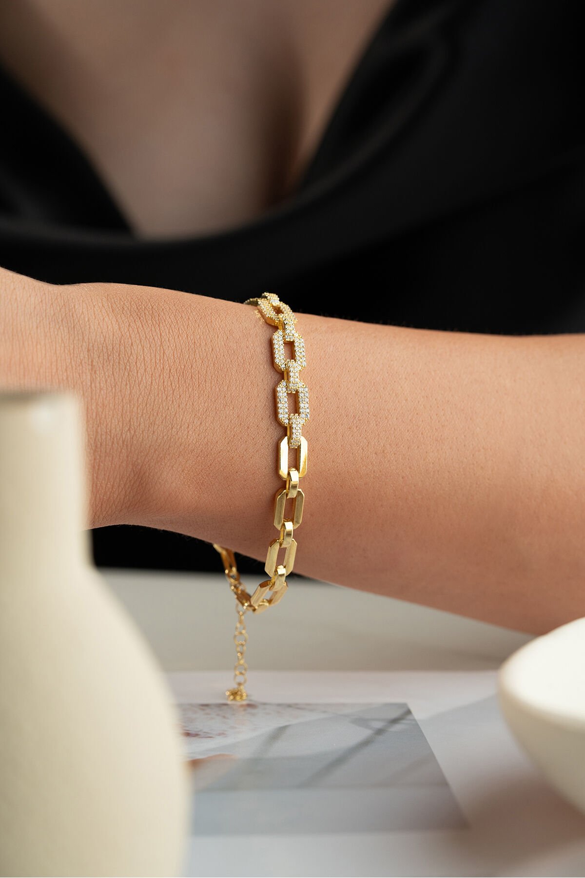 925 Ayar Gümüş bileklik ; Zarif ve ince tasarımı ile her kombine uyum sağlayan bu kolye, günlük kullanım için idealdir.; - Malzeme: 925 ayar gümüş - Boy: 42 cm (idealdir ve rahat bir kullanım sunar) - Özellikler: Hafif ve zarif yapısı ile boynunuza doğal bir ışıltı katar.; 925 Ayar Gümüş Bilekliğimiz Sade ama şık tasarımı ile bileğinize ince bir dokunuş katın.; Günlük ve özel günlerde rahatça kullanabilirsiniz.; - Malzeme: 925 ayar gümüş - Boy: Ayarlanabilir (17 cm - 20 cm arası) - Özellikler: Dayanıklı yapısı ile uzun ömürlü kullanım sağlar, hafif ve rahattır.; Tabii, işte kısa ve anlaşılır bir şekilde 925 ayar gümüş takıların saklama ve kullanma koşulları: 925 Ayar Gümüş Takıların Saklama Koşulları: - Kuru ve serin yerde saklayın: Gümüş takılar nemden uzak tutulmalıdır.; Nem, gümüşün kararmasına neden olabilir.; - Kapalı kutuda muhafaza edin: Takılarınızı hava almayan mücevher kutusunda veya kumaş keselerde saklayarak oksitlenmeyi önleyebilirsiniz.; - Diğer takılarla temas ettirmeyin: Çizilmeleri önlemek için gümüş takılarınızı diğer takılardan ayrı tutun.; 925 Ayar Gümüş Takıların Kullanma Koşulları: - Su ve kimyasallardan uzak tutun: Gümüş takılarınızı parfüm, krem, saç spreyi gibi kimyasallarla temas ettirmeyin ve suya maruz bırakmayın.; - Düzenli temizleyin: Yumuşak bir bezle düzenli olarak temizleyerek parlaklığını koruyun.; - Uyurken ve spor yaparken çıkartın: Takılarınızı zarar görmemesi için uyurken, spor yaparken veya yoğun fiziksel aktivitelerde çıkarın.; Bu basit kurallar, gümüş takılarınızın uzun ömürlü ve parlak kalmasını sağlayacaktır.;