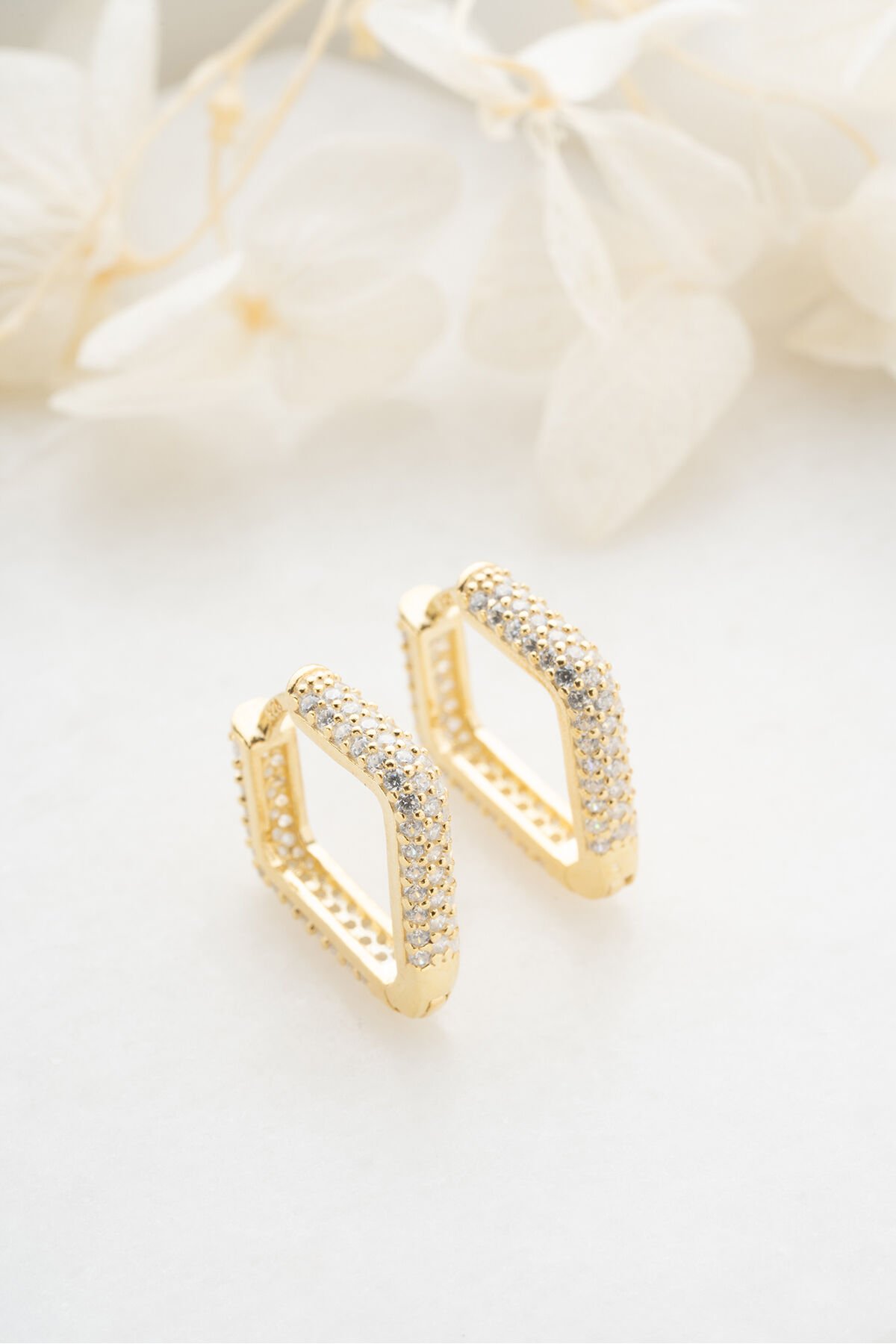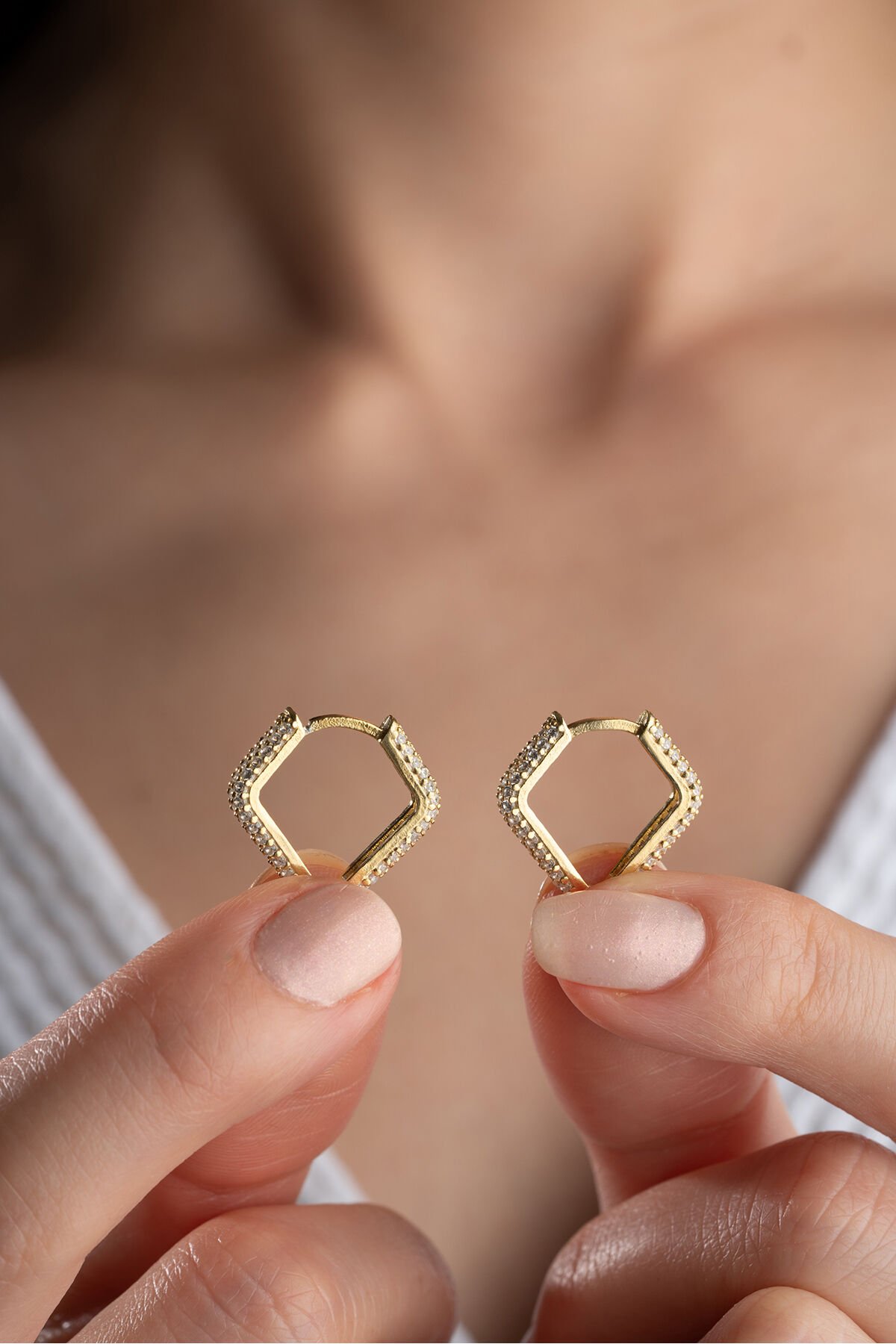 925 Ayar Gümüş Zirkon Taşlı Trend Halka Küpe