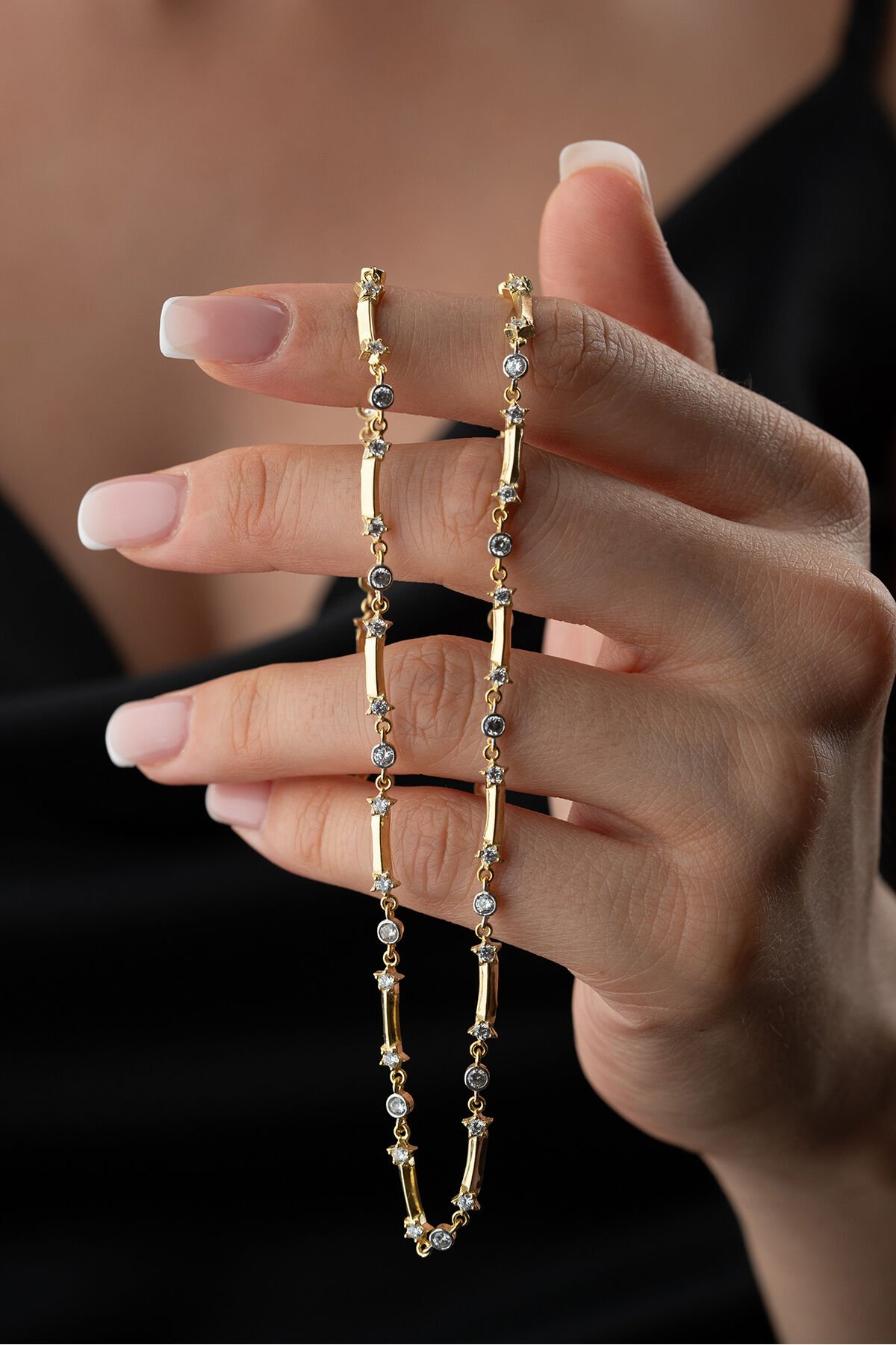 925 Ayar Gümüş bileklik ; Zarif ve ince tasarımı ile her kombine uyum sağlayan bu kolye, günlük kullanım için idealdir.; - Malzeme: 925 ayar gümüş - Boy: 42 cm (idealdir ve rahat bir kullanım sunar) - Özellikler: Hafif ve zarif yapısı ile boynunuza doğal bir ışıltı katar.; 925 Ayar Gümüş Bilekliğimiz Sade ama şık tasarımı ile bileğinize ince bir dokunuş katın.; Günlük ve özel günlerde rahatça kullanabilirsiniz.; - Malzeme: 925 ayar gümüş - Boy: Ayarlanabilir (17 cm - 20 cm arası) - Özellikler: Dayanıklı yapısı ile uzun ömürlü kullanım sağlar, hafif ve rahattır.; Tabii, işte kısa ve anlaşılır bir şekilde 925 ayar gümüş takıların saklama ve kullanma koşulları: 925 Ayar Gümüş Takıların Saklama Koşulları: - Kuru ve serin yerde saklayın: Gümüş takılar nemden uzak tutulmalıdır.; Nem, gümüşün kararmasına neden olabilir.; - Kapalı kutuda muhafaza edin: Takılarınızı hava almayan mücevher kutusunda veya kumaş keselerde saklayarak oksitlenmeyi önleyebilirsiniz.; - Diğer takılarla temas ettirmeyin: Çizilmeleri önlemek için gümüş takılarınızı diğer takılardan ayrı tutun.; 925 Ayar Gümüş Takıların Kullanma Koşulları: - Su ve kimyasallardan uzak tutun: Gümüş takılarınızı parfüm, krem, saç spreyi gibi kimyasallarla temas ettirmeyin ve suya maruz bırakmayın.; - Düzenli temizleyin: Yumuşak bir bezle düzenli olarak temizleyerek parlaklığını koruyun.; - Uyurken ve spor yaparken çıkartın: Takılarınızı zarar görmemesi için uyurken, spor yaparken veya yoğun fiziksel aktivitelerde çıkarın.; Bu basit kurallar, gümüş takılarınızın uzun ömürlü ve parlak kalmasını sağlayacaktır.;;