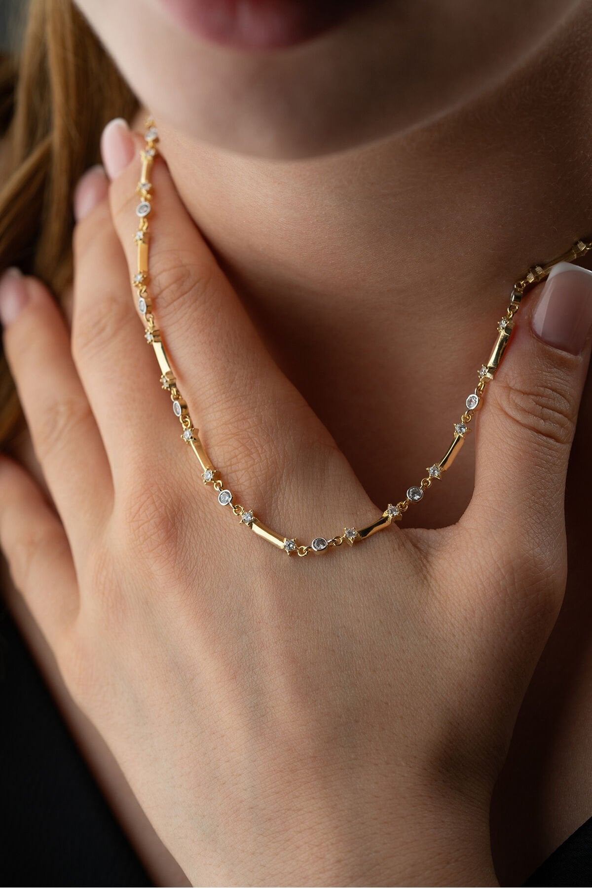 925 Ayar Gümüş Zirkon Taşlı Trend Kolye