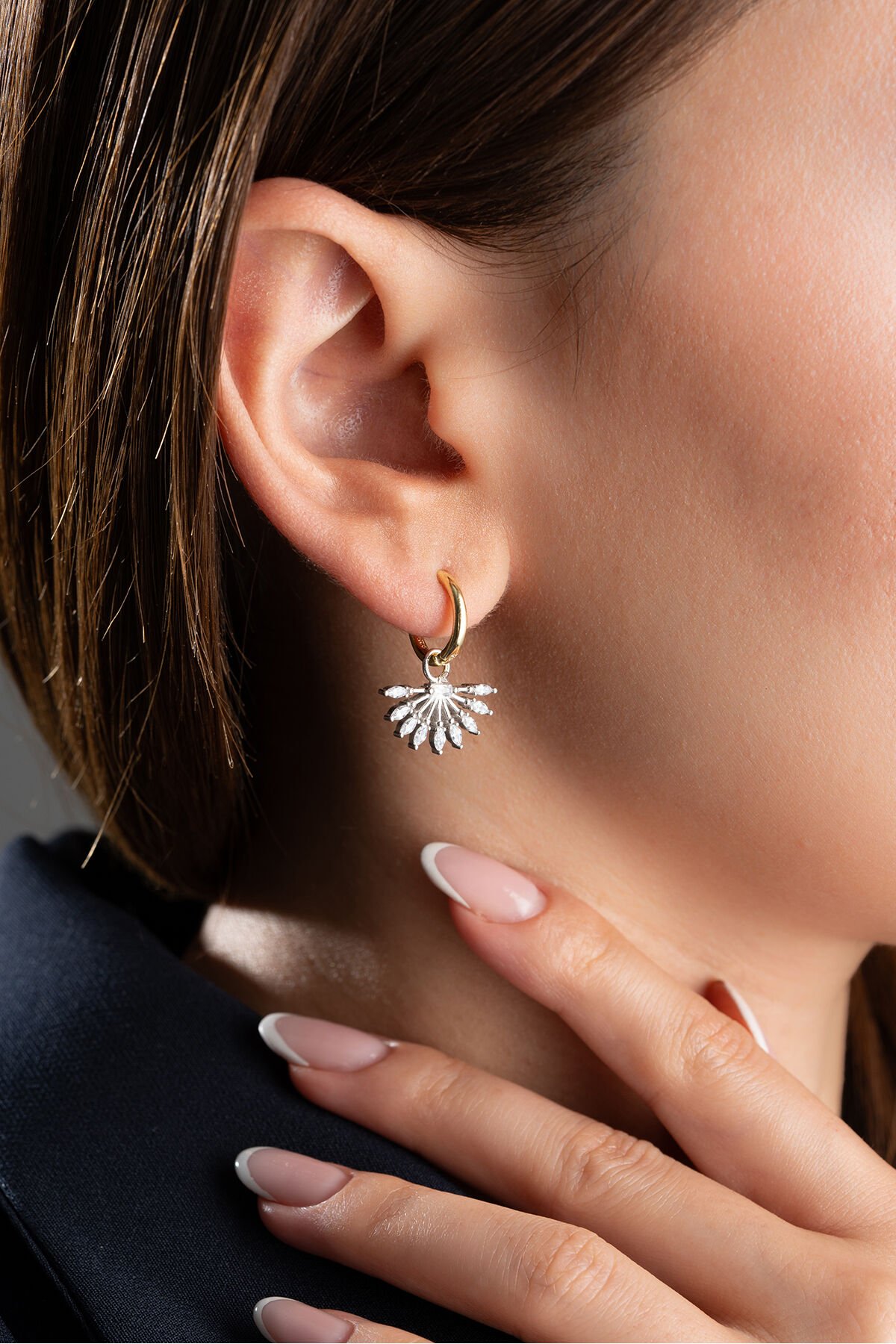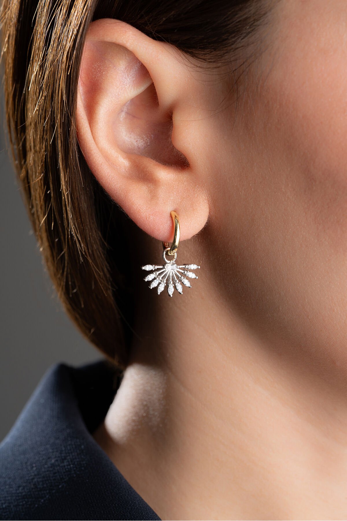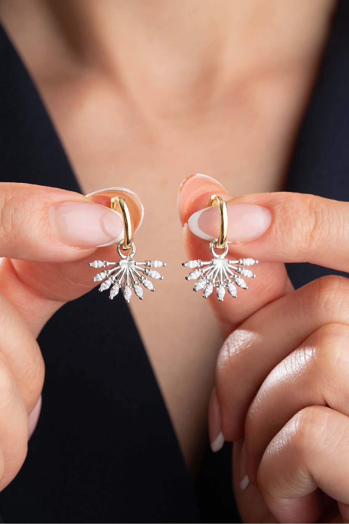 925 ayar gümüş malzeme ile üretilmiş, uzun ömürlü ve kaliteli bir aksesuar deneyimi sunar; Göz alıcı zirkon taş detayları ile ışıltınızı her ortamda ön plana çıkarır; Zarif tasarımıyla dikkat çeken bu küpeler, günlük kullanımda bile şıklığınızı tamamlar;