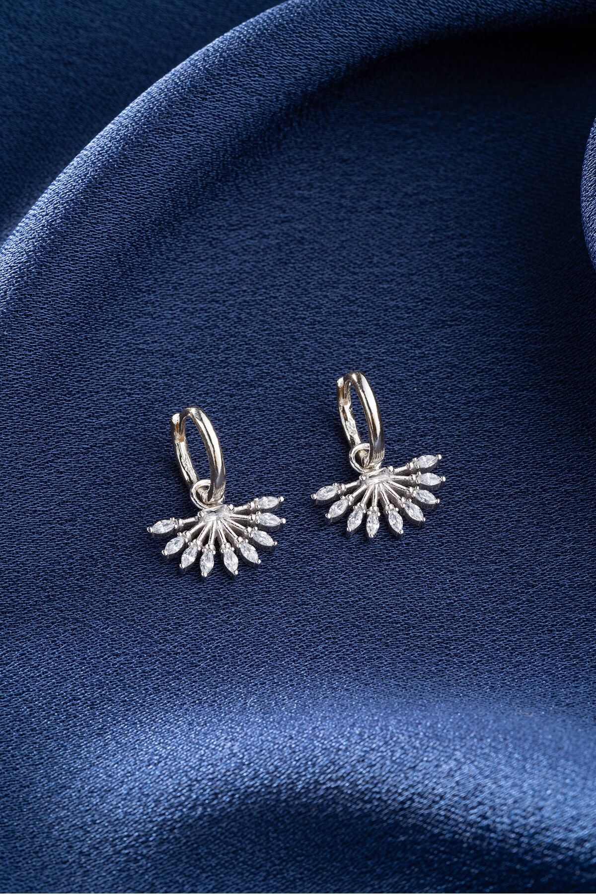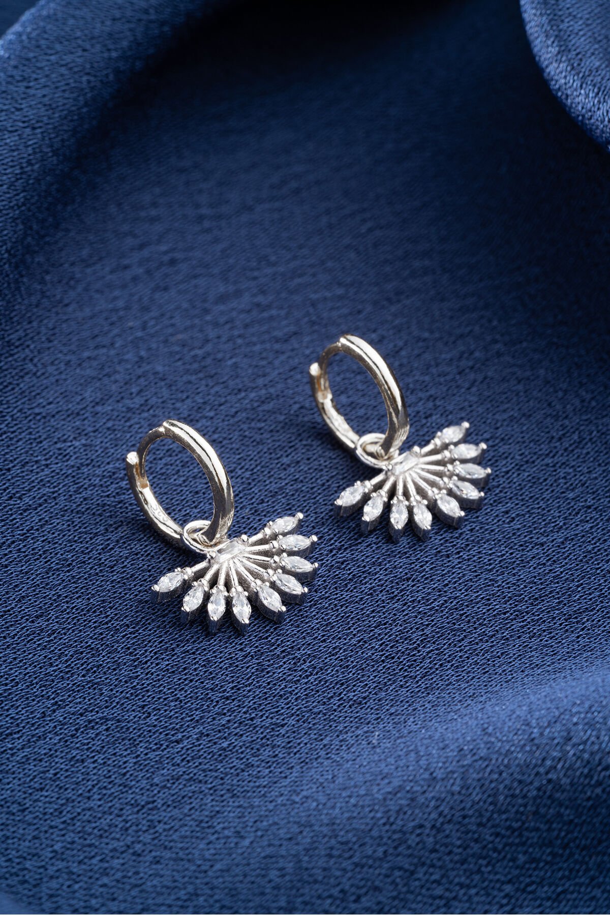 925 Ayar Gümüş Zirkon Taşlı Yelpaze Küpe