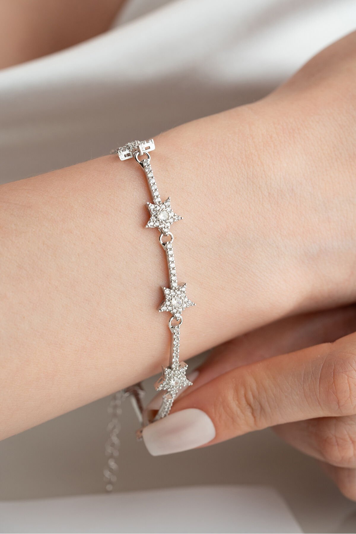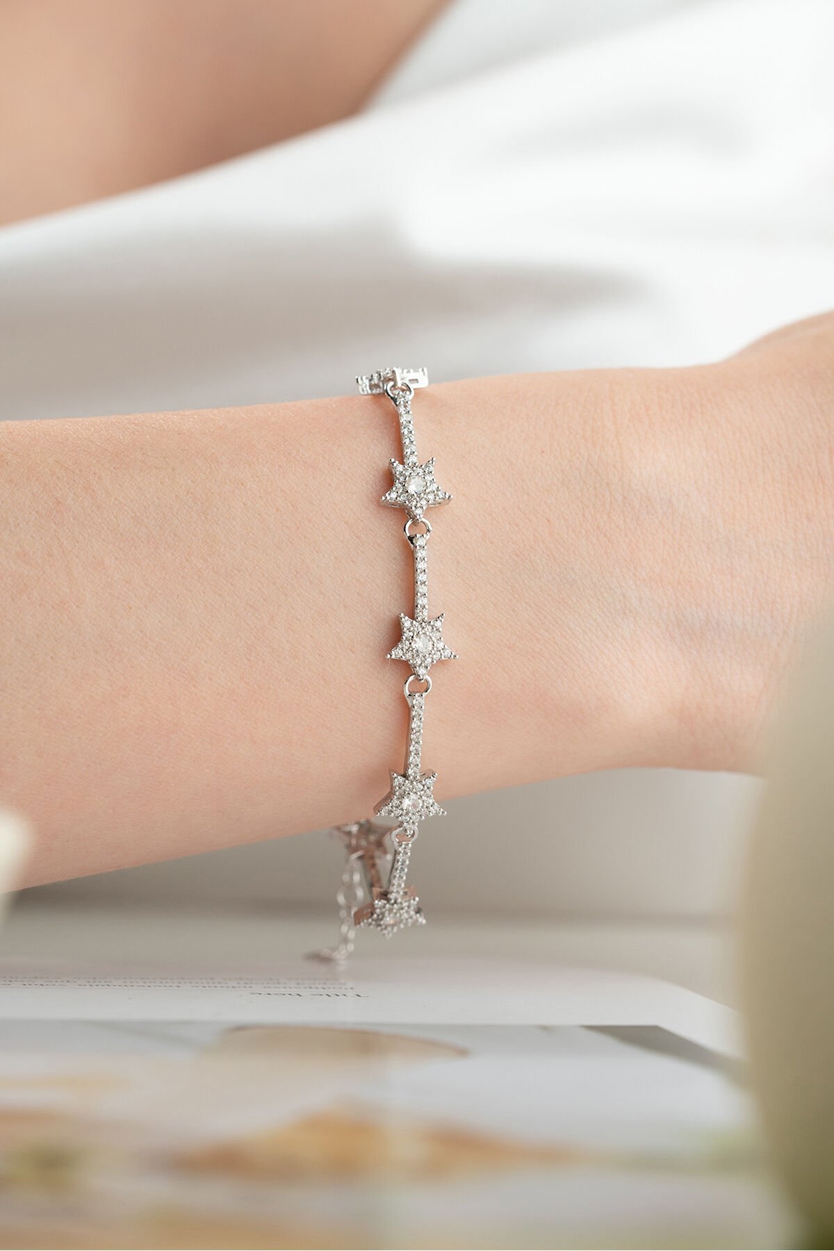 925 Ayar Gümüş Zirkon Taşlı Yıldız Bileklik