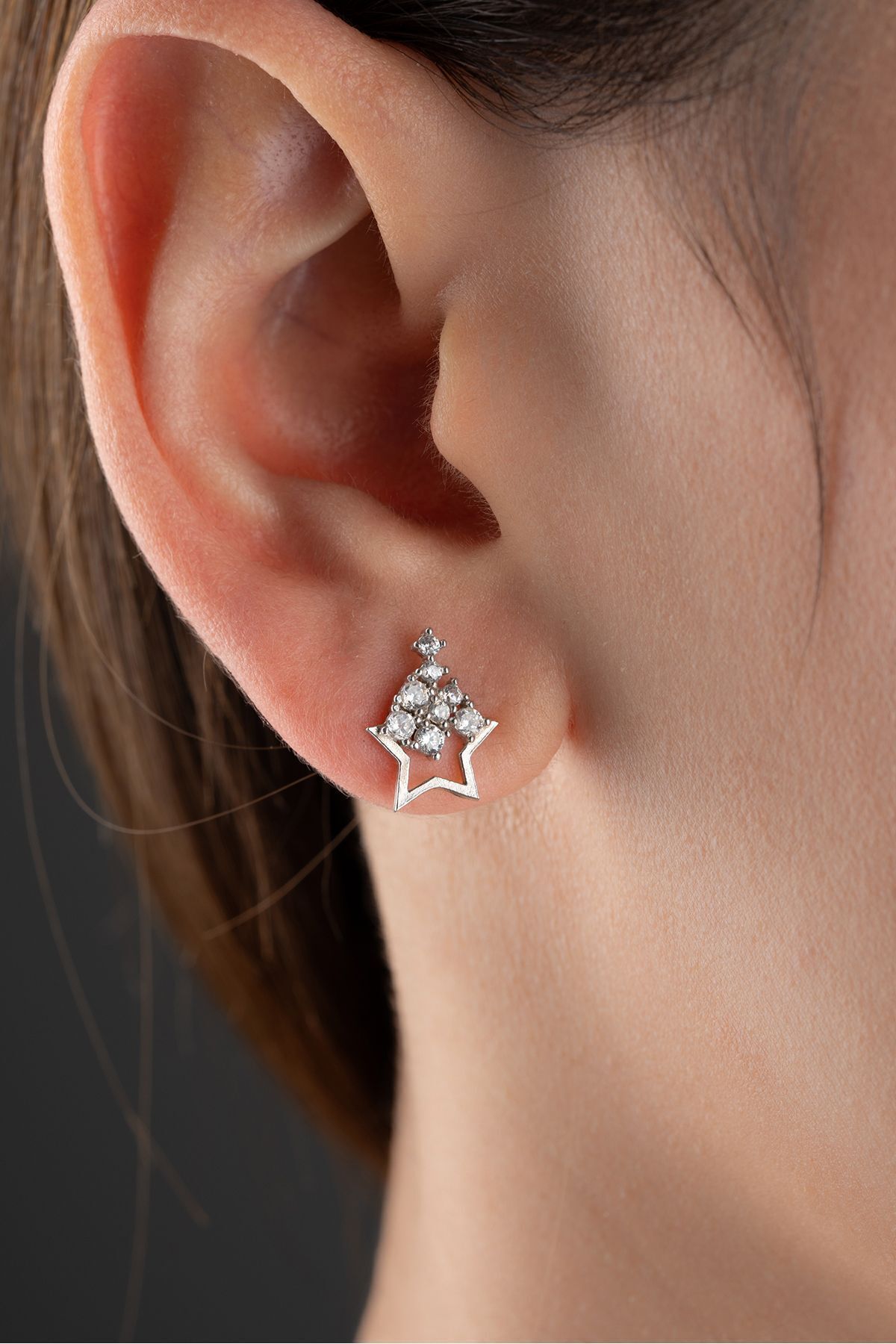 925 Ayar Gümüş Zirkon Taşlı Yıldız Küpe