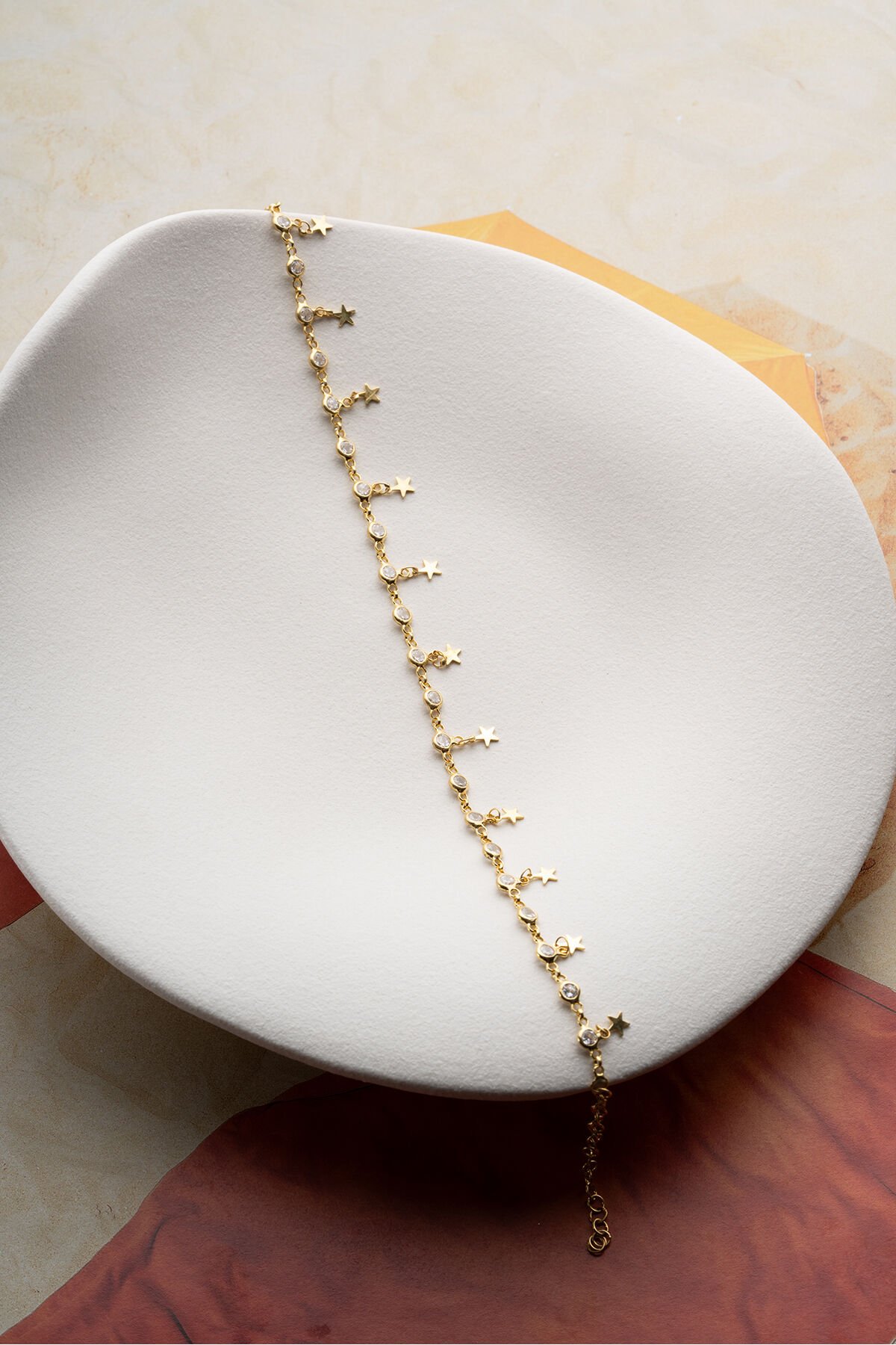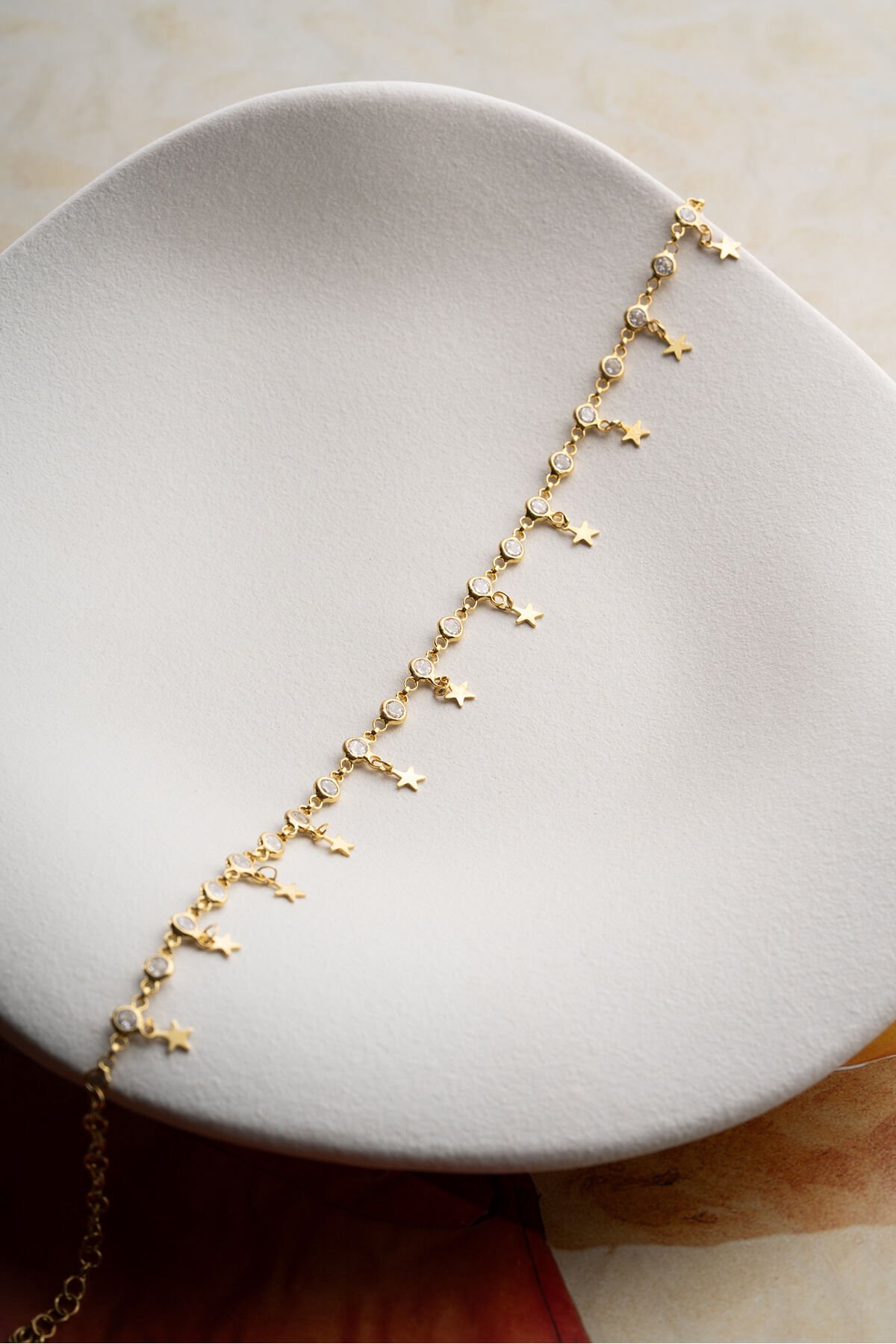 925 Ayar Gümüş Zirkon Taşlı Yıldızlı Halhal