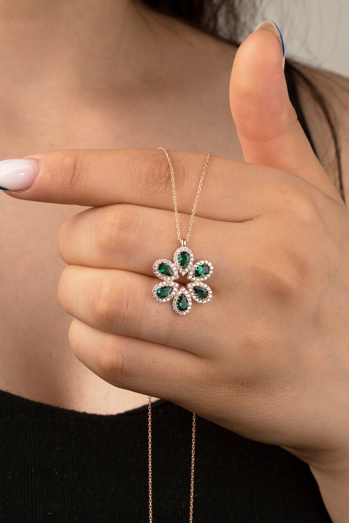 925 Ayar Gümüş Zirkon Taşlı Yonca Kolye