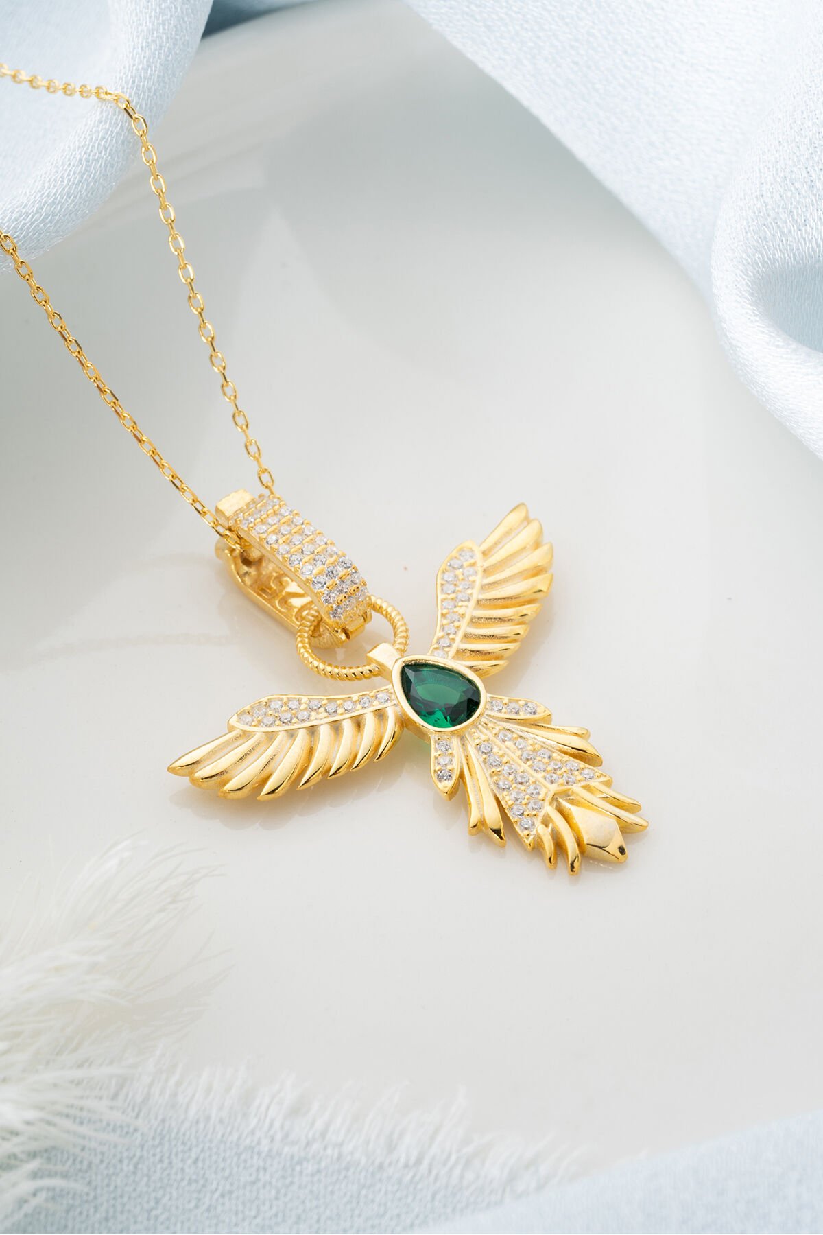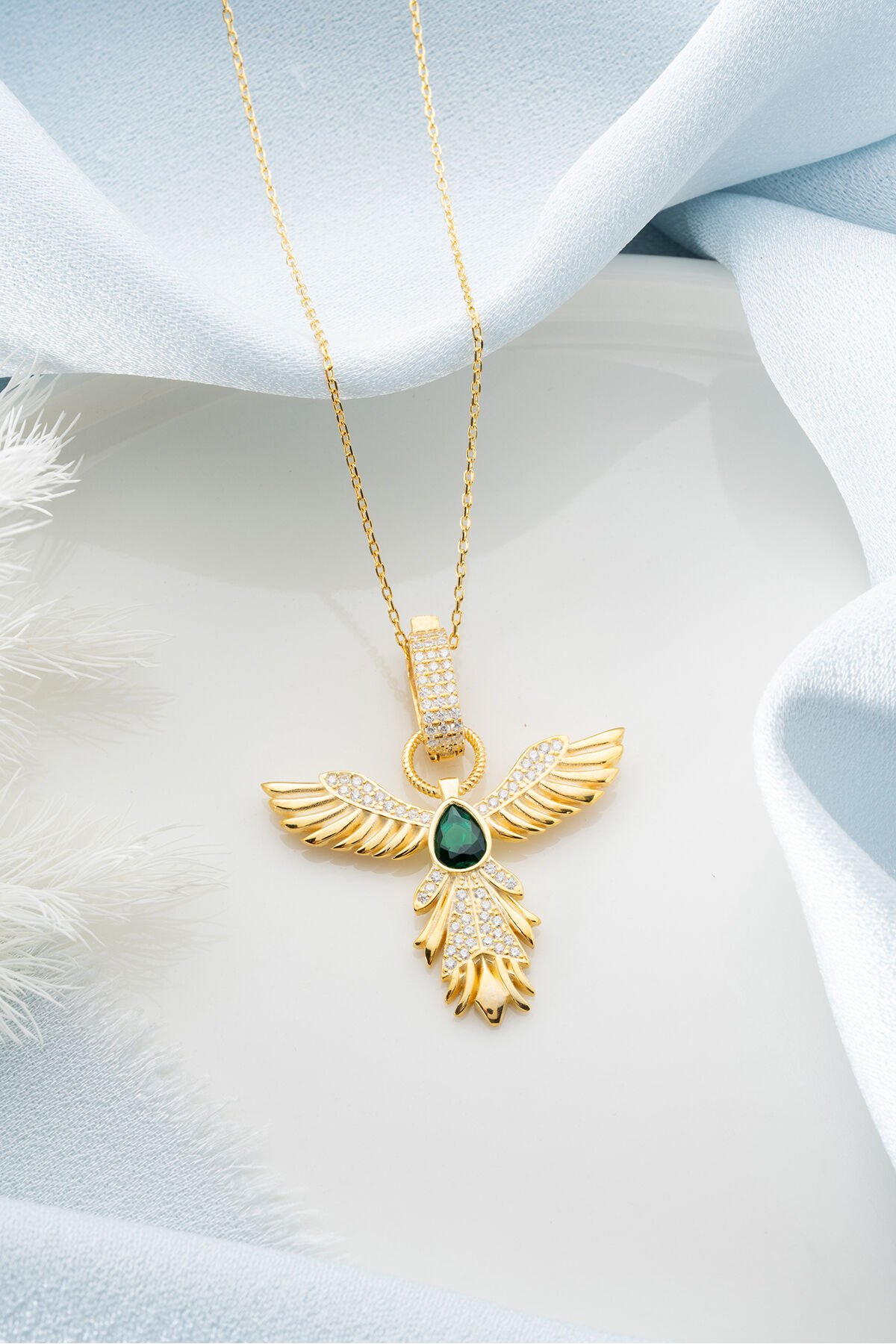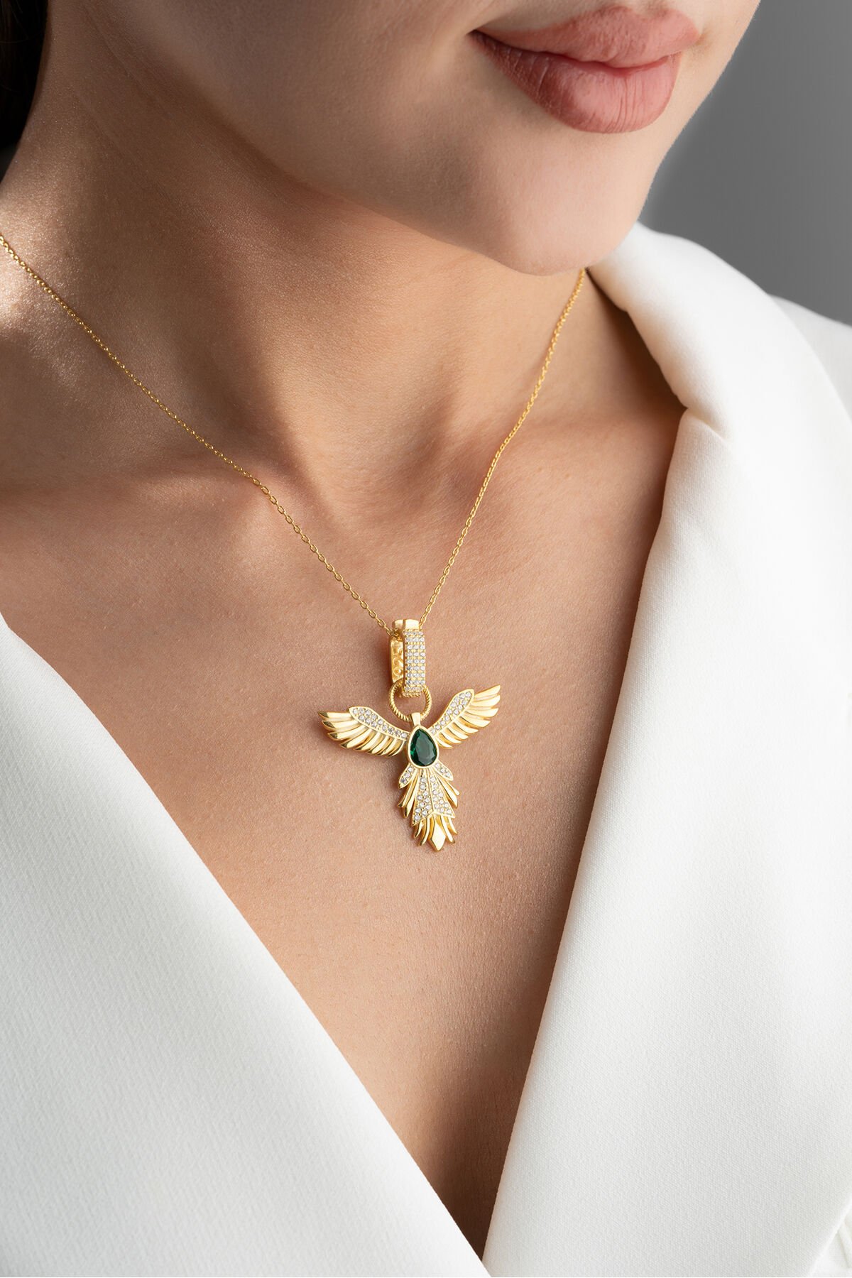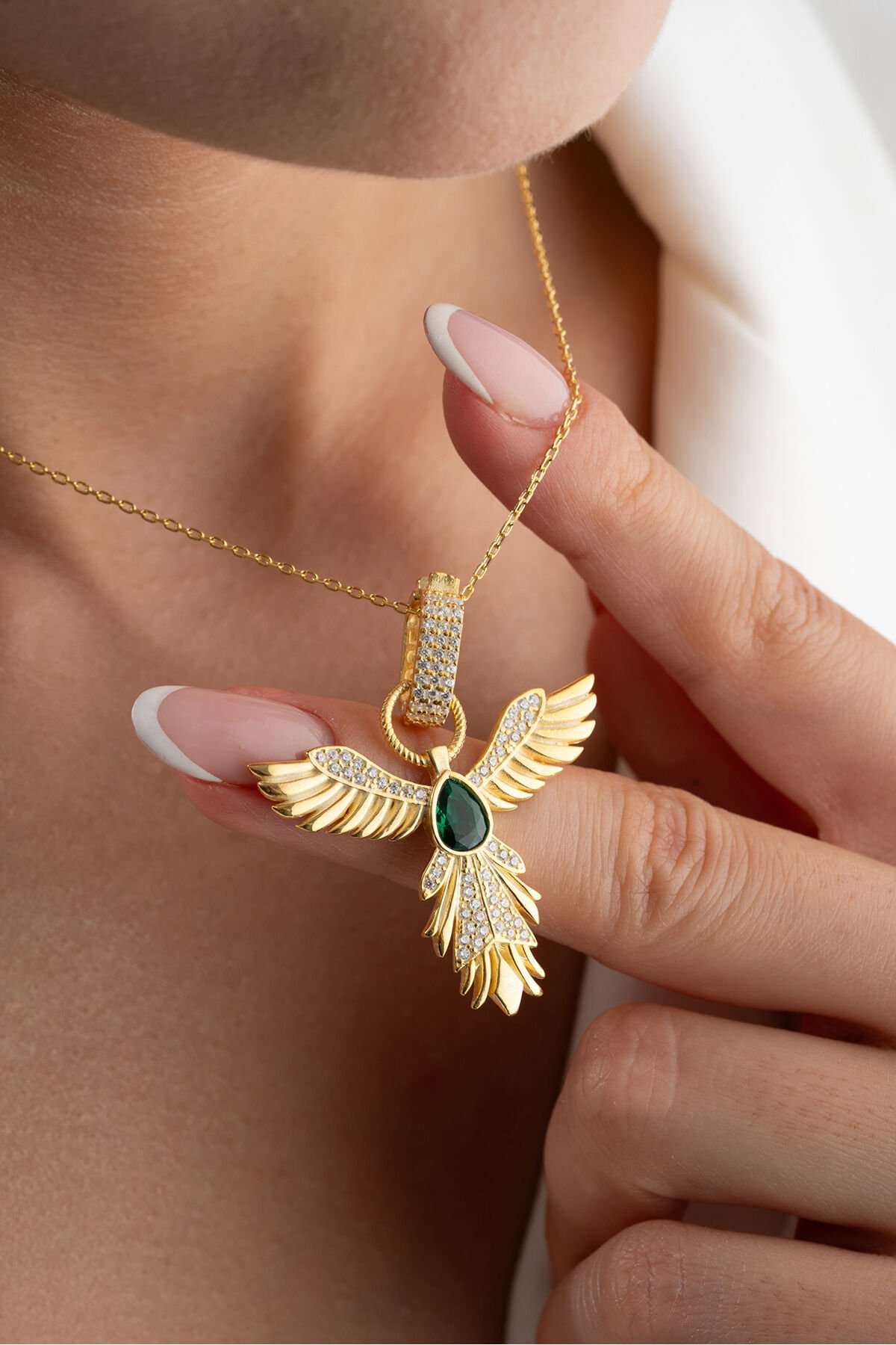 925 Ayar Gümüş Zirkon Taşlı Zümrüdüanka Kolye