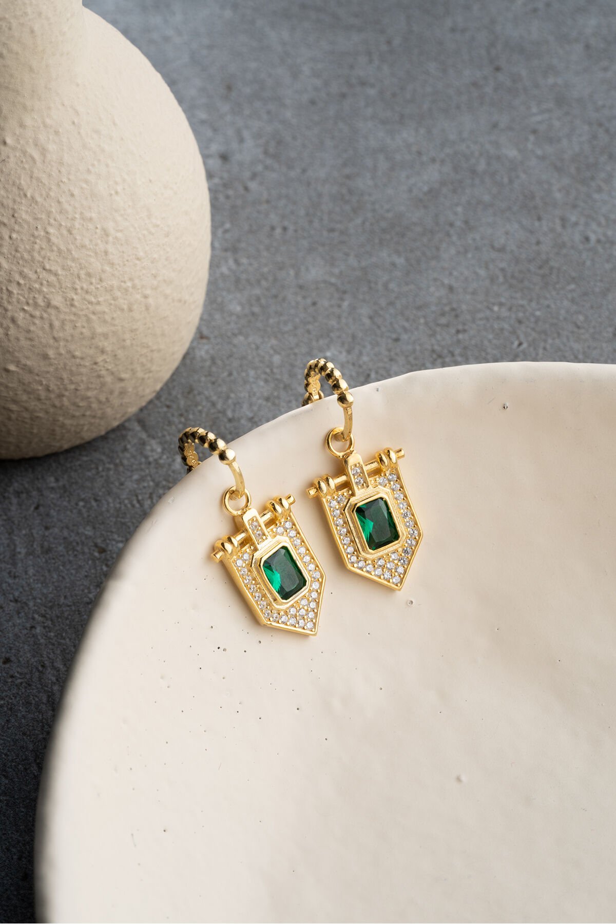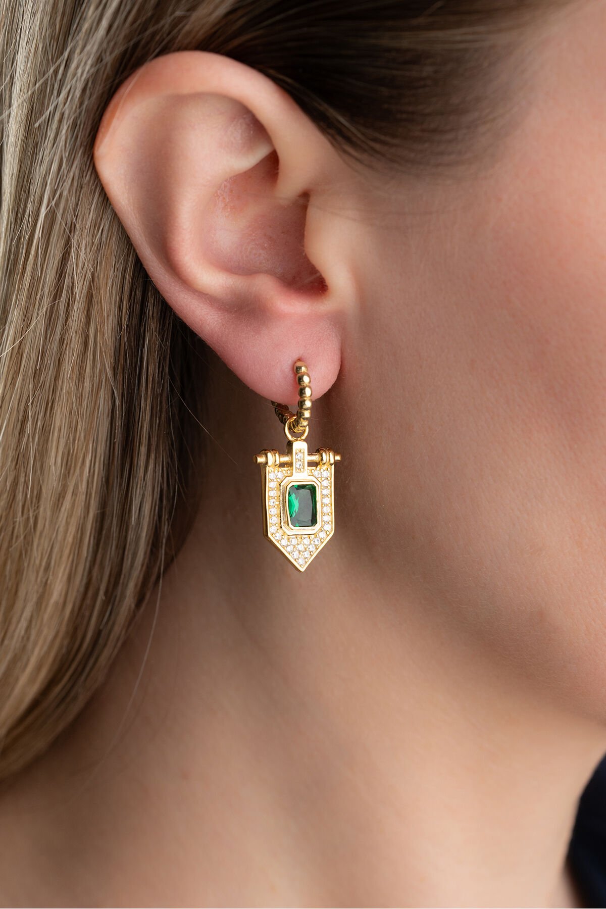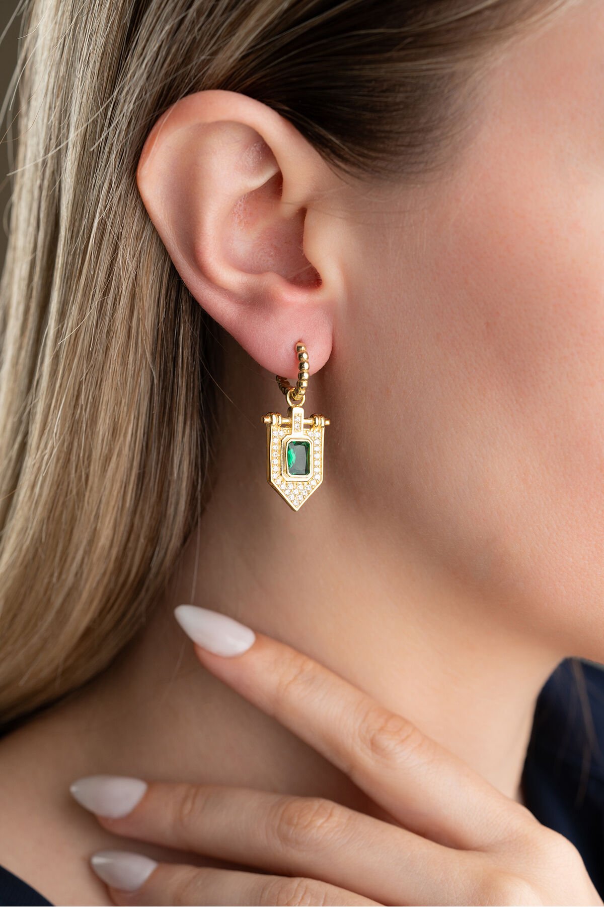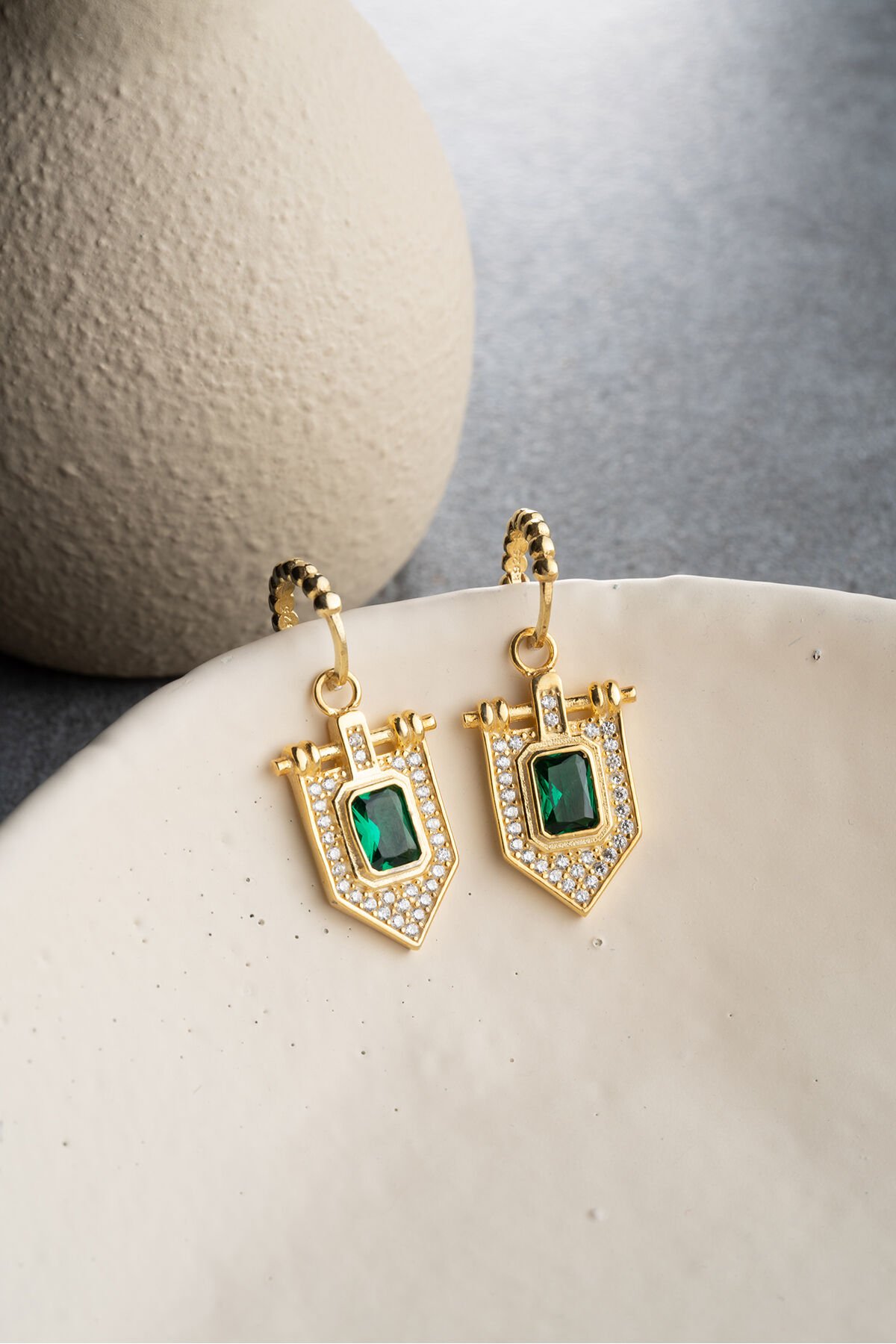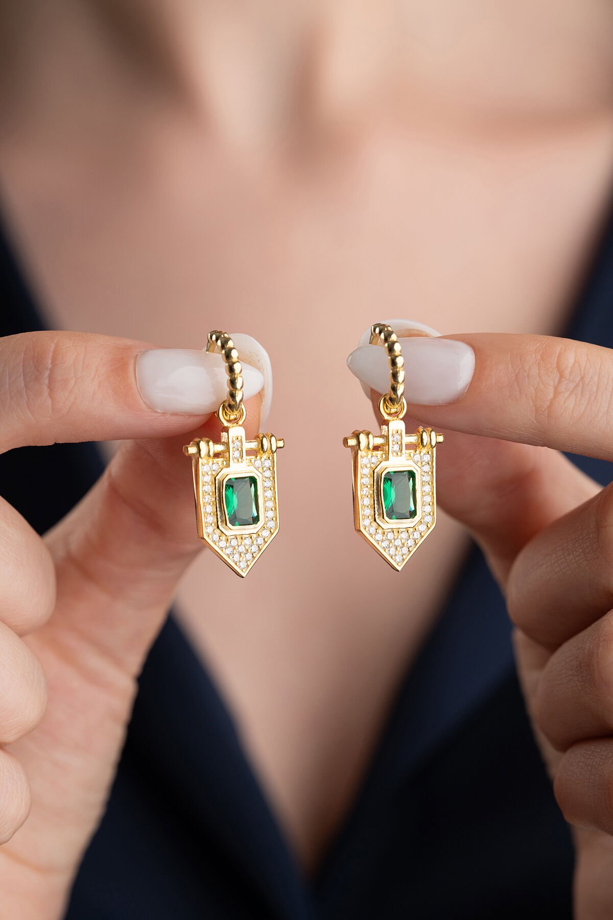 925 Ayar Gümüş Zümrüt Taşlı Trend Küpe