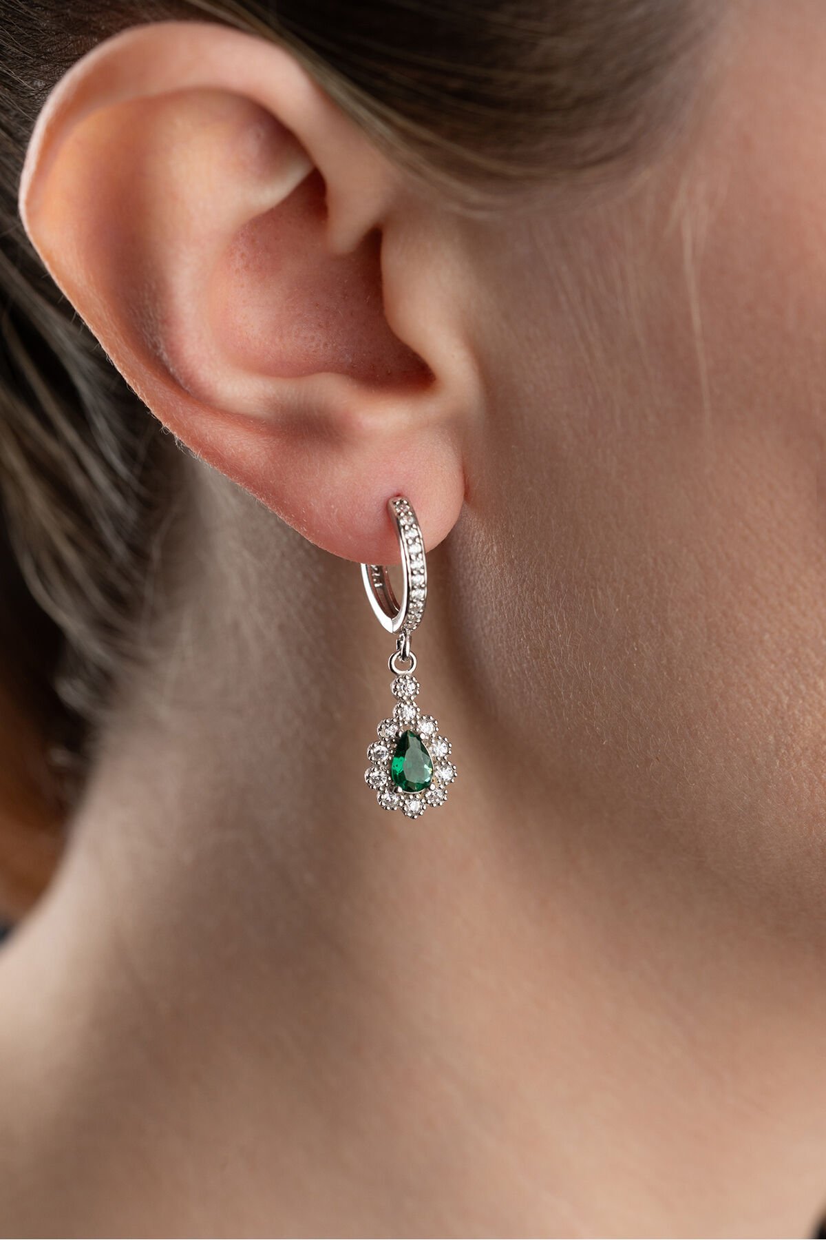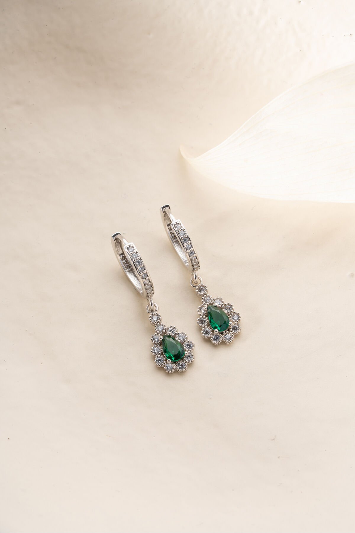 925 Ayar Gümüş Zümrüt Yeşil Damla Küpe