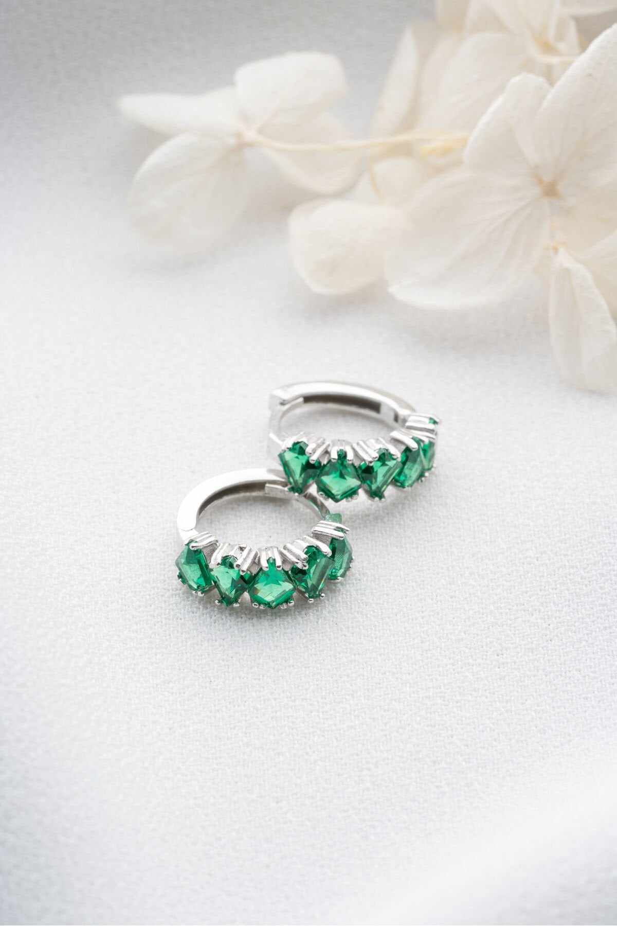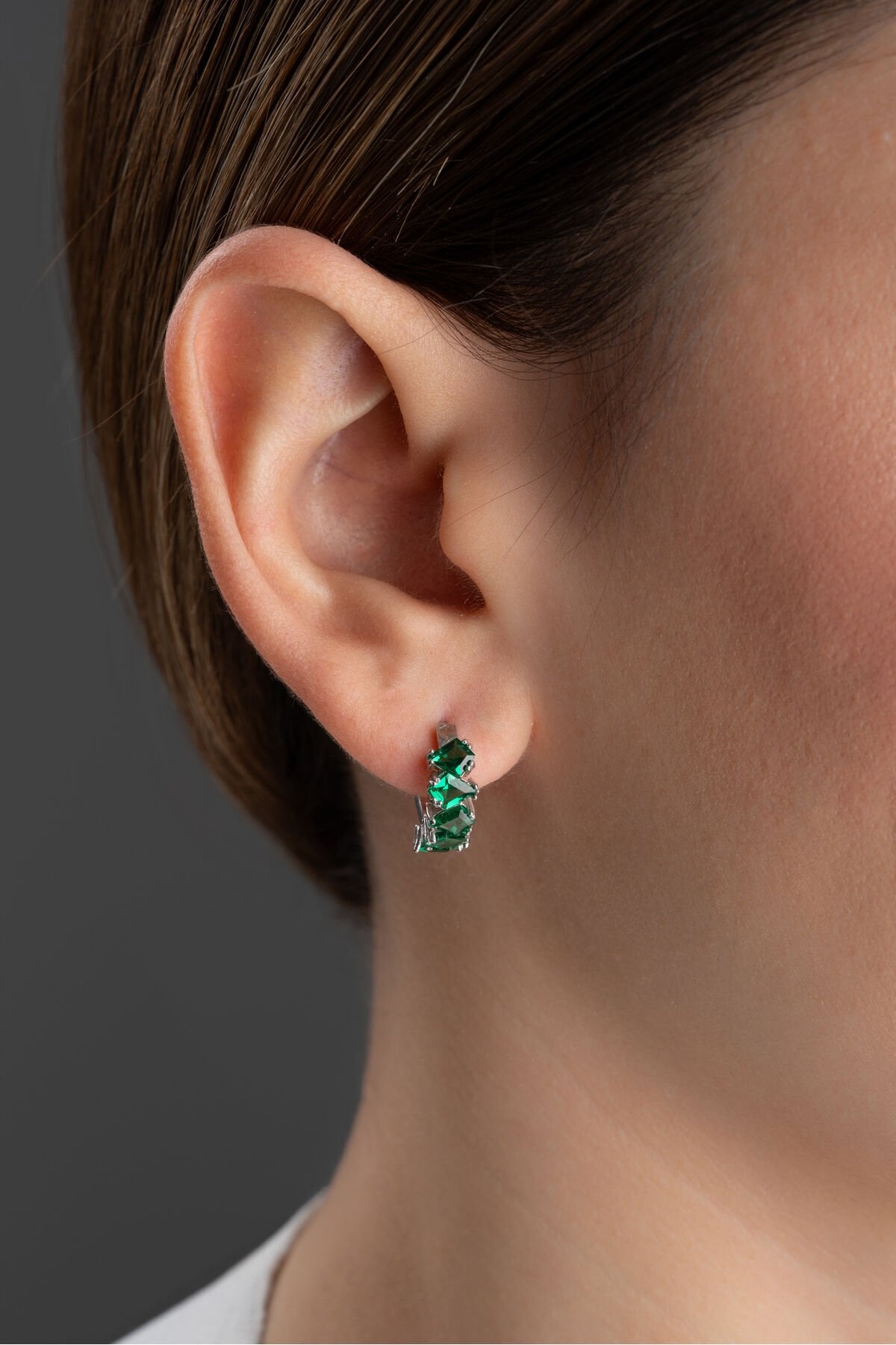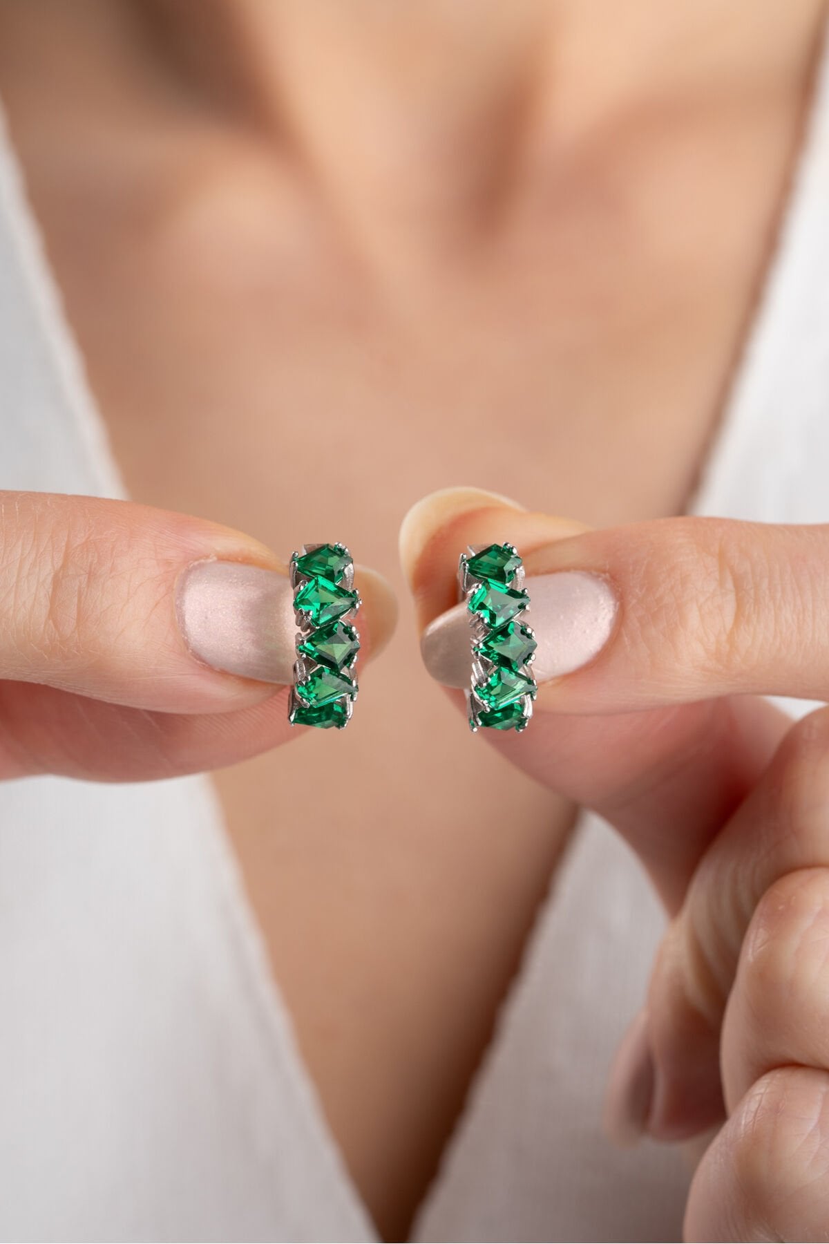 925 Ayar Gümüş Zümrüt Yeşili Baget Taşlı Halka Küpe
