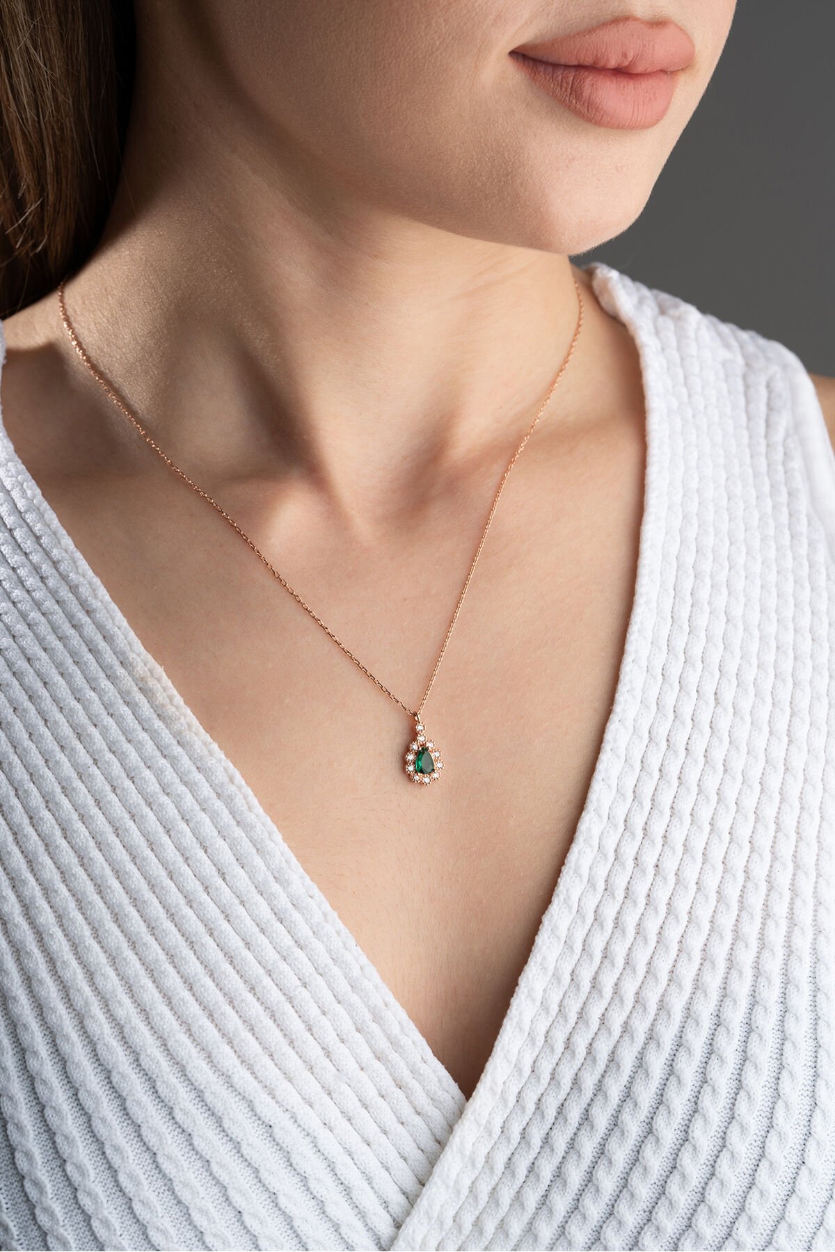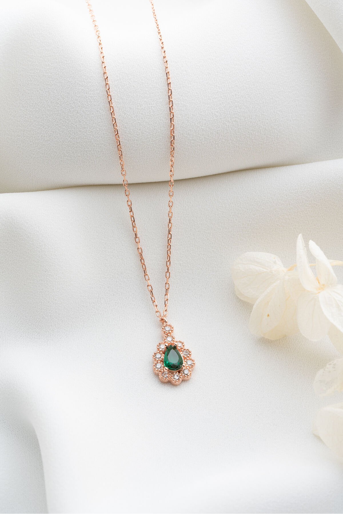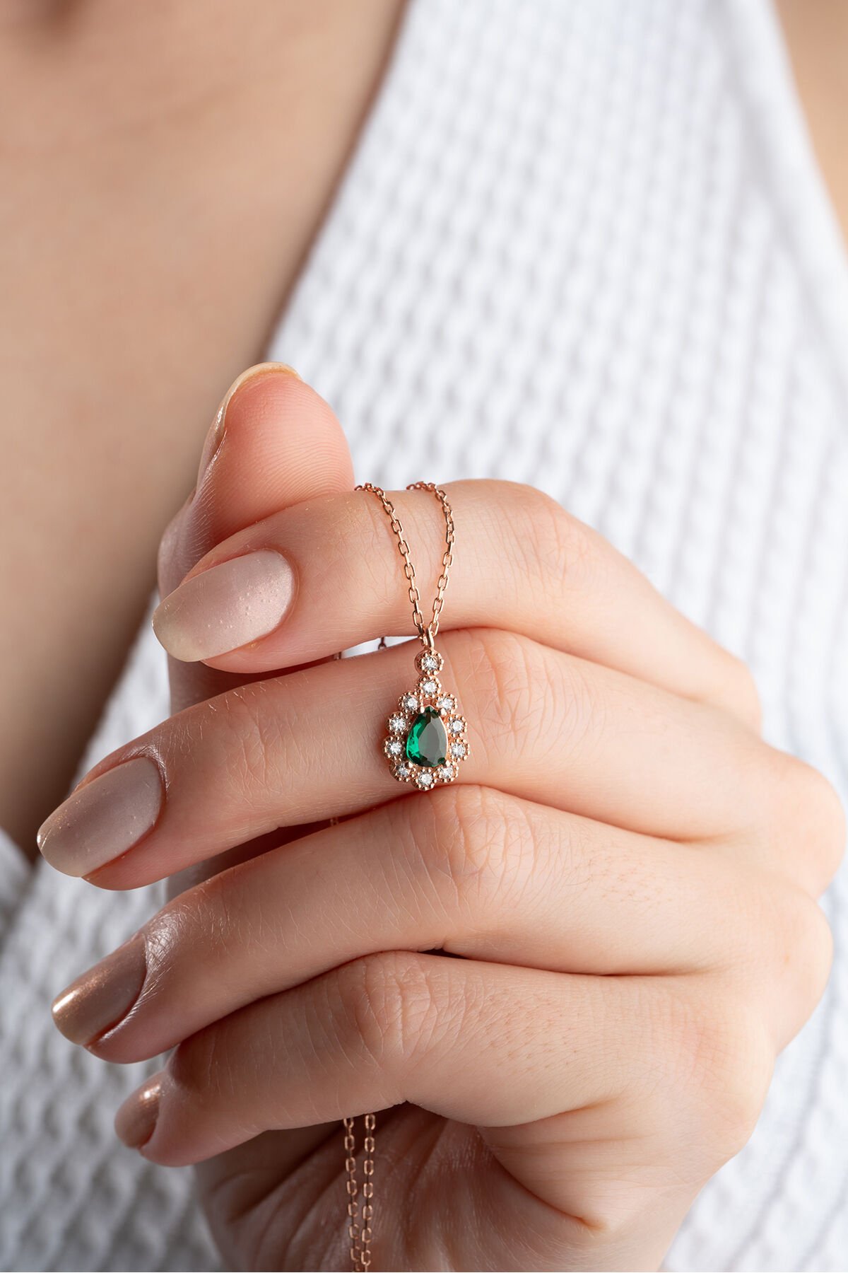 925 Ayar Gümüş Zümrüt Yeşili Damla Kolye